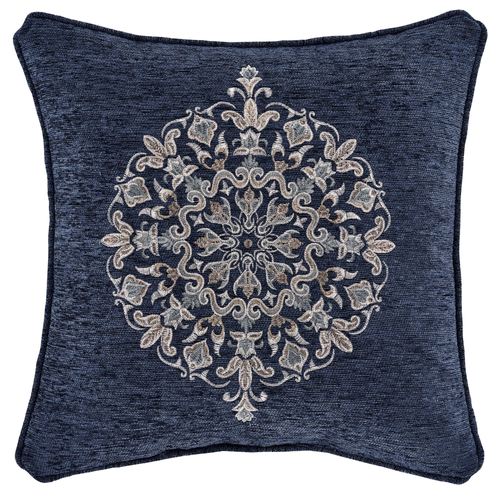 Botticelli Blue Embroidered Pillow Navy 18" Square