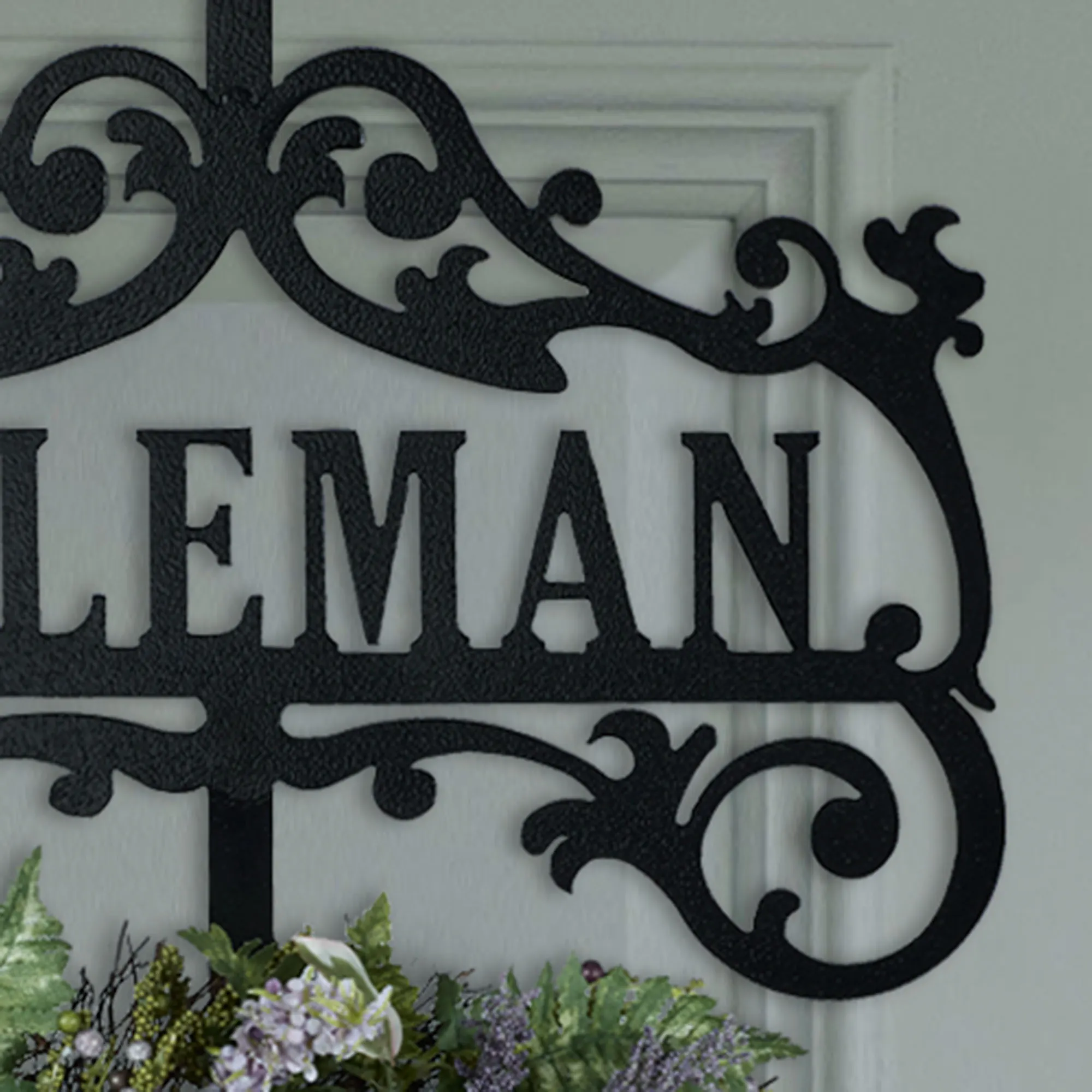 • Metal personalized wreath hanger