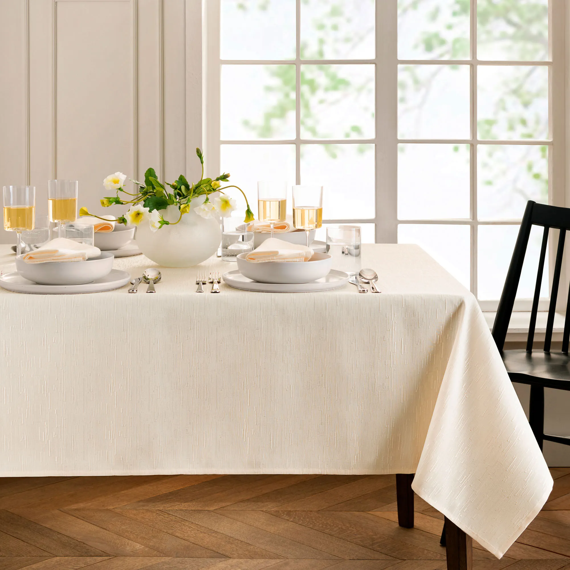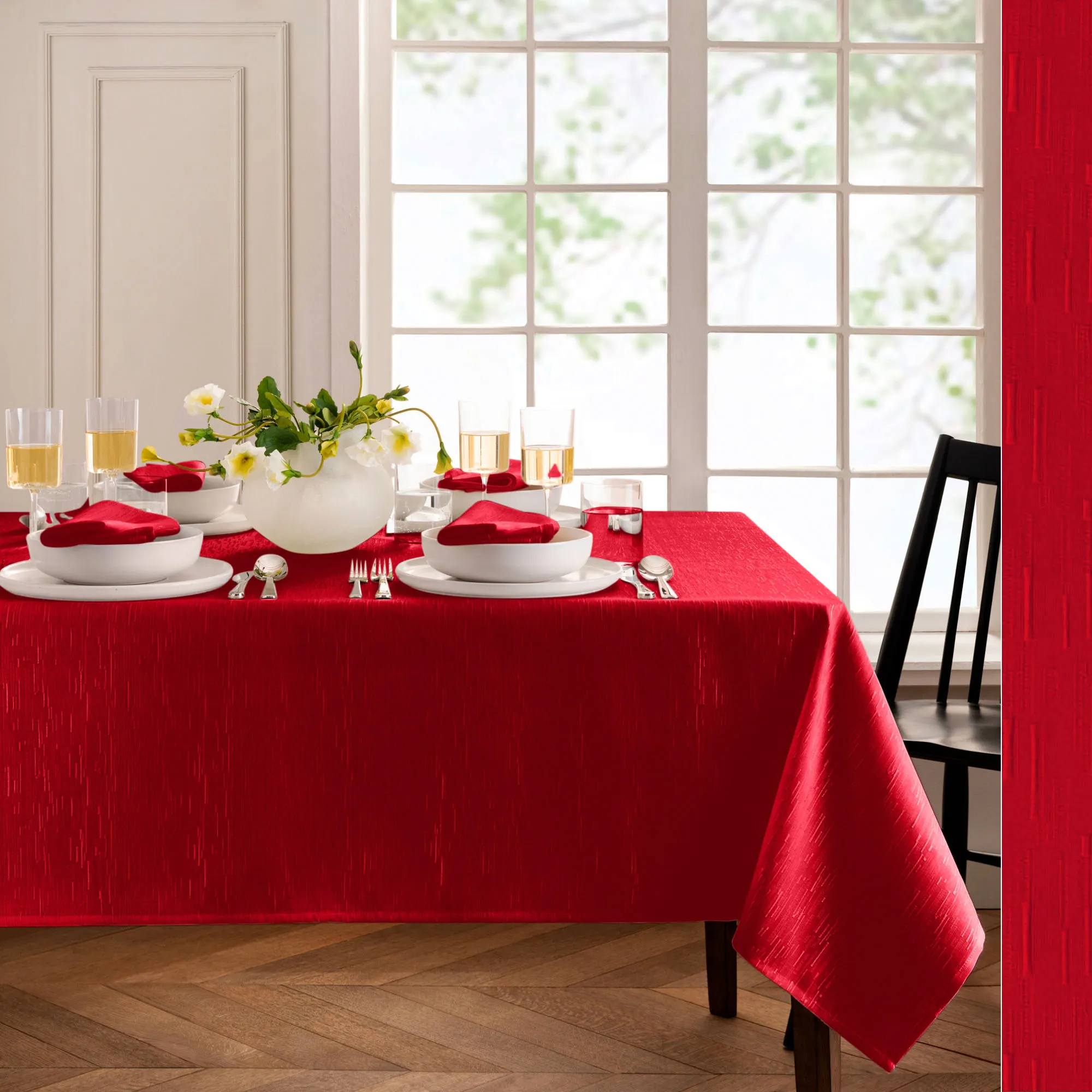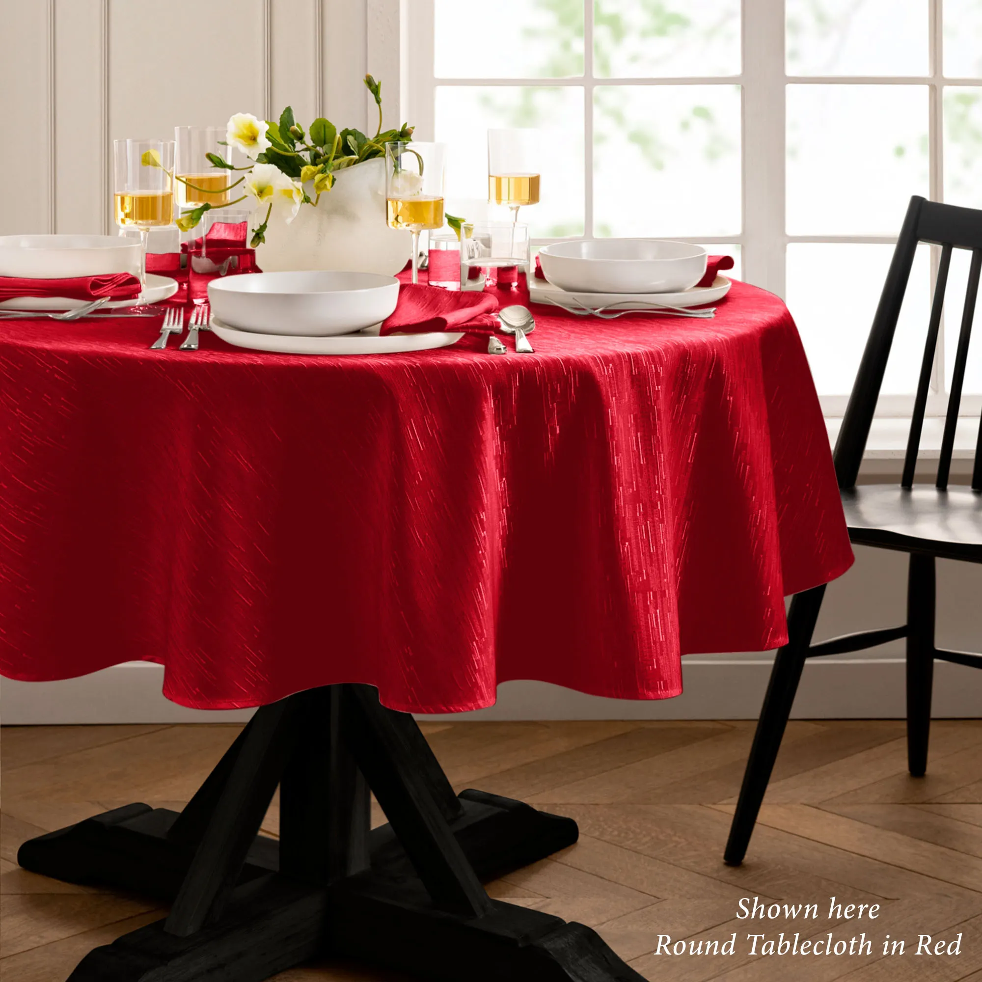 • Solid color slubbed table linens