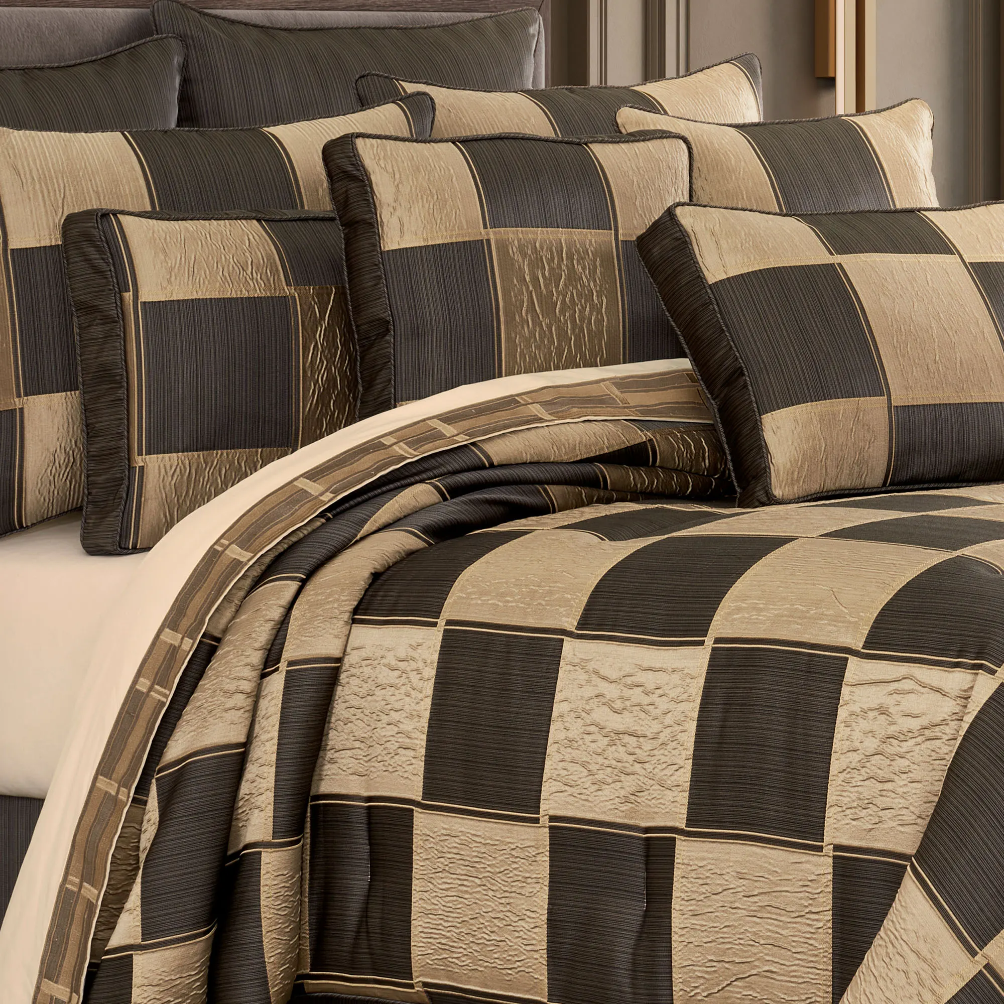 Brando Bronze Checkered Comforter Set Luxury Bedding by J Queen New York