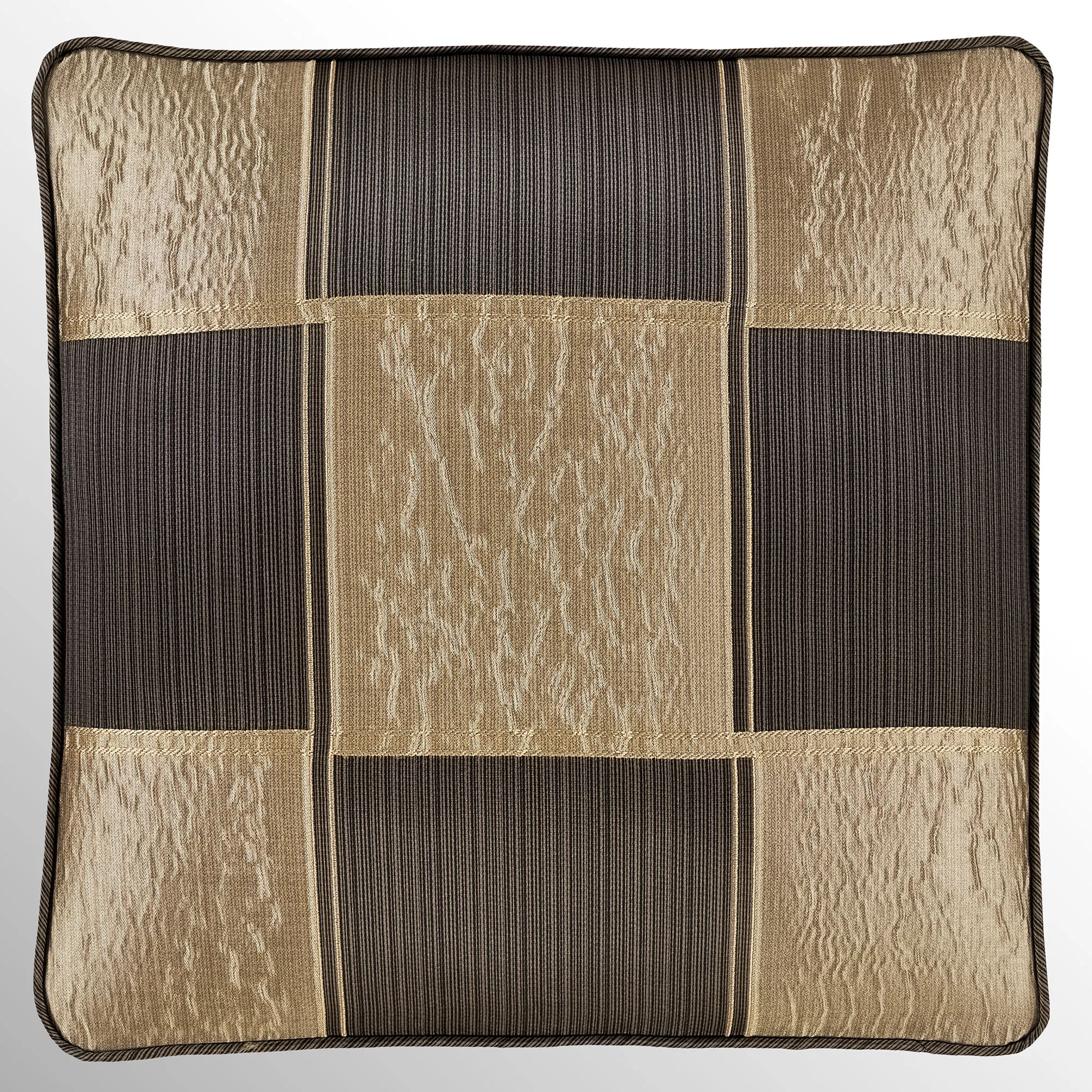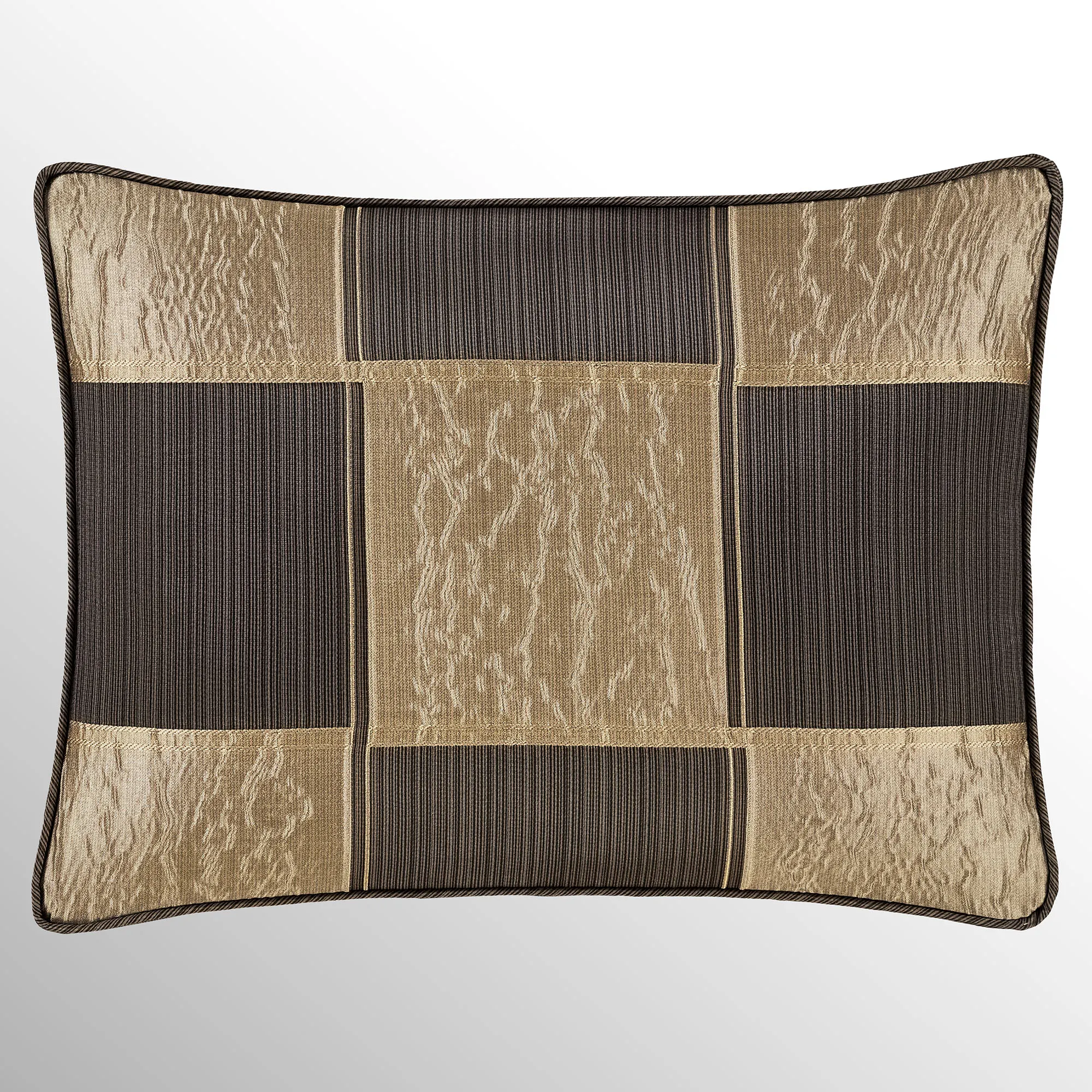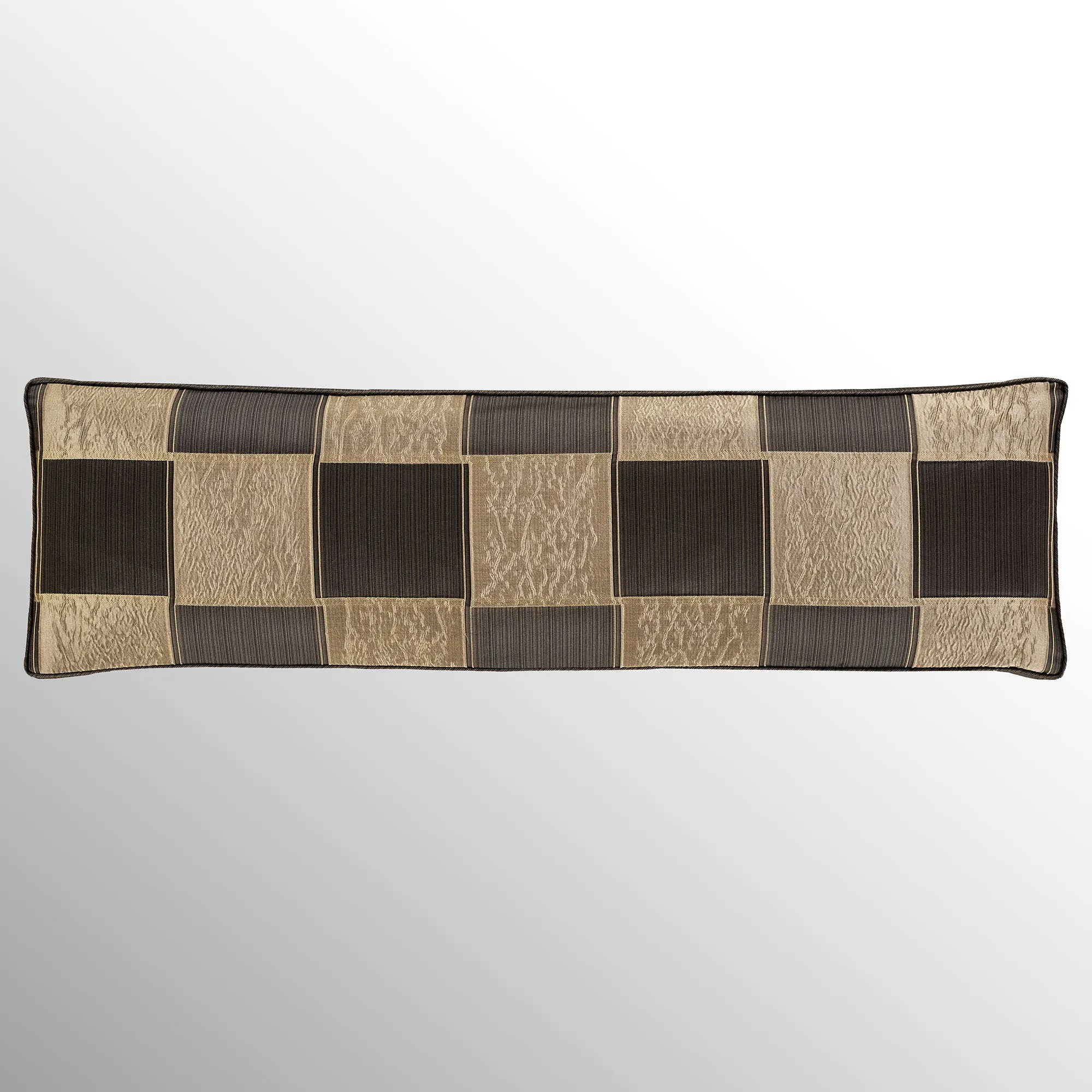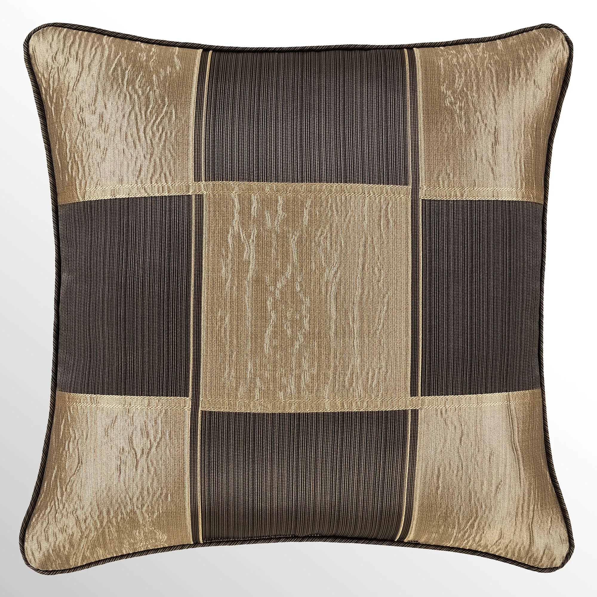 Pillows, except the 20" Square, have 2" side gussets and reverse to the checkered blocks. Spot clean. Specify 18" Square, Accent Rectangle, or Jumbo Rectangle. Also available: the 20" Square reverses to charcoal and bronze striated polyester satin.
