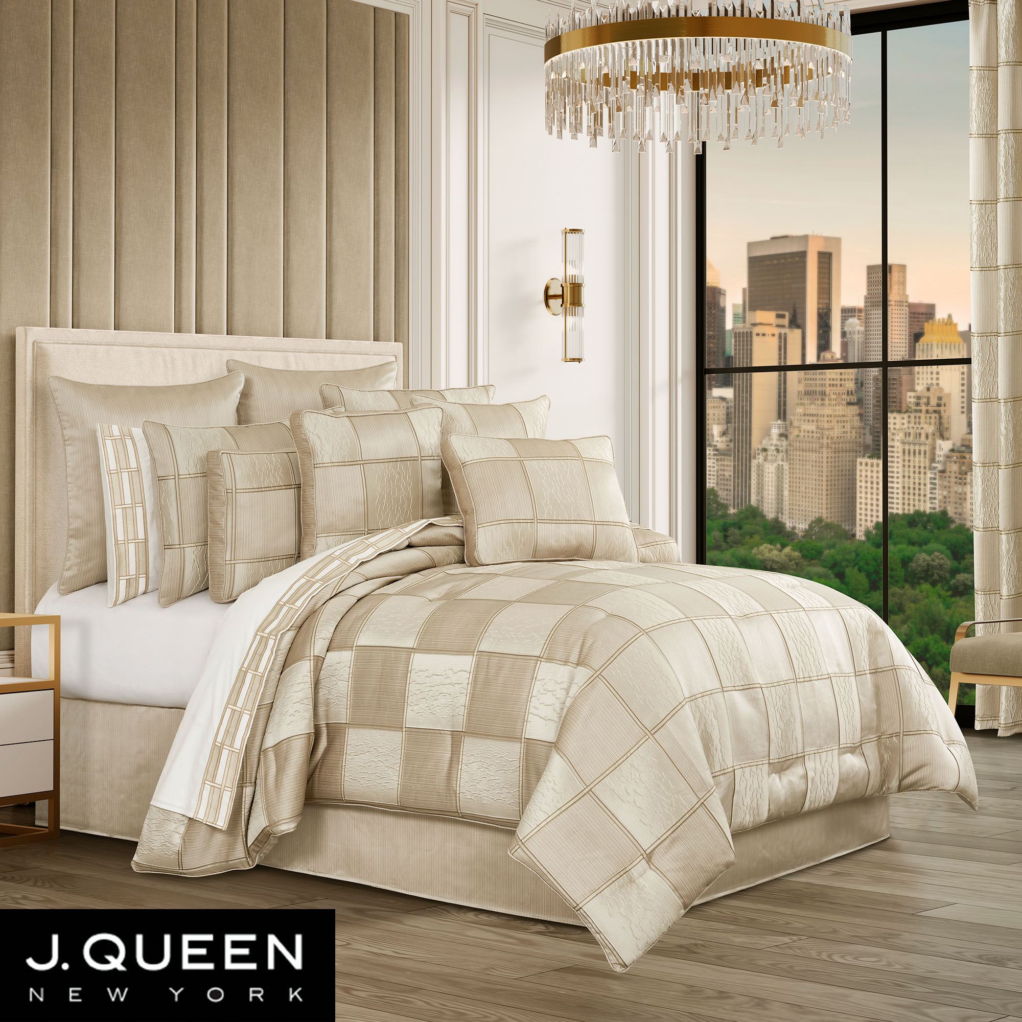 Brando III Natural and Beige Checkered Comforter Set Luxury Bedding by J Queen New York
