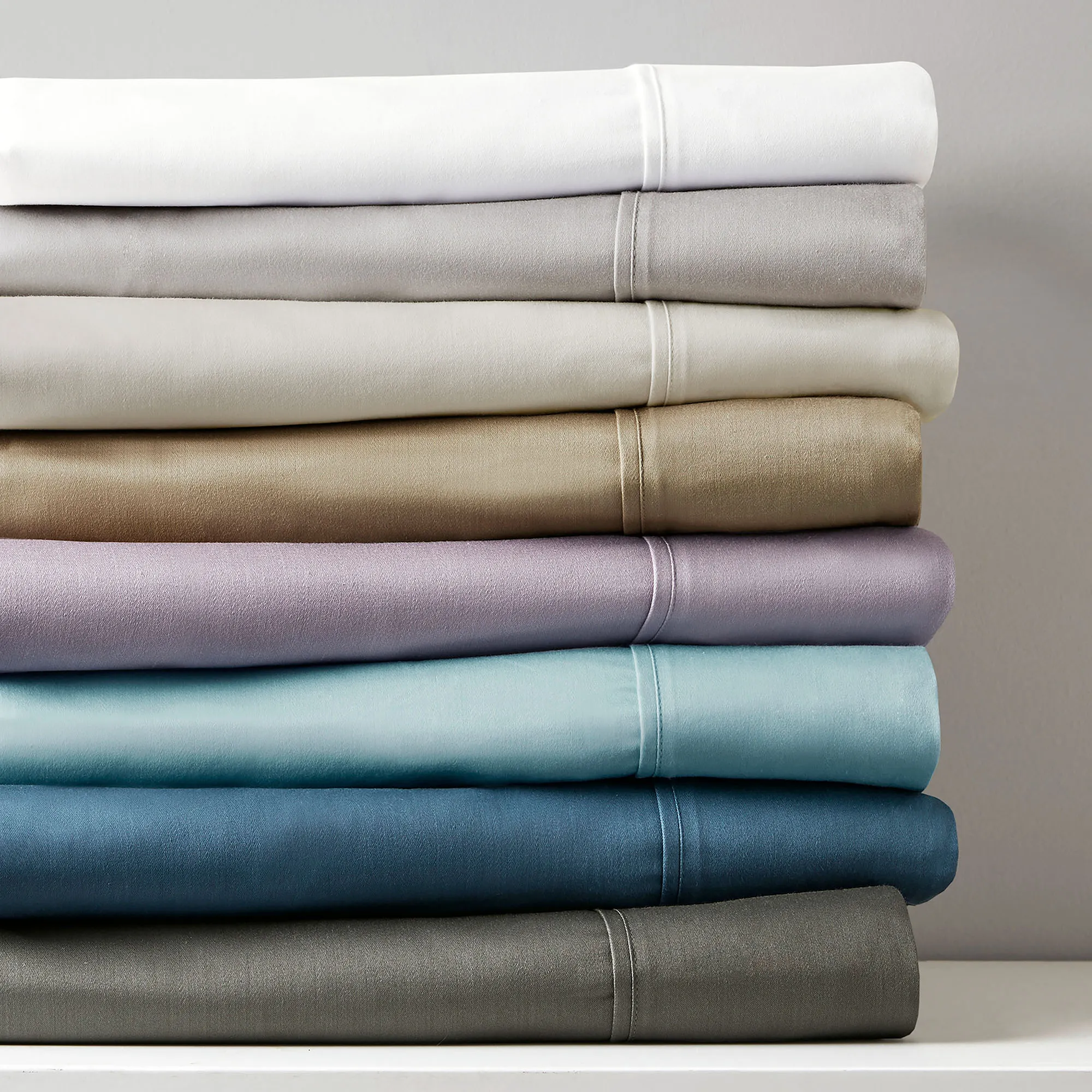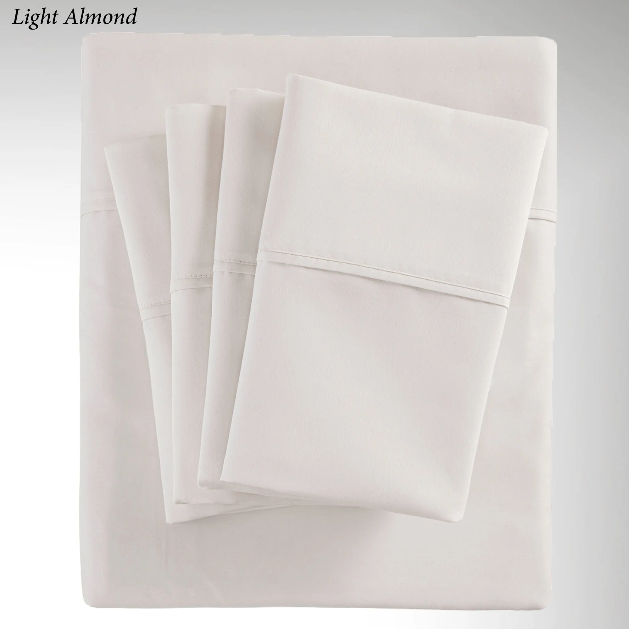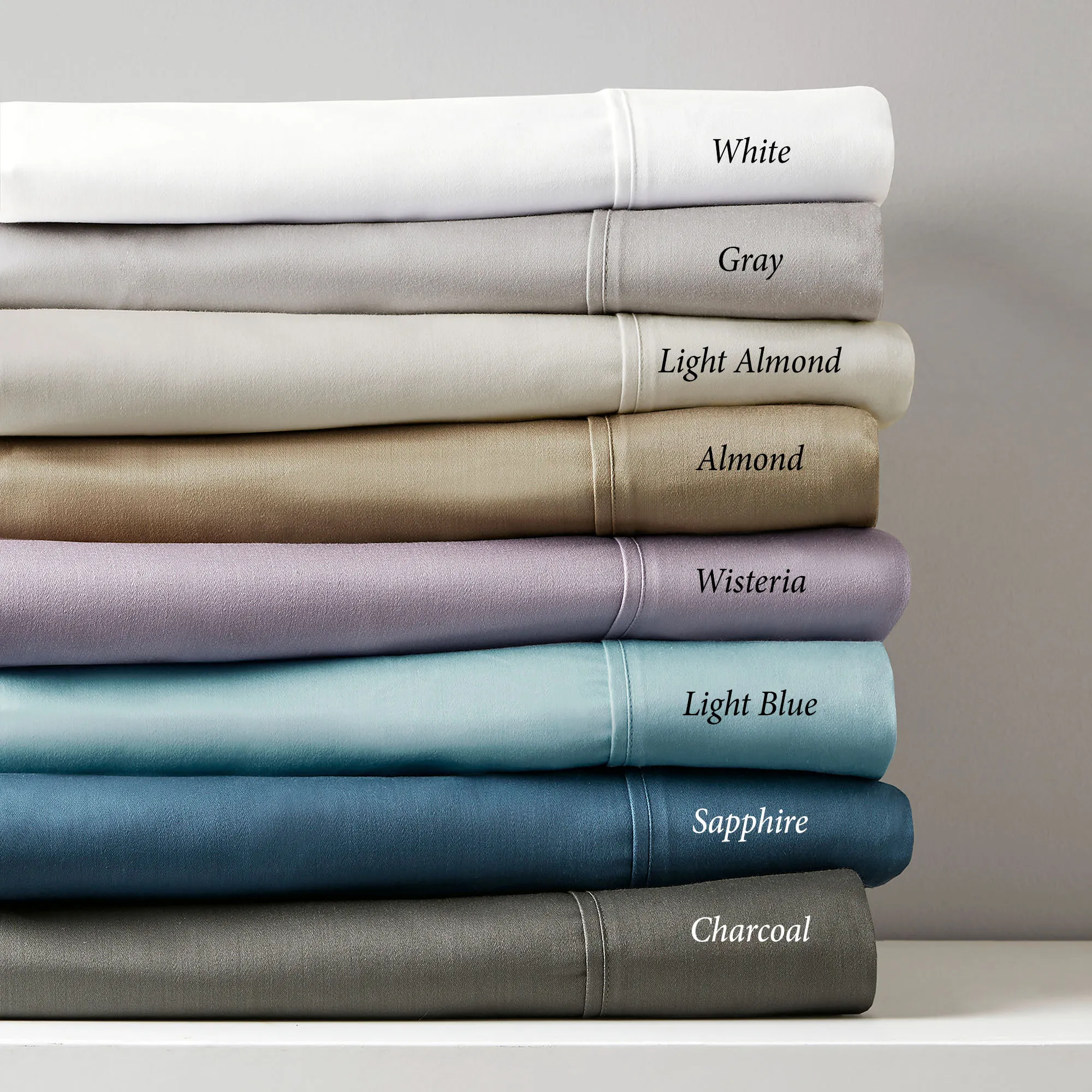 The soft and smooth feel of the Breathless Sheet Set adds a sublime finishing touch to your bedding ensemble. From Madison Park Hotel, the solid color sheets feature an 800 T.C. cotton/polyester blend fabric. The six-piece sheet set includes a flat sheet, a fitted sheet, and four pillowcases. Fitted sheet has all-around elastic and 15" deep pockets to fit up to a 17" deep mattress. Flat sheet and pillowcases have a 4" attached hem. Specify Almond, Charcoal, Gray, Light Almond, Light Blue, Sapphire, White, or Wisteria. Machine washable. Imported.