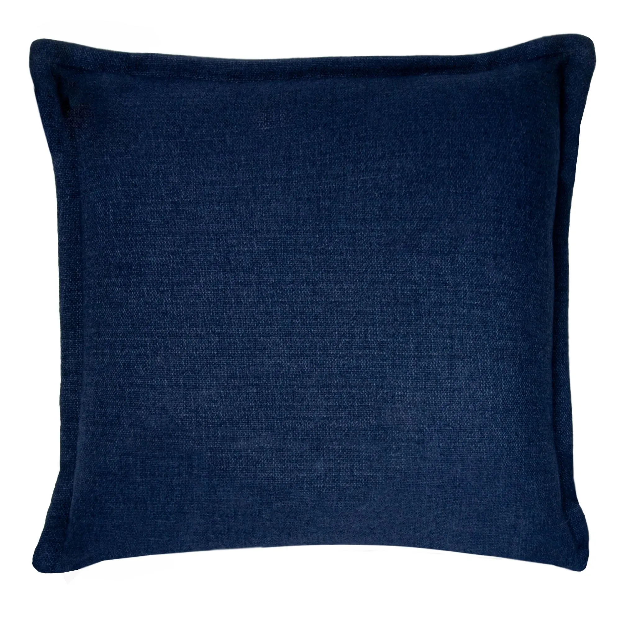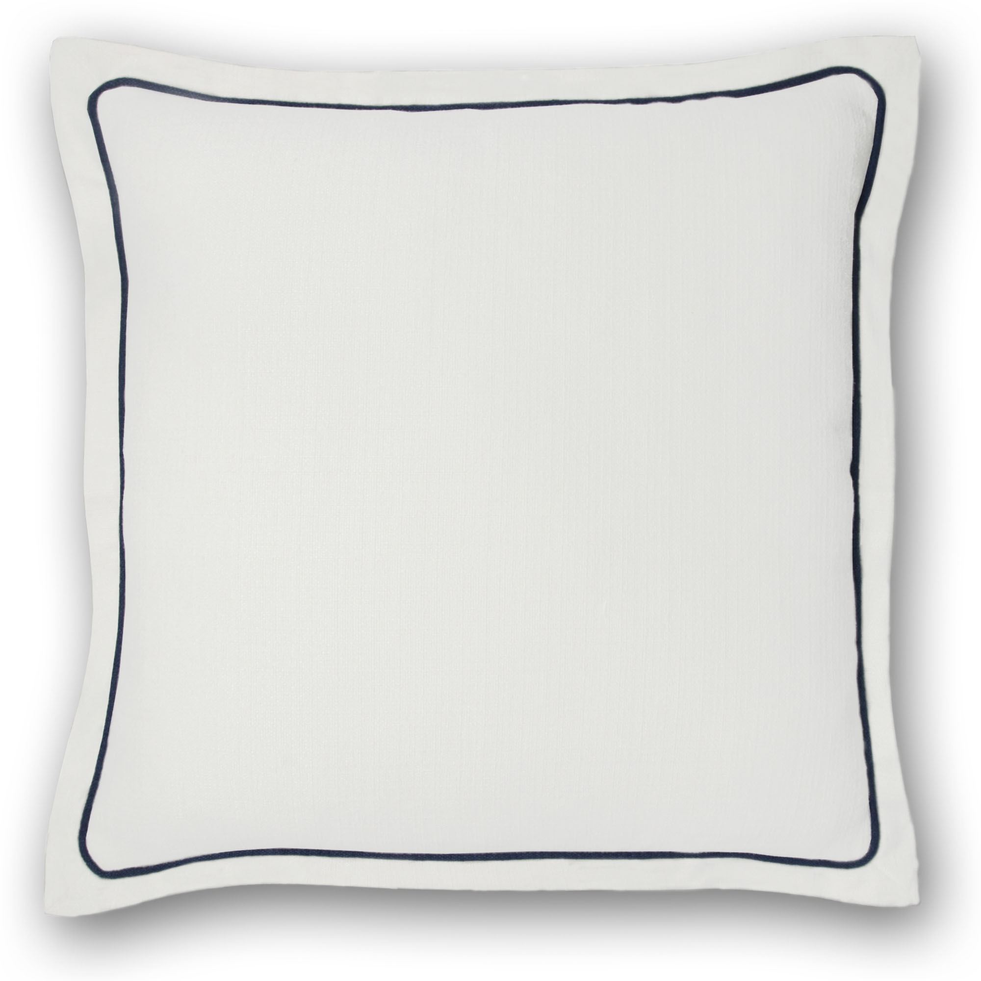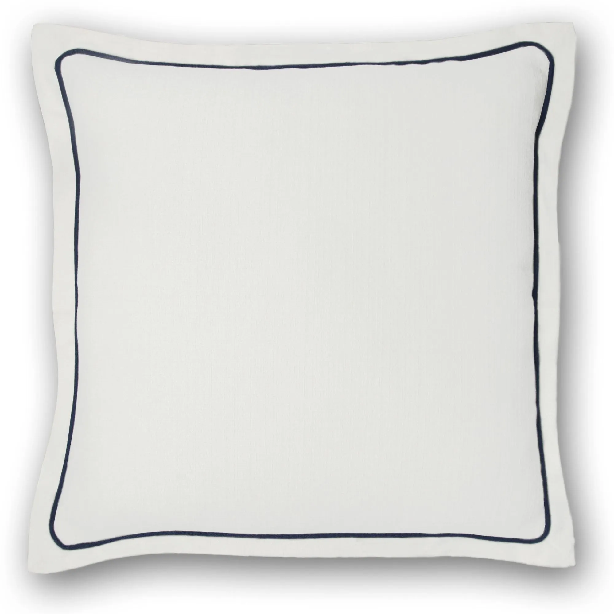 The Solid European Sham is woven ivory with dark blue piping along with flanged ends; zipper closure.
