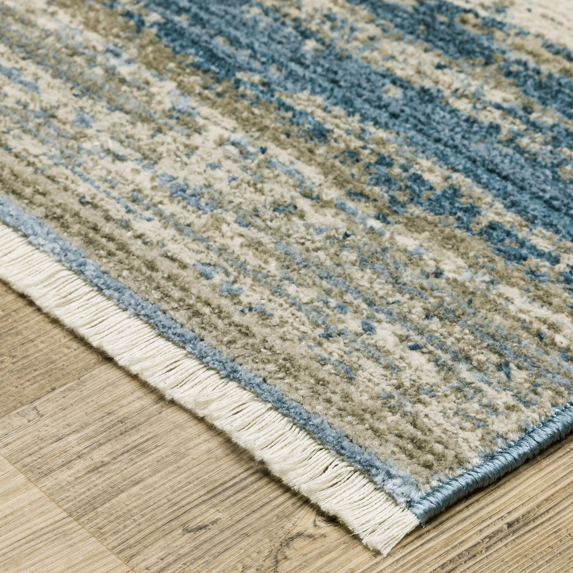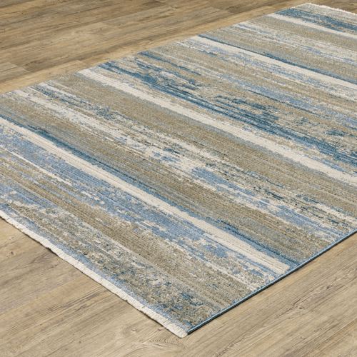 Brightwork Blue and Taupe Abstract Linear Fringed Area Rugs