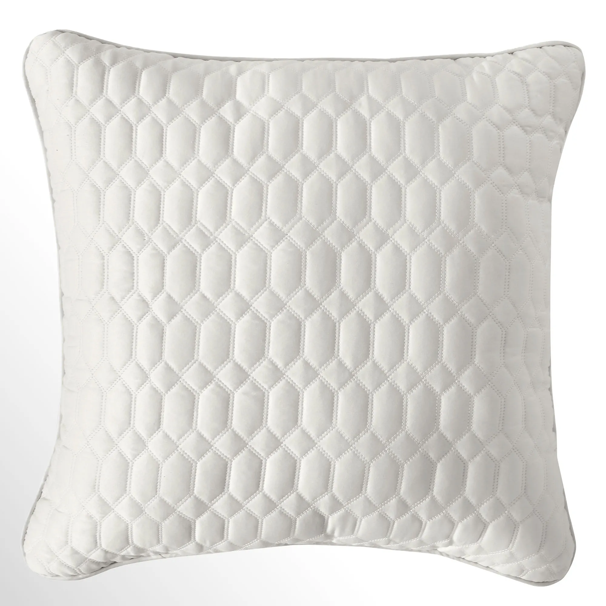 Bask in the Brilliance of these beautiful accent pillows from J. Queen New York. The monochromatic polyester satin pillows are a solid ivory hue. Square, 20", has geometric quilting and piped edges. The reversible, handmade Round, 15", is pleated ivory polyester satin with a button-tuft center and a 3" side gusset. Sorry, the other items are no longer available. Fill is polyester. Spot clean. Imported.