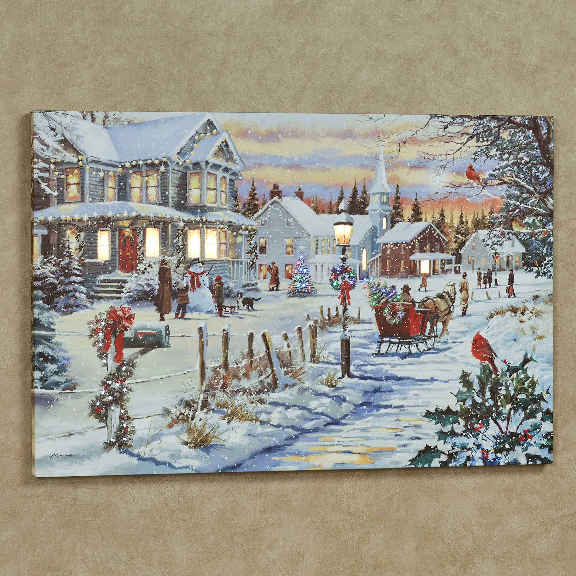 • Lovely lighted holiday canvas wall art