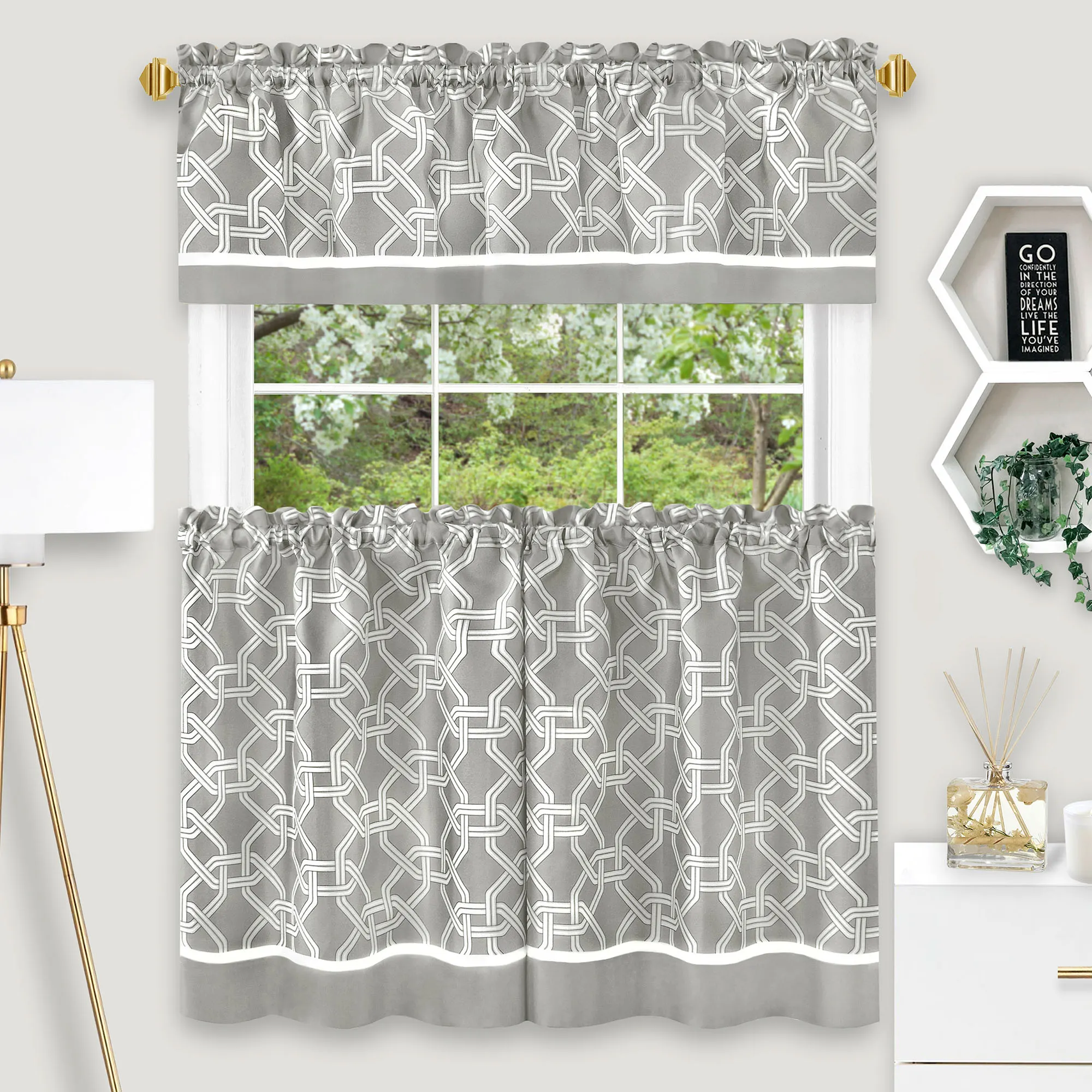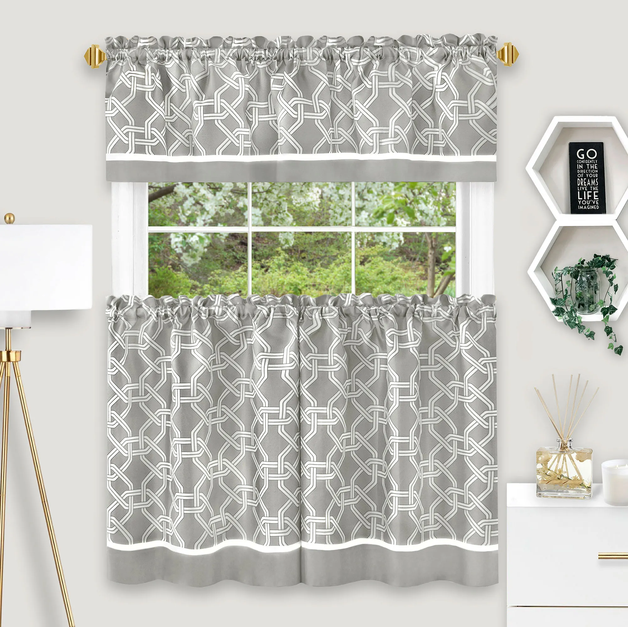 Brinson Geometric Tier and Valance Window Treatment Set