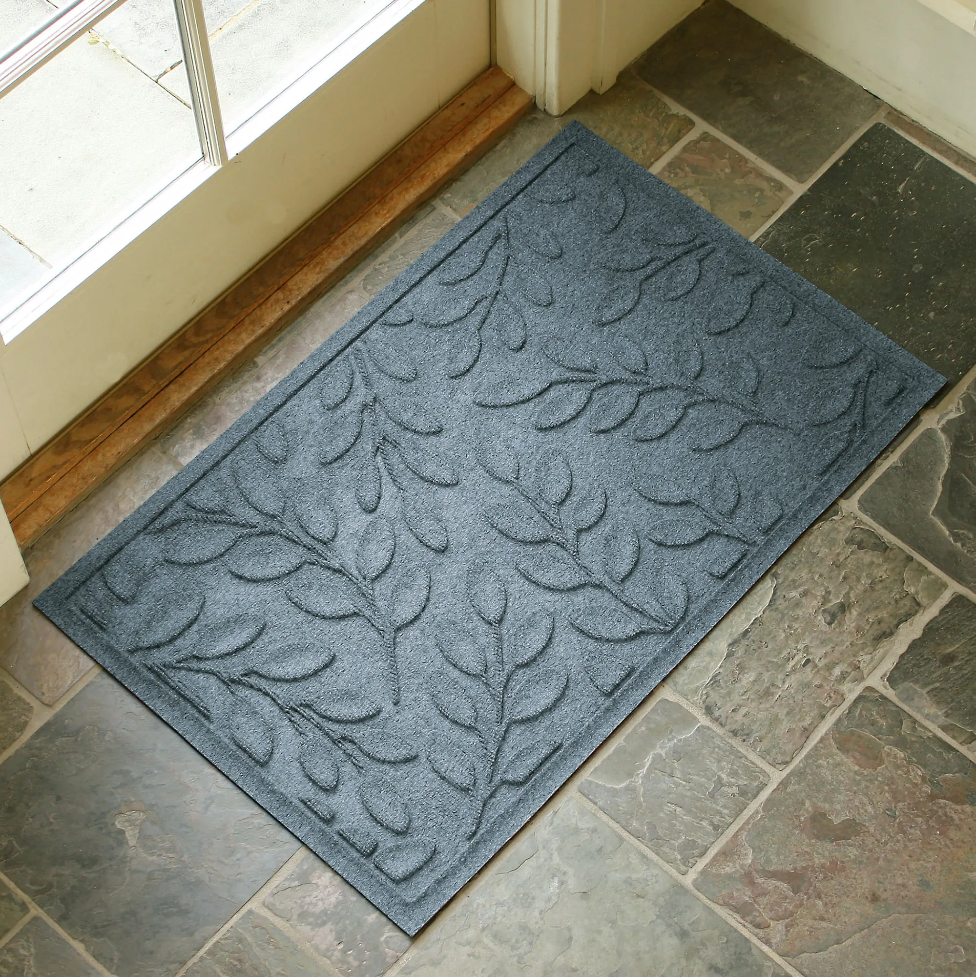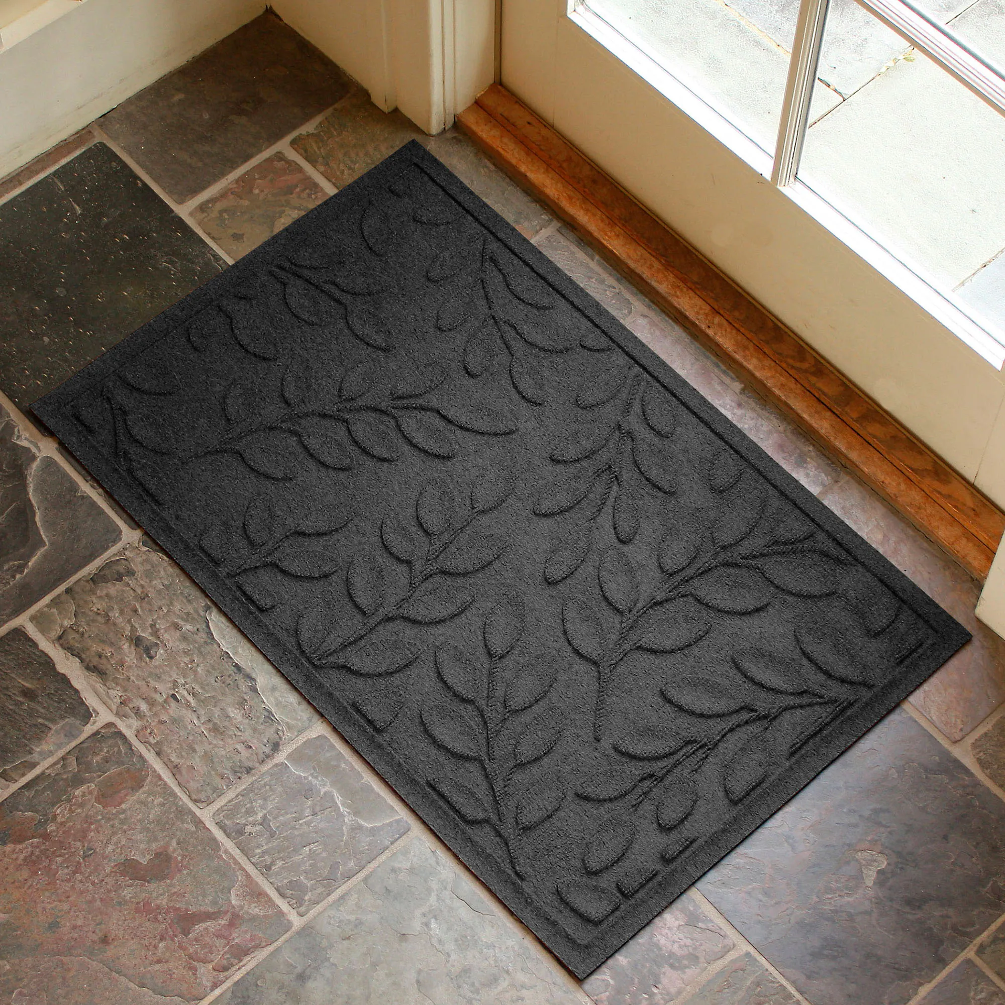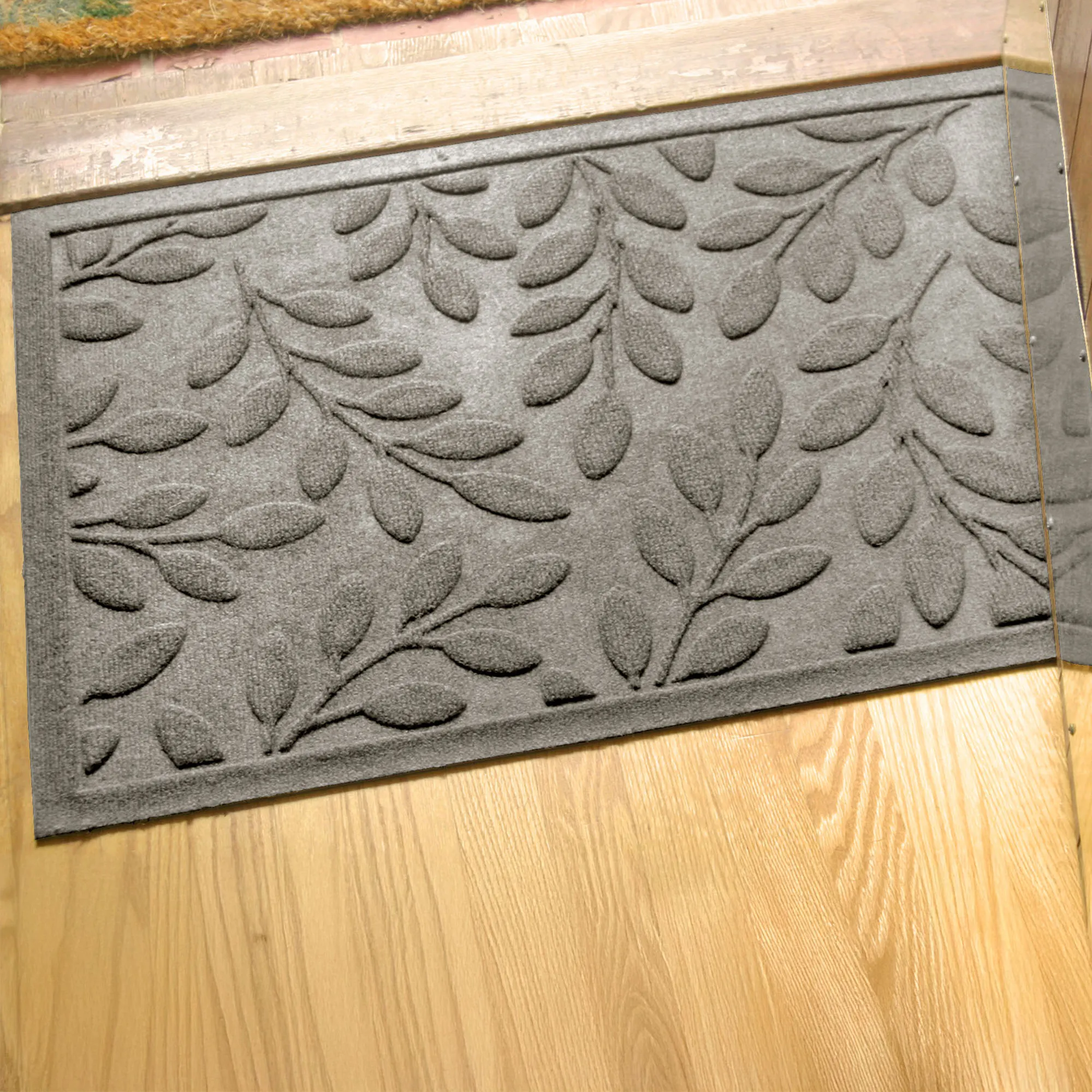 • WaterHog(R) mat has leaf motifs