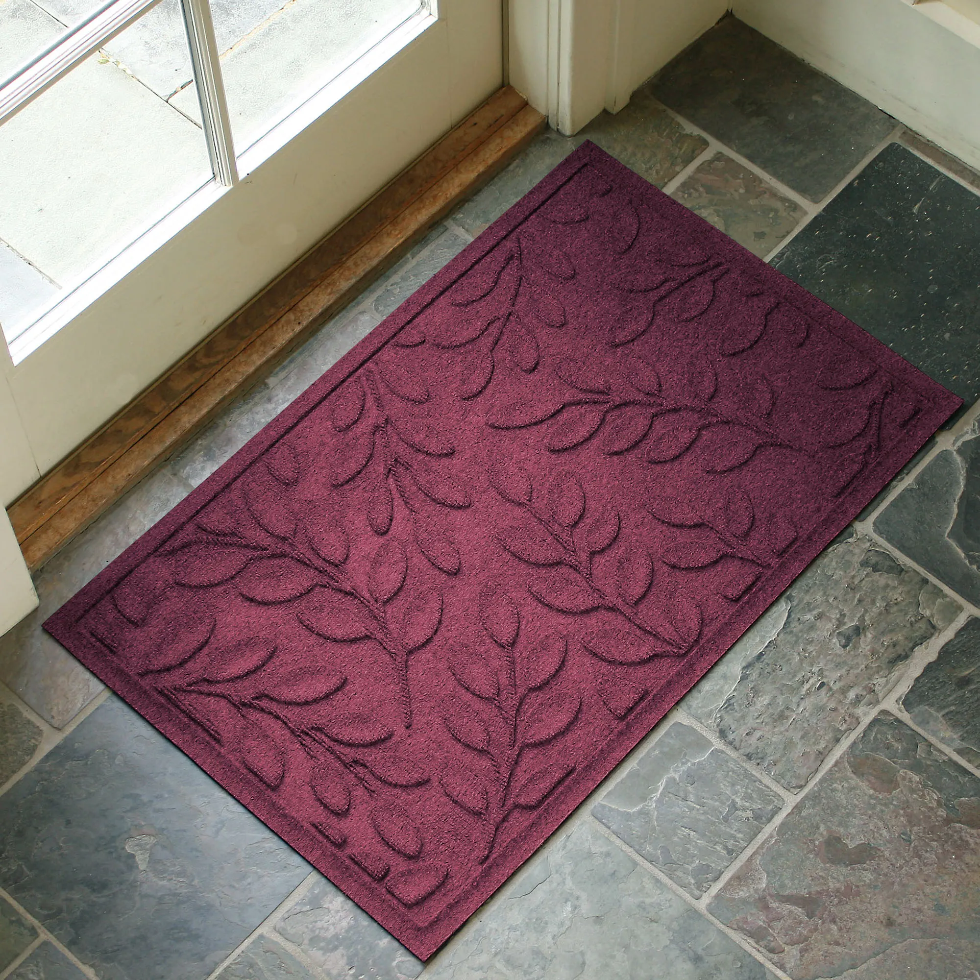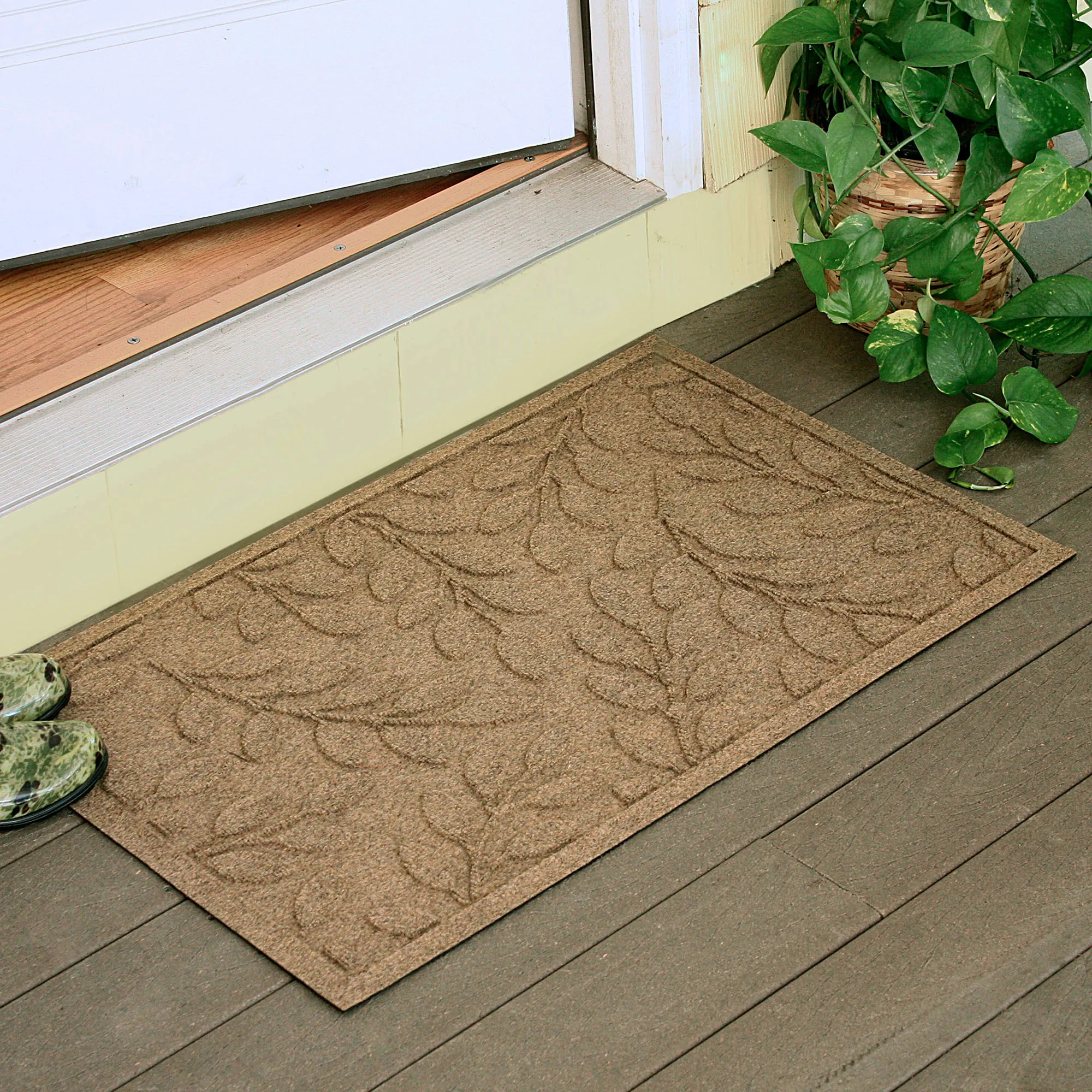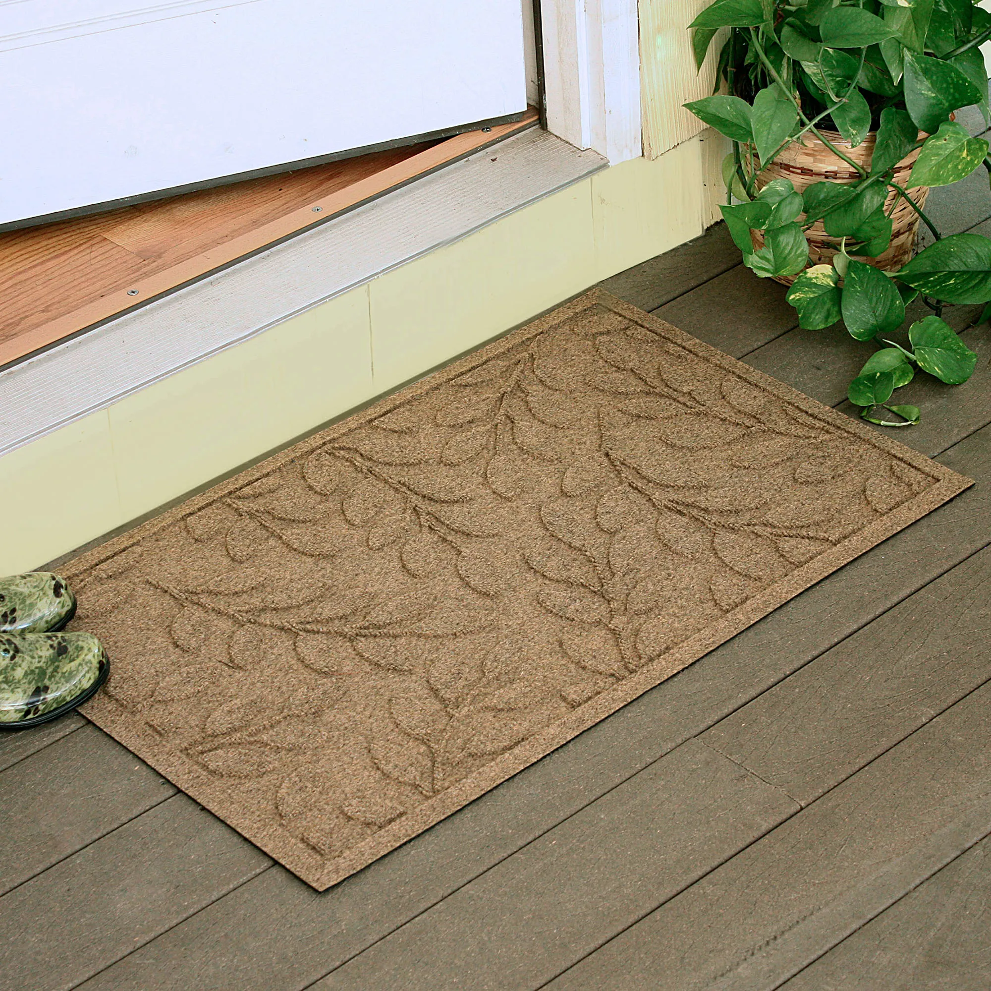 • WaterHog(R) mat has leaf motifs