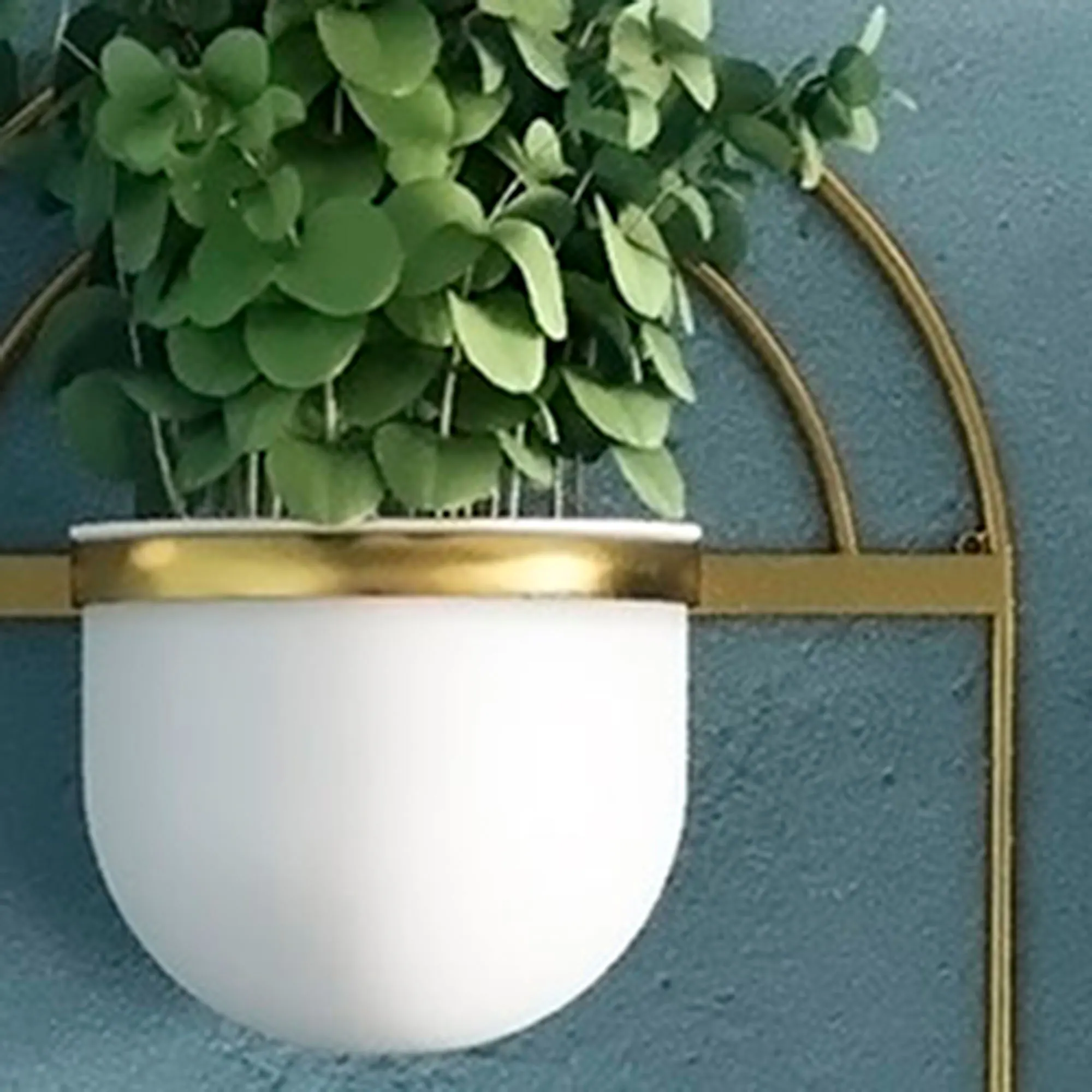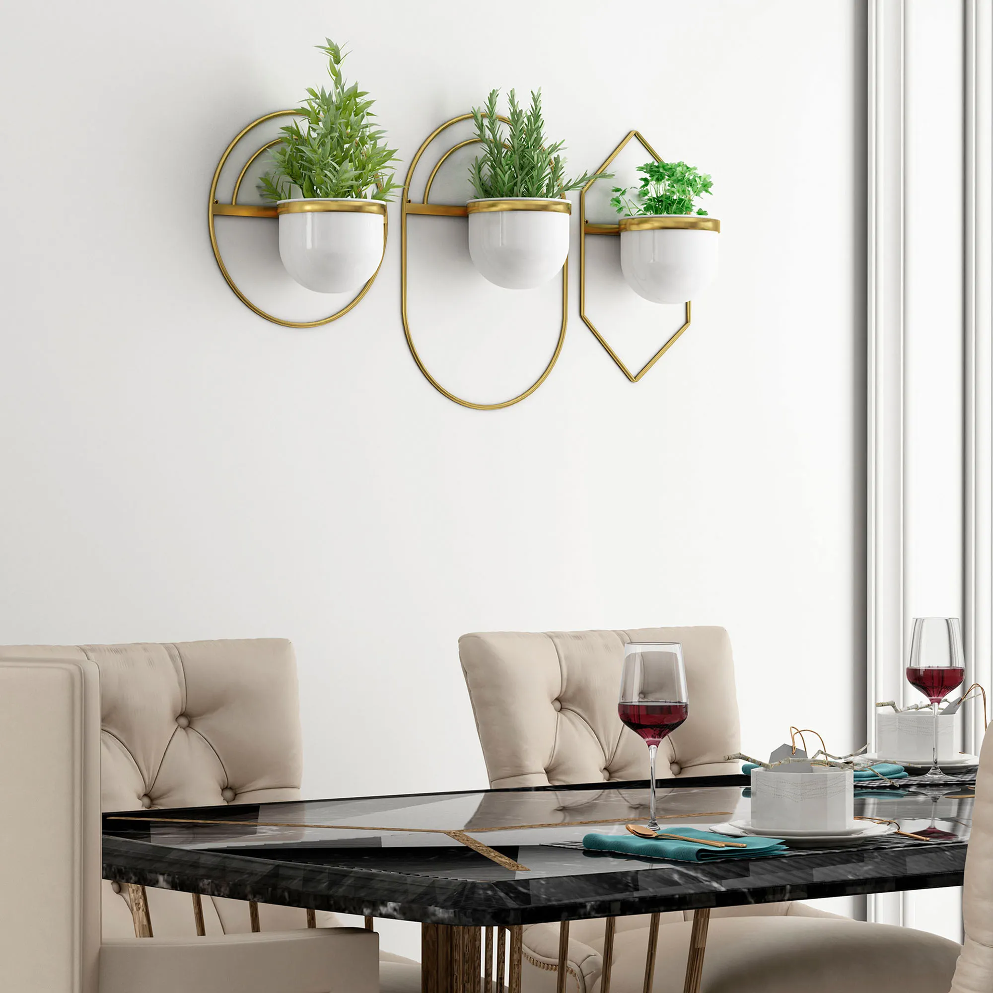 Brooklyn Gold Geometric Metal Wall Planter Set with Ivory Pots