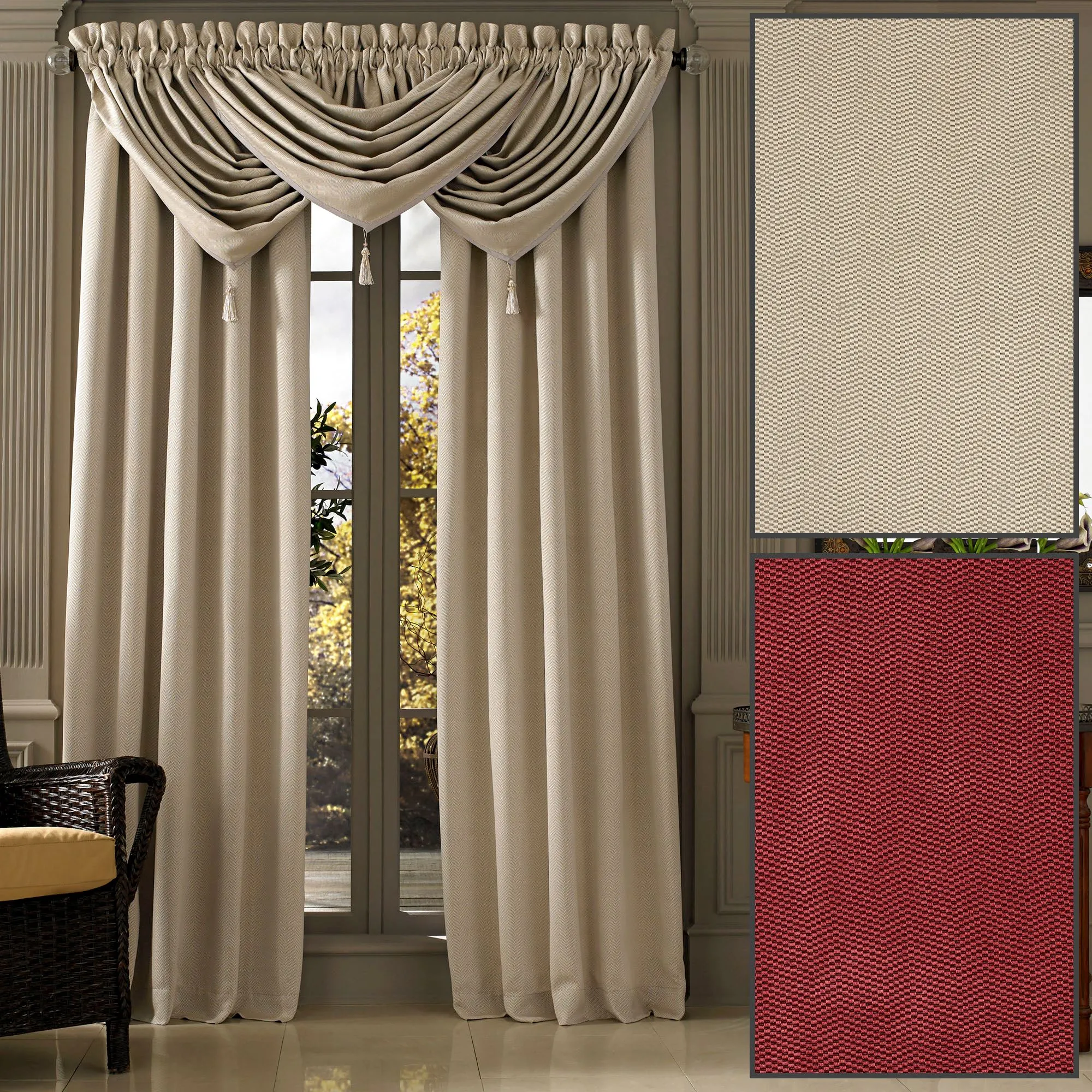 • Shown: 2 Curtain Panels & 3 Waterfall Valances