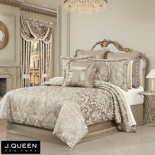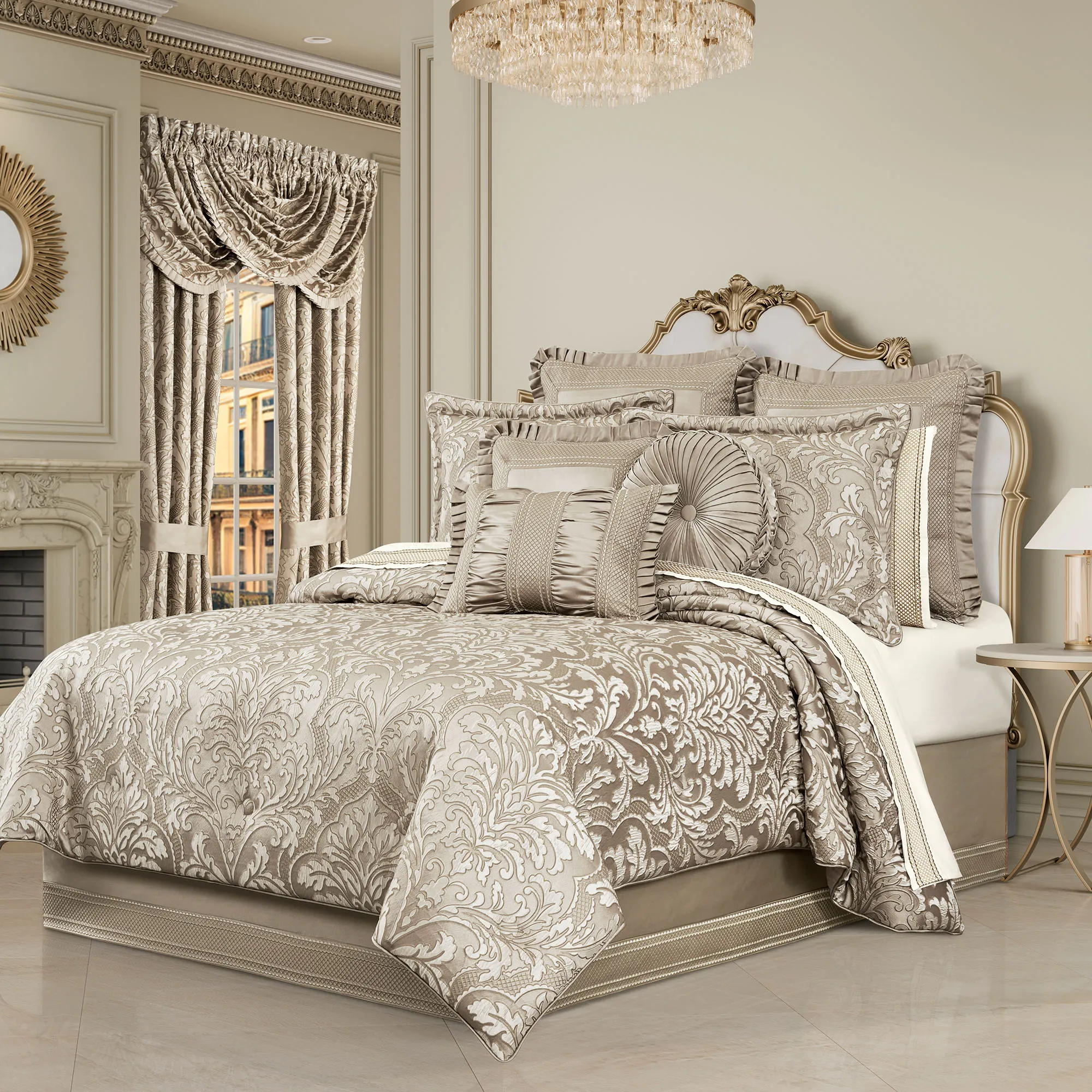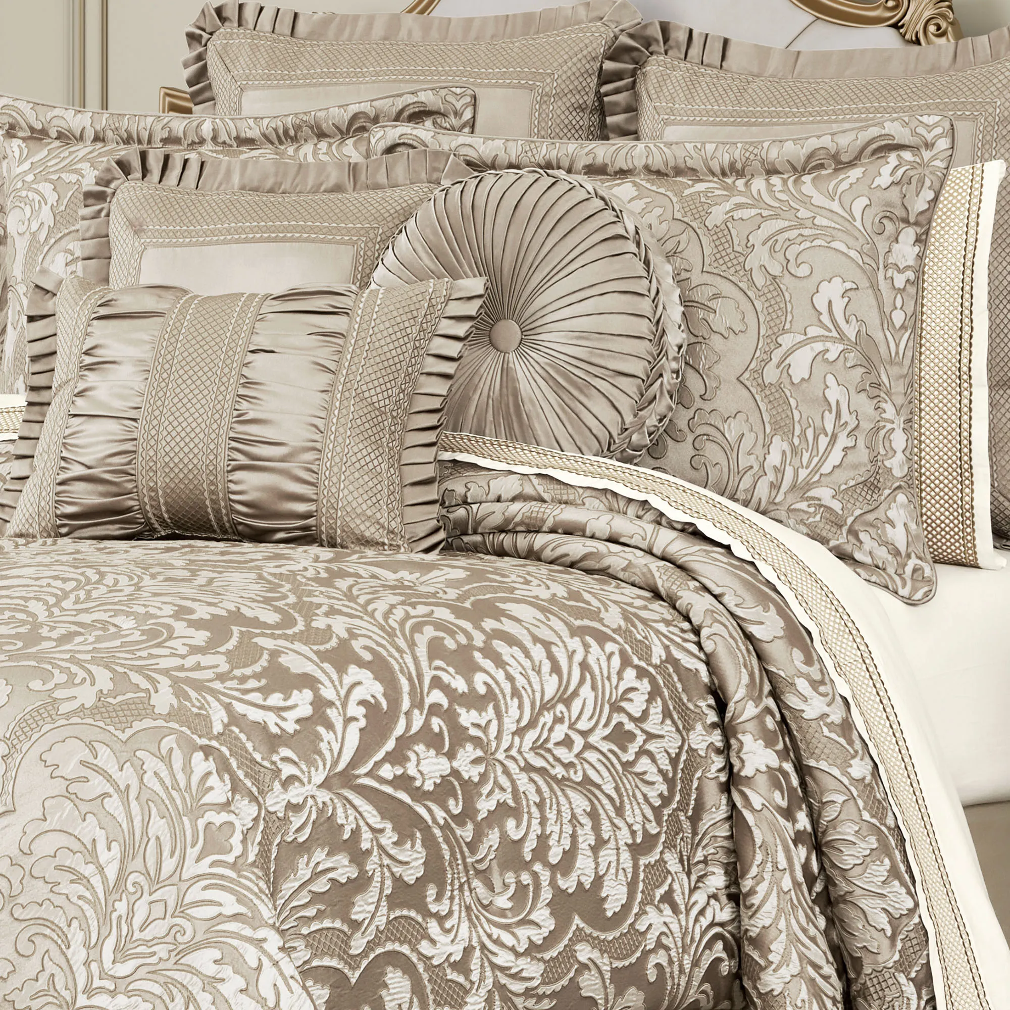 Brunello Light Taupe Damask Comforter Set Luxury Bedding by J Queen New York