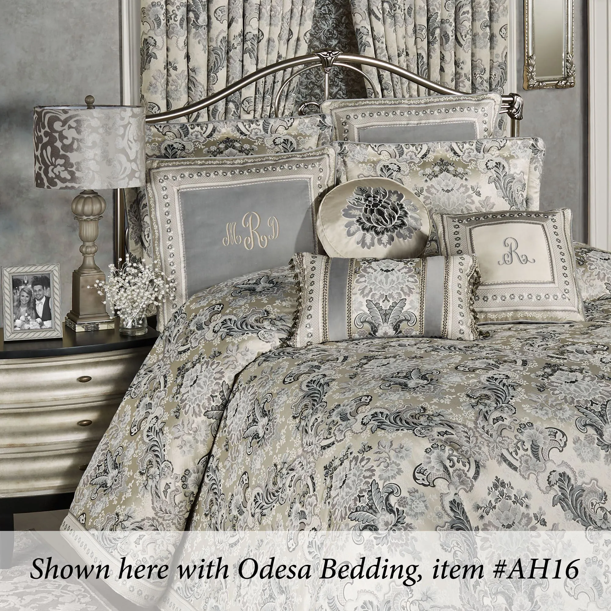 Exquisite, classical detailing refines the Brynn Table Lamp. On a clear crystal square base, the resin font rises with a beveled rectangle base, fluted orbs, petal accents, and a brushed gray finish. Acanthus flourishes in burned-out velvet pattern the silver shade. UL listed. Requires one 100W max. bulb. Overall, table lamp measures 14"dia.x29.5"H, including the 2"H ball finial.