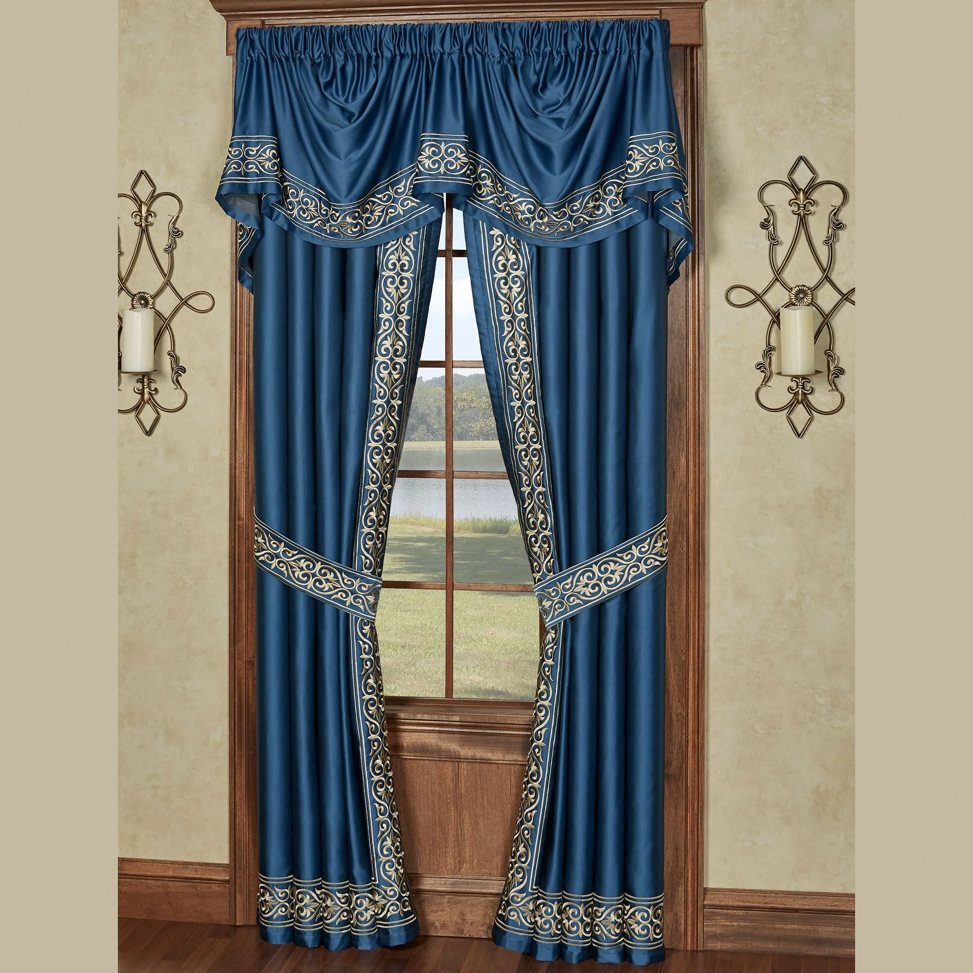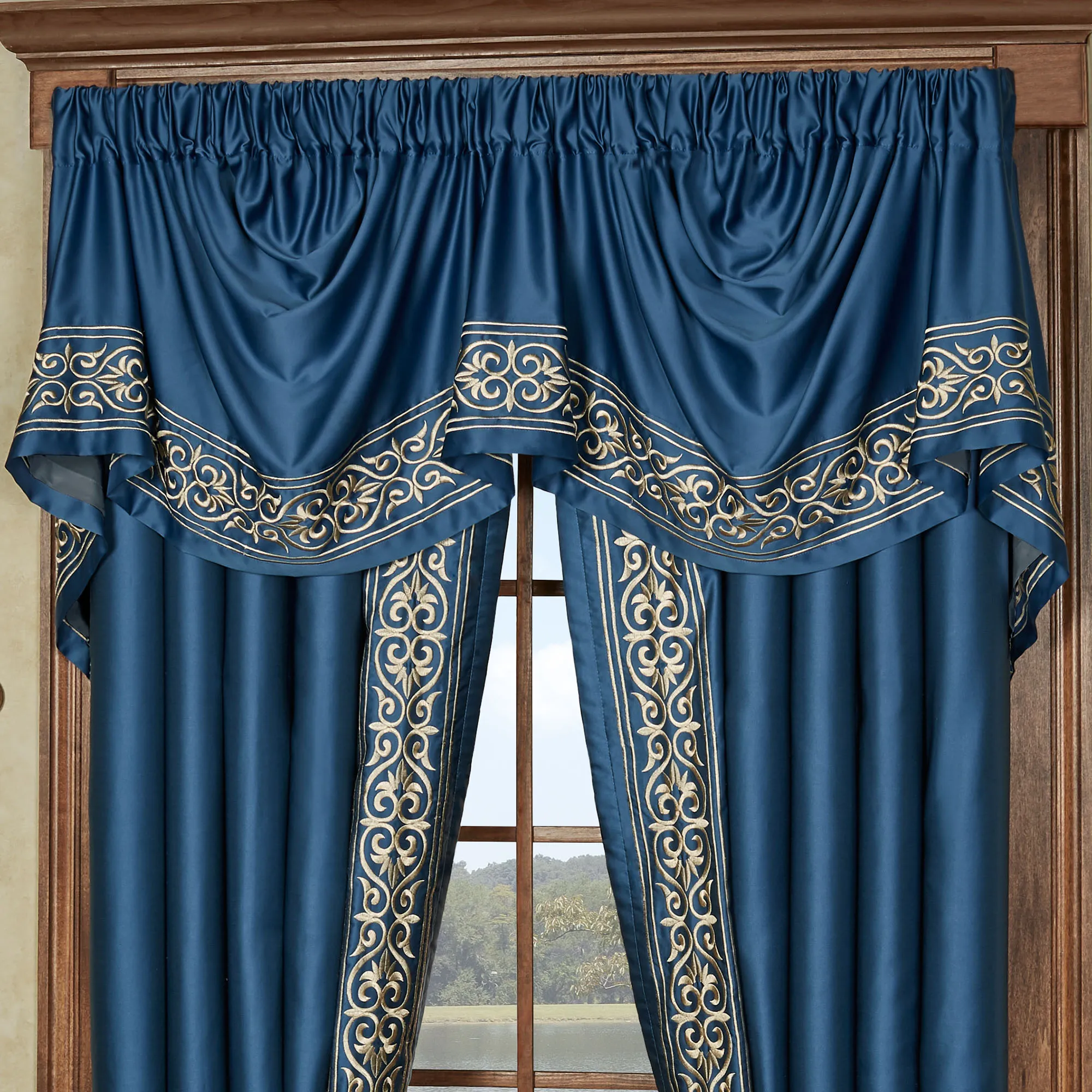 Buckingham Sapphire Blue Embroidered Empire Window Treatment