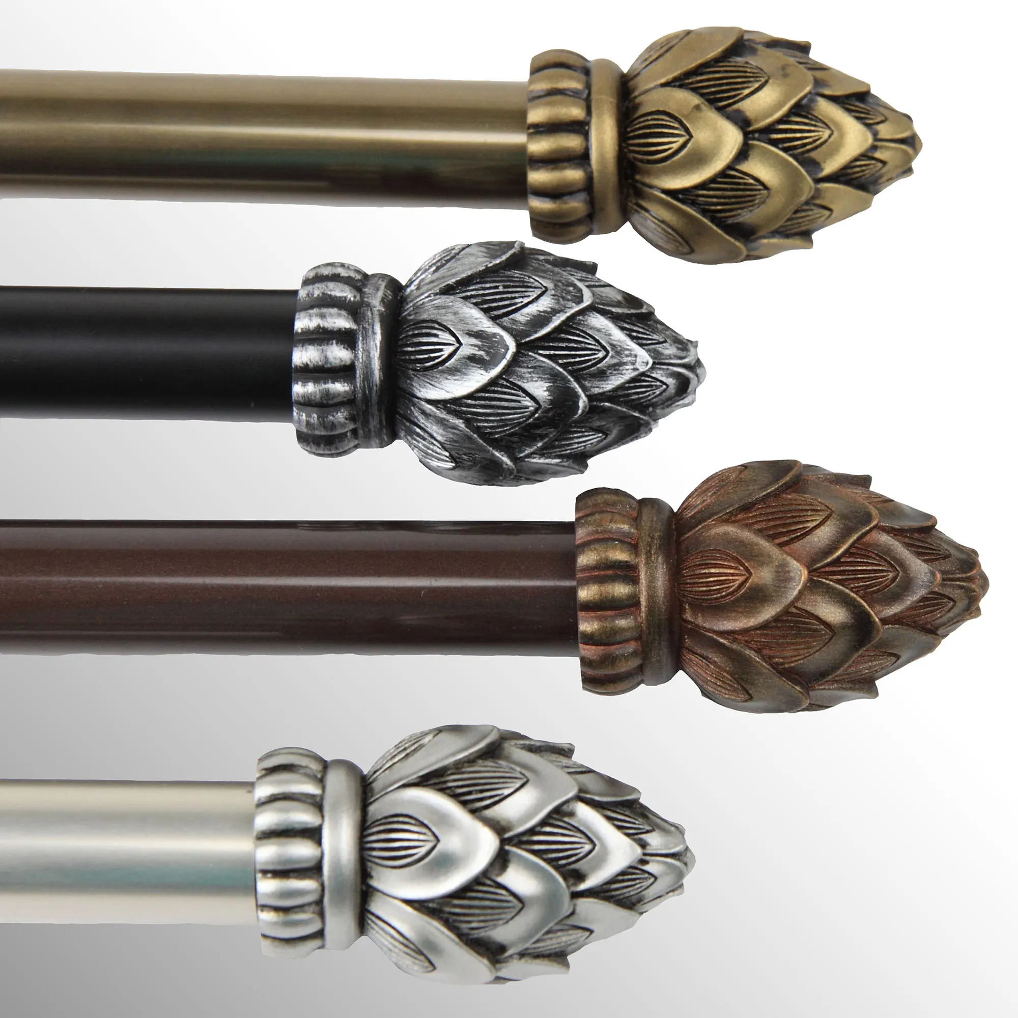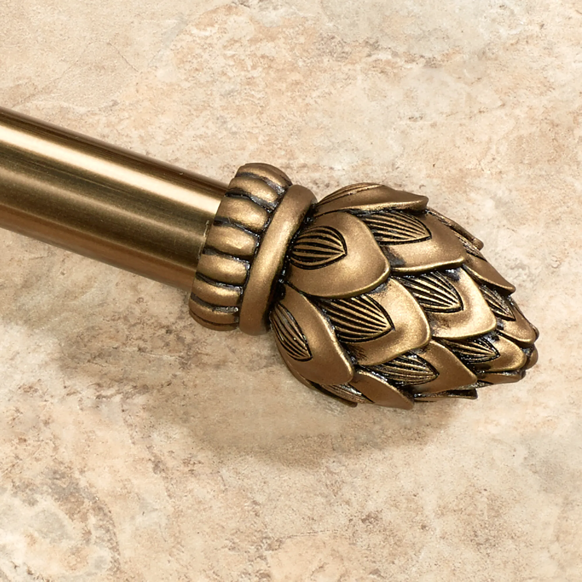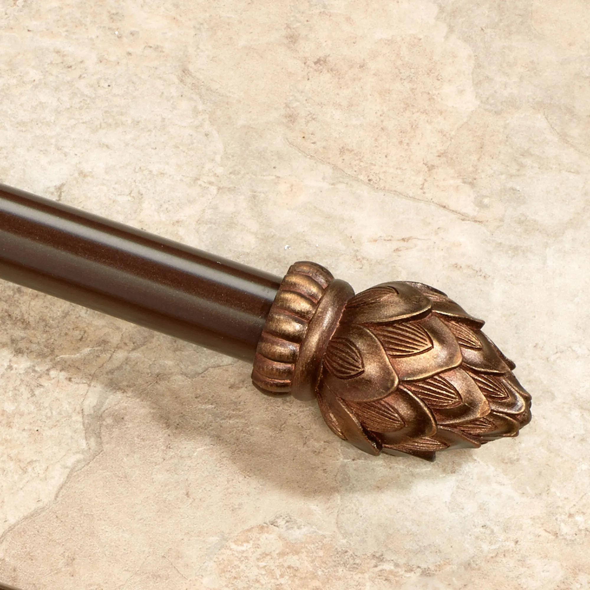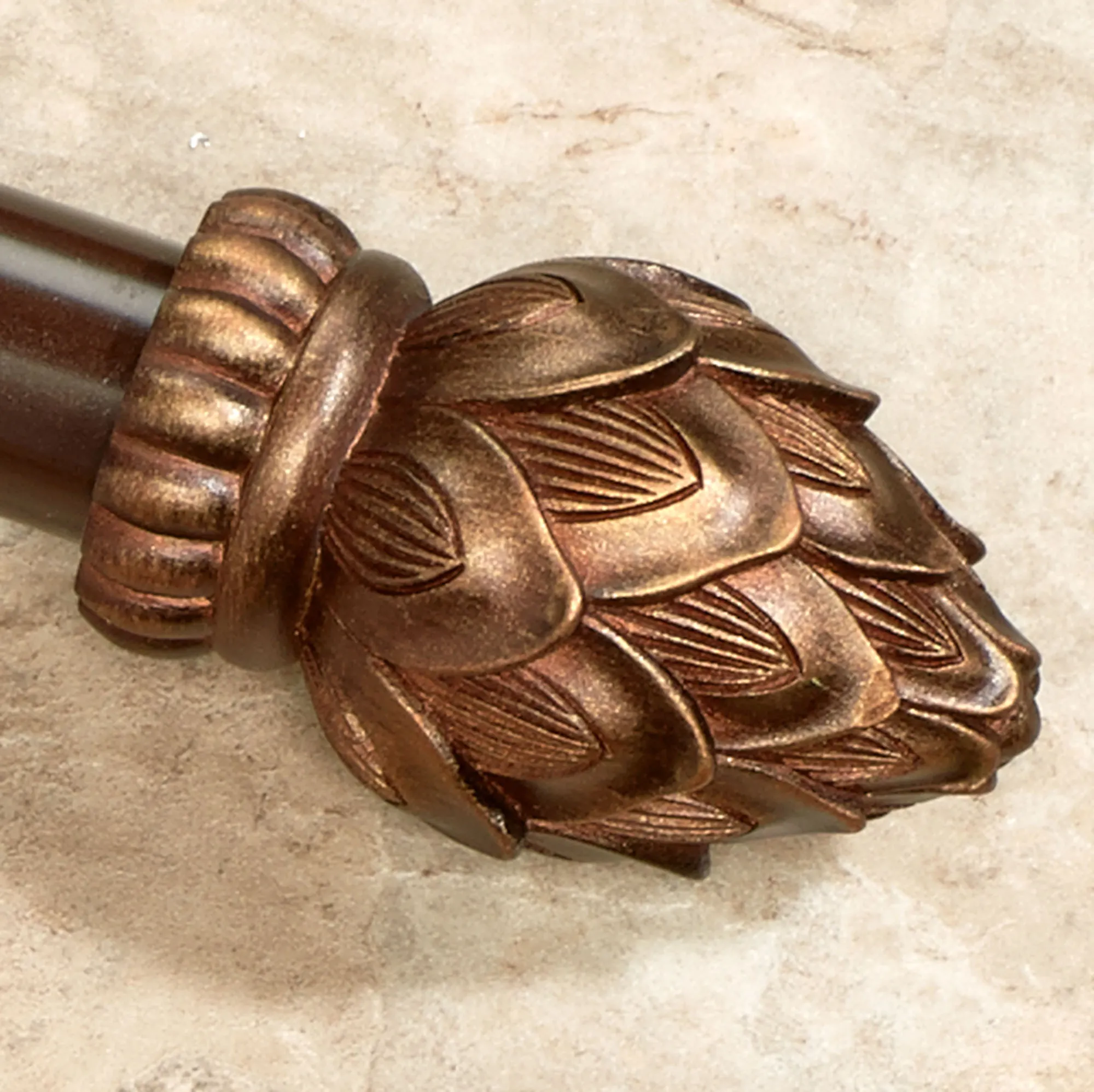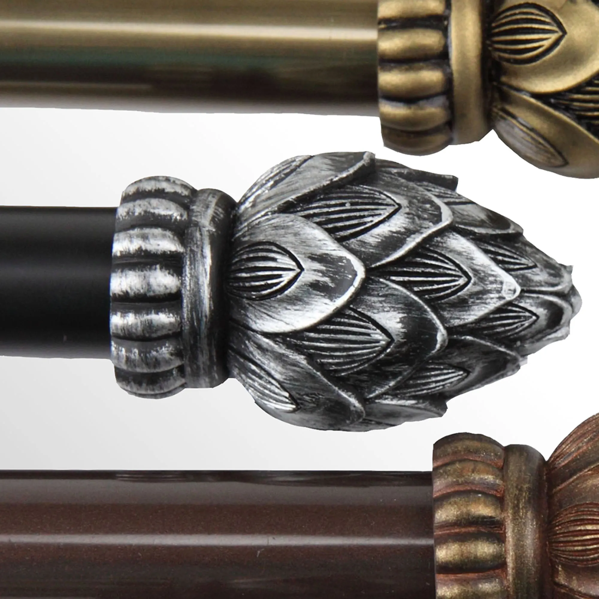Hang your window treatment with the decorative style of the Bud Single Curtain Rod and Finial Set. This steel accent has resin finials that resemble flower buds. Decorative rod set includes a .75" dia. telescopic rod, two 2.5"Wx1.5"Dx1.5"H finials, brackets with a 2" projection, and mounting hardware. The 18"-28" and 28"-48" sizes have two brackets; the 48"-84" and 66"-120" sizes have three brackets; and the 120"-170" size has four brackets.