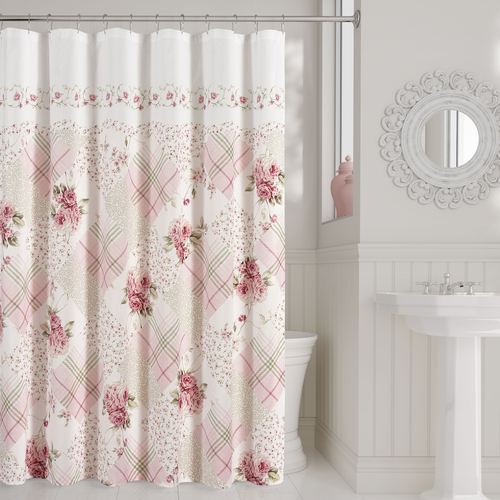 The Bungalow Pink Floral Plaid Shower Curtain exudes a sweet grace that charms with enchanting roses, flowers, and plaids. From Royal Court, the printed polyester shower curtain features a patchwork-like design of blooming roses, leaves, mini ditsy florals, and classic plaid. Solid white tops the look, decorated with scrolling rose motifs. The pink coloration includes hues of pink, rose, white, and green. We recommend the use of a waterproof liner. Measures 72"Wx70"L. Machine washable. Imported.