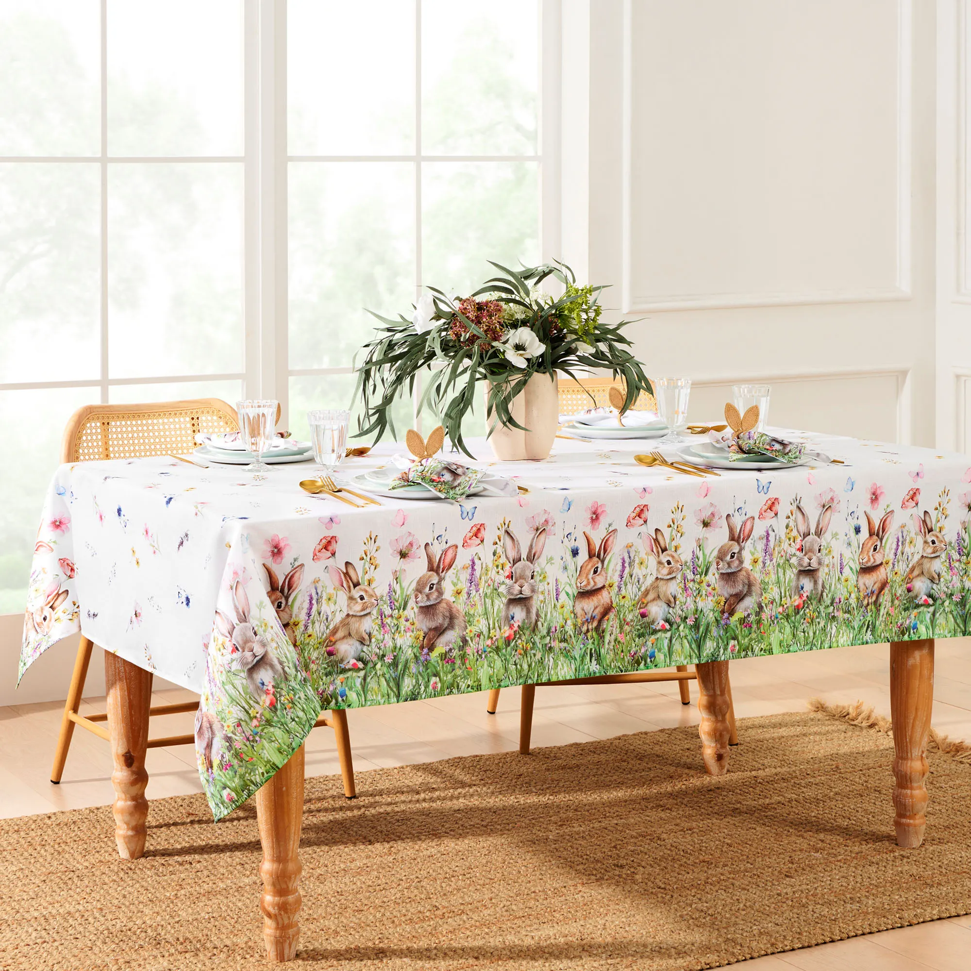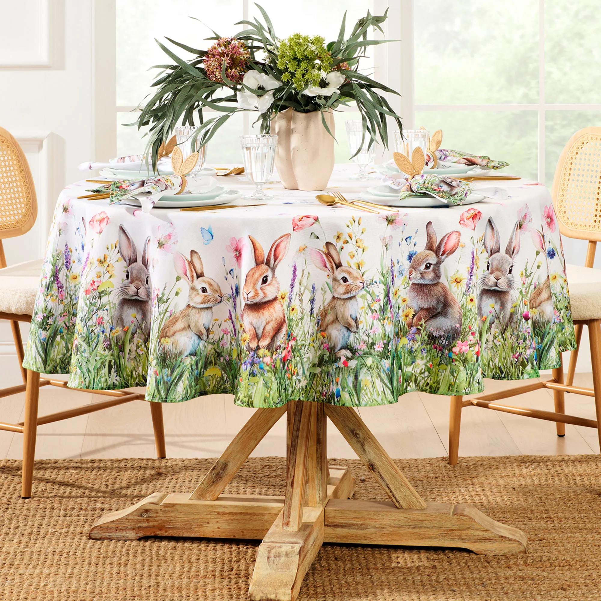 Bunny Rabbit Meadow Spring Easter Round Tablecloth and Table Linens