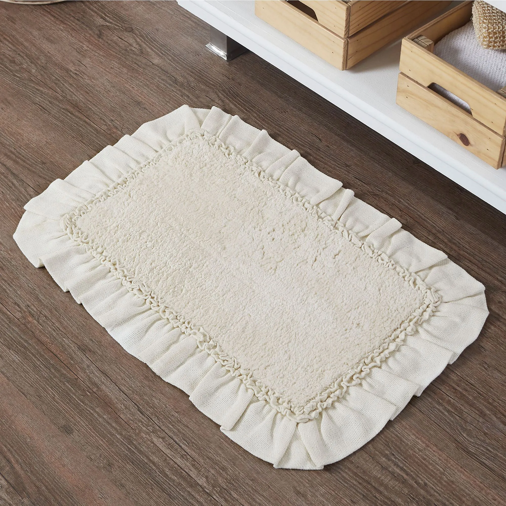 Burlap Antique White Ruffled Bath Mats by April & Olive