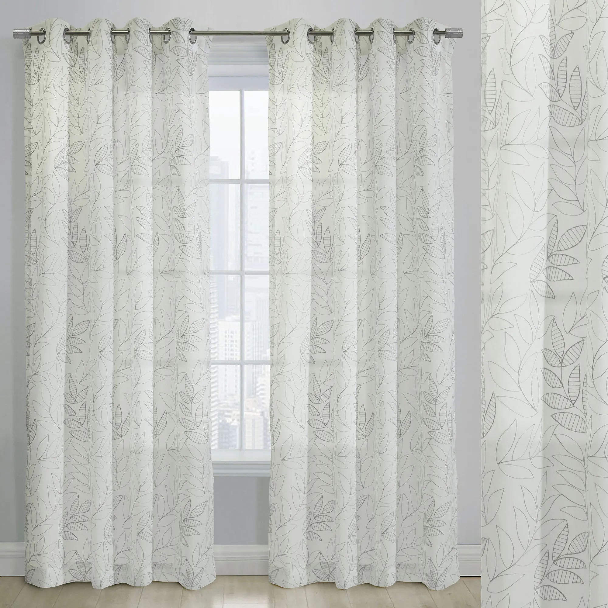 Burrill Embroidered Leaf Semi Sheer Grommet Curtain Panel