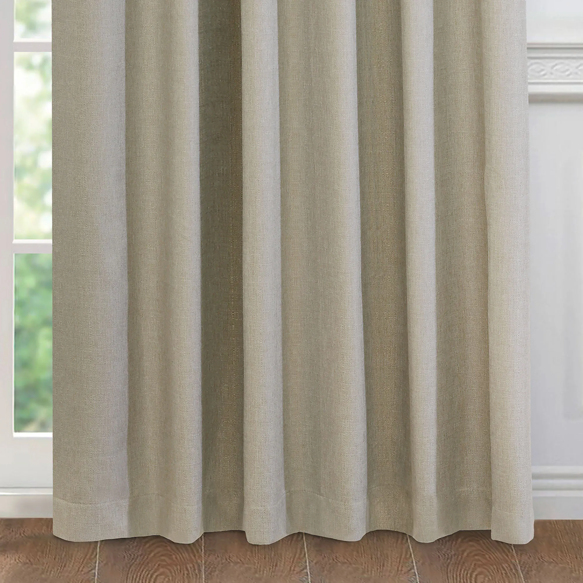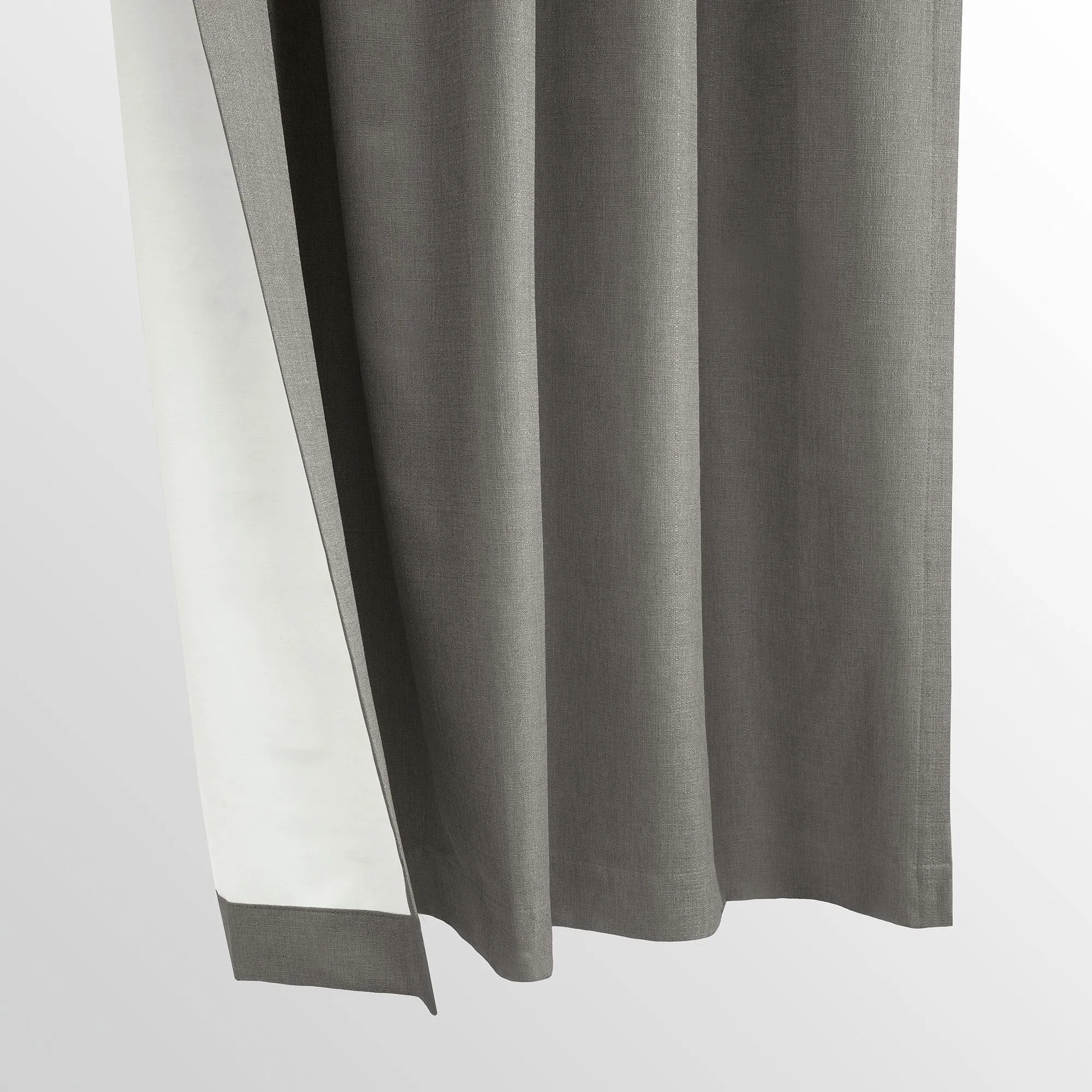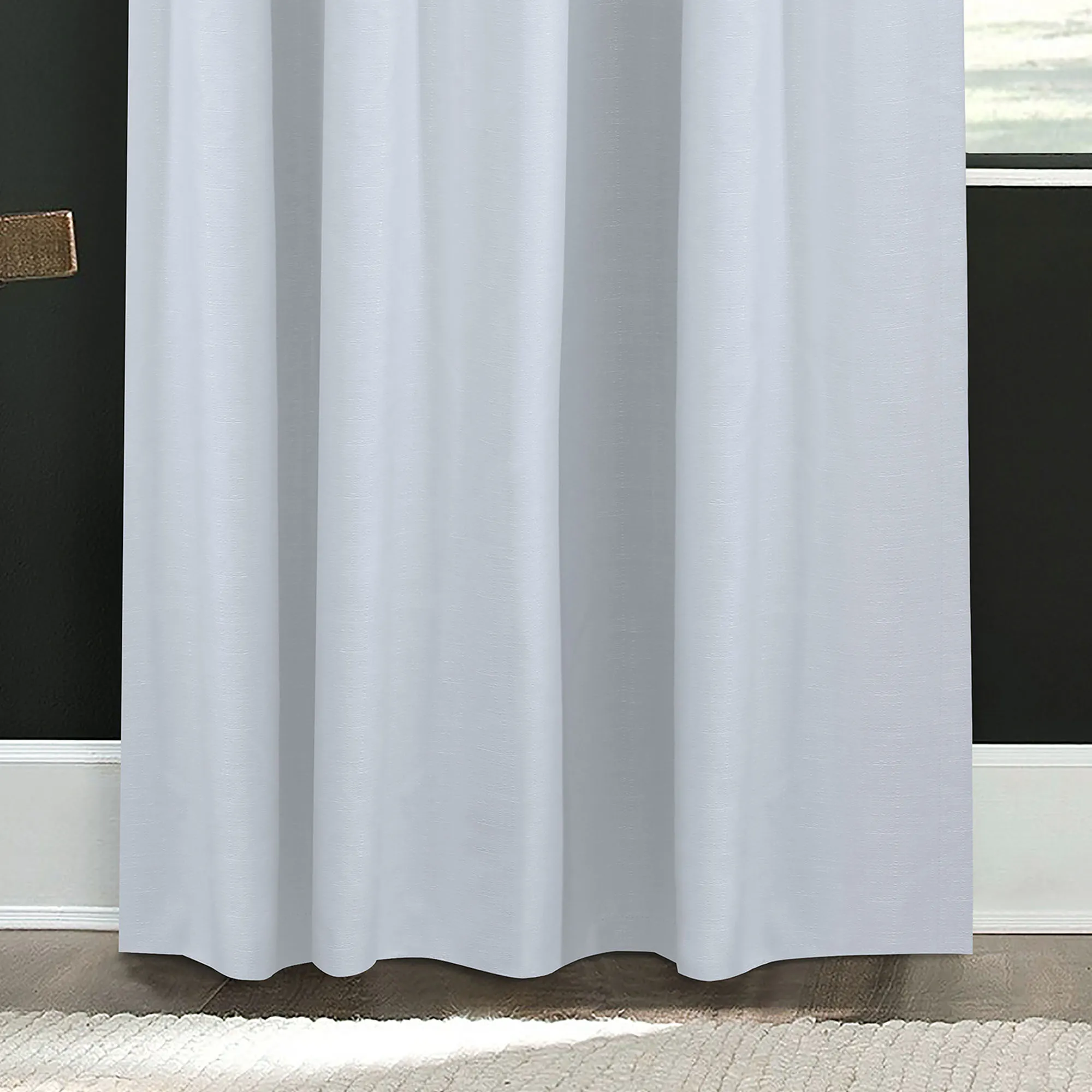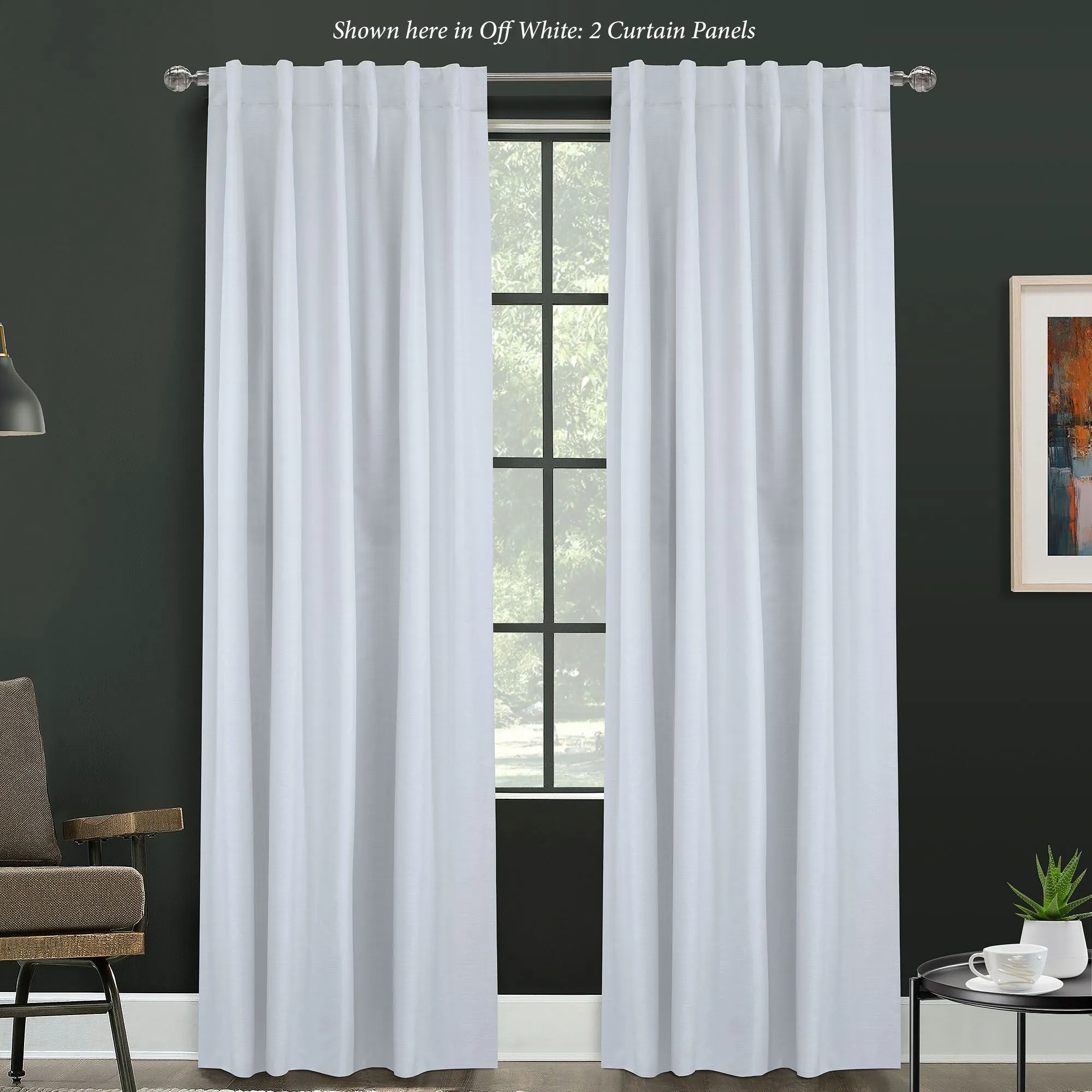 The Burrton Curtain Panel is a solid-color solution for any living space. This energy-efficient, polyester window panel, by Thermaplus(TM), has a slight texture and blocks out 100% of light. Use the 3" back tabs or the 3" rod pocket for hanging. Sold individually, each curtain panel has a viscose lining and is 52"W. Machine washable. Imported.