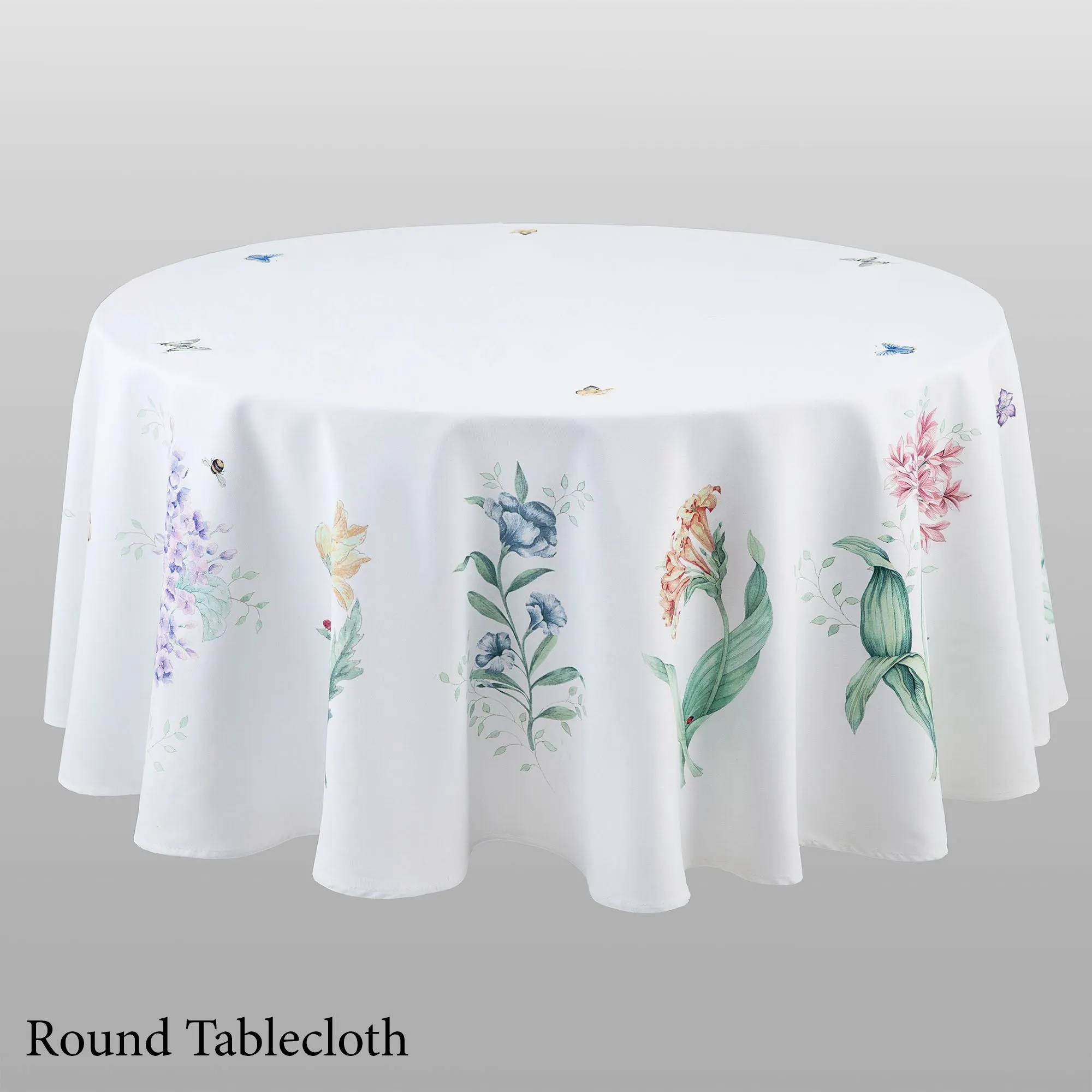 Let spring showcase its vibrant life and color in the sweet Butterfly Meadow Garden. These table linens, from Lenox(R) American by Design, feature printed florals and butterflies on ivory slubbed polyester. Colors include shades of rose, blue, purple, golden yellow, sage, and orange. Ends are hemmed. Specify Table Runner, Placemat Set of 4, Napkin Set of 4, Oblong Tablecloth, or Round Tablecloth. Machine washable. Imported.