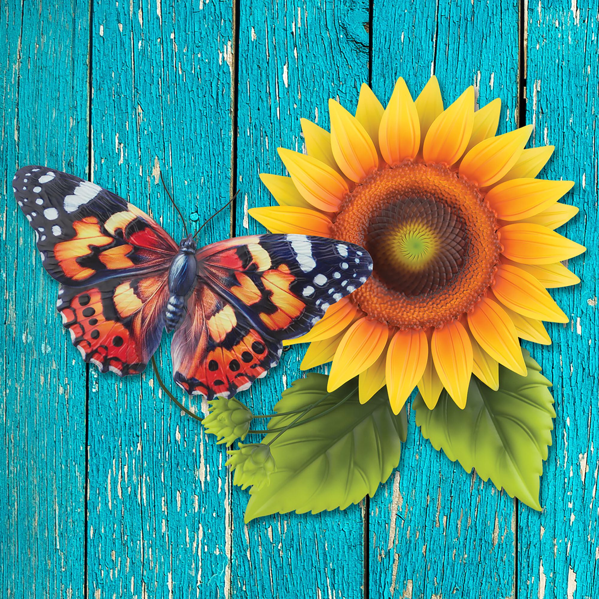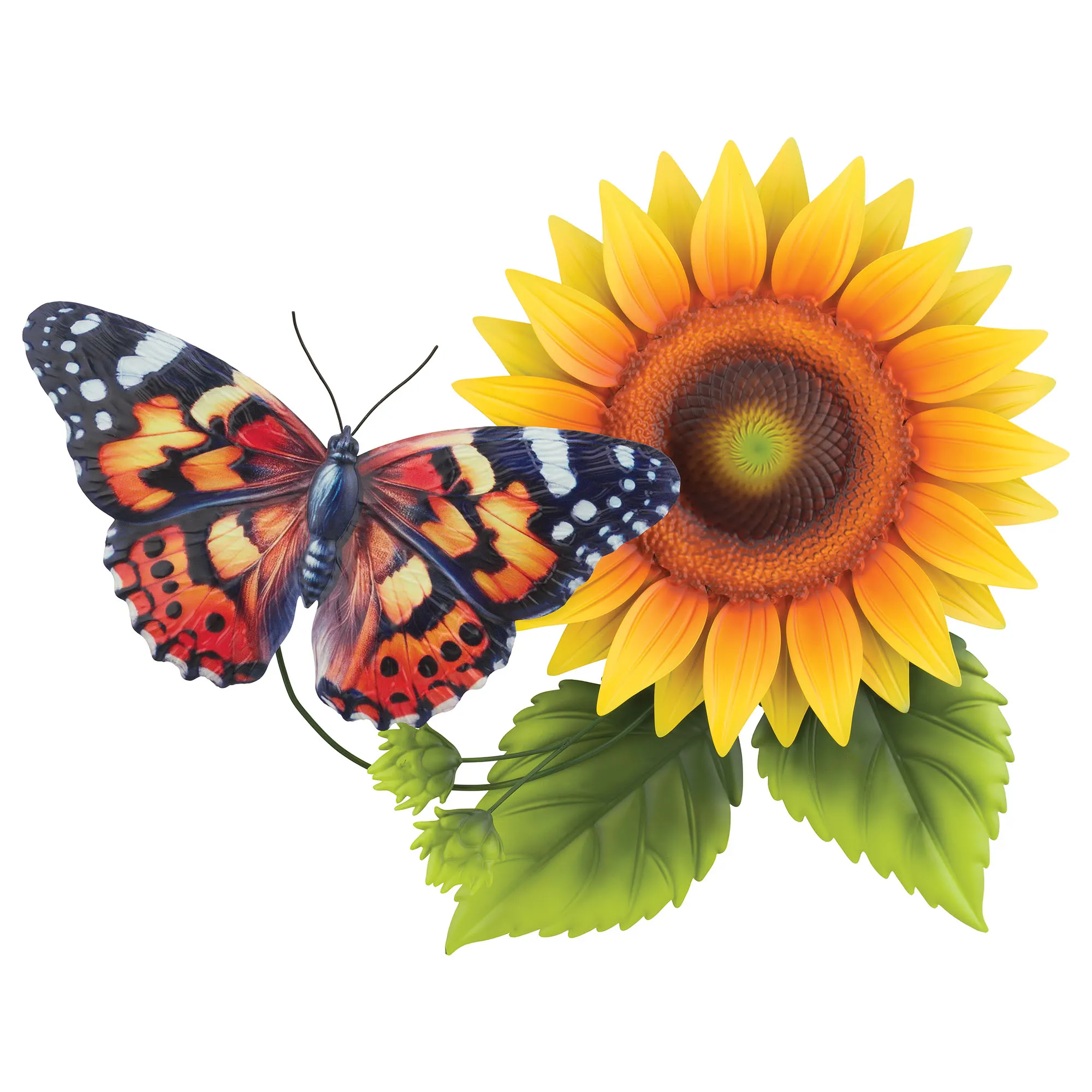Butterfly Summer Sunflower Indoor Outdoor Metal Wall Art