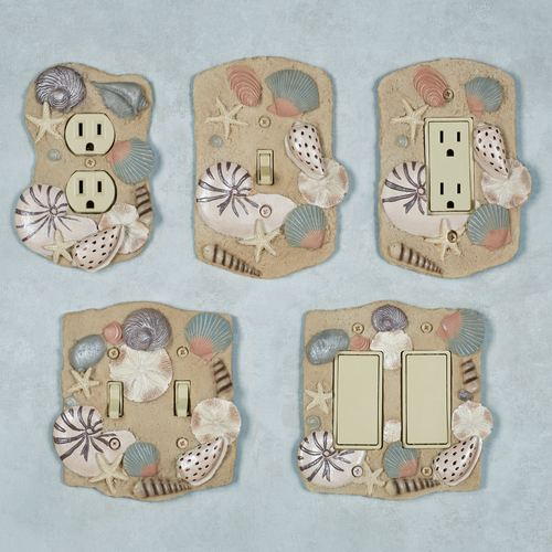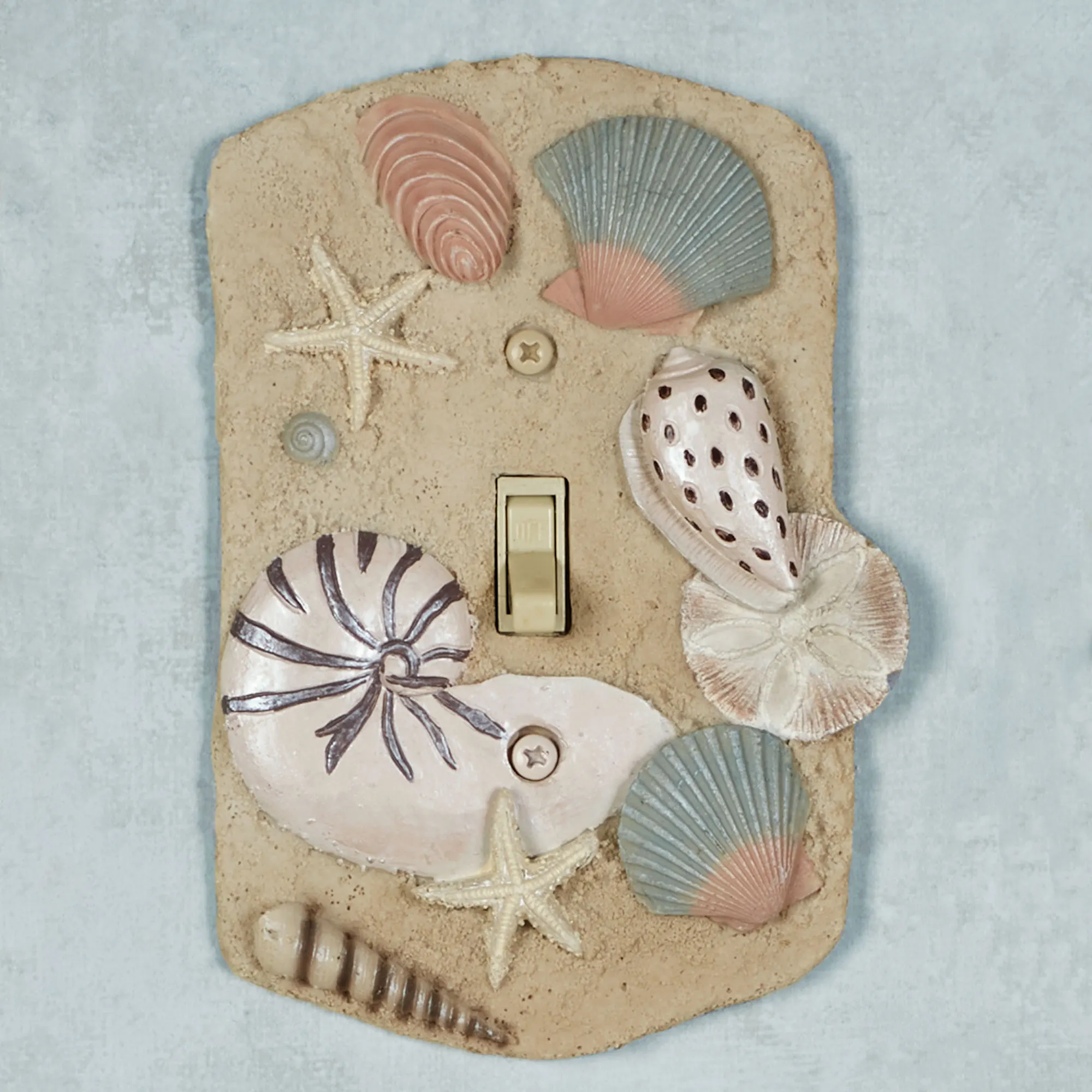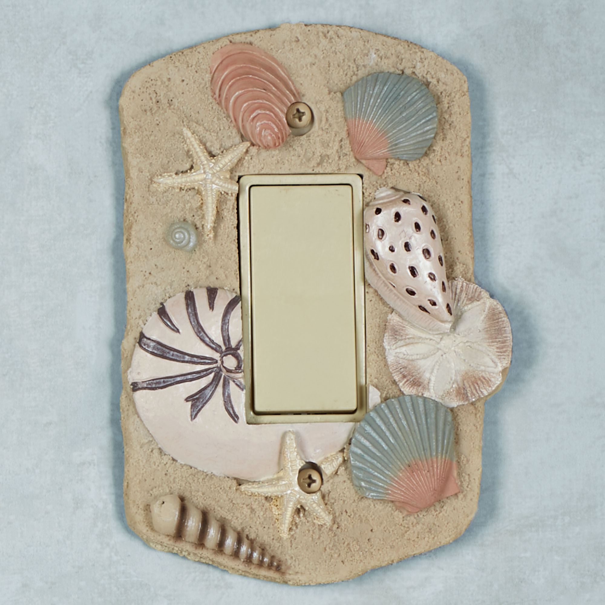 Found By the Sea, these beach treasures decorate with coastal brilliance. The handpainted resin Switchplates feature a variety of realistically detailed shells and starfish. The sand background has pastel-colored shells. Choose Single Switch, 4"Wx6"H; Double Switch, 5.25"Wx5.5"H; Single Outlet, 4"Wx5.5"H; Single Dimmer/Rocker Switch, 4.25"Wx6"H; or Double Dimmer/Rocker Switch, 5.25"Wx5.5"H. Do not over-tighten the screws. Due to the thickness of the design, these plates may not be able to support large adapters and chargers or nightlights.