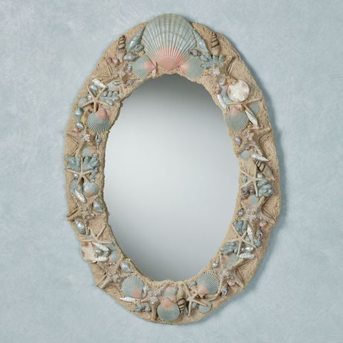 By the Sea Sand Coastal Seashell Oval Wall Mirror