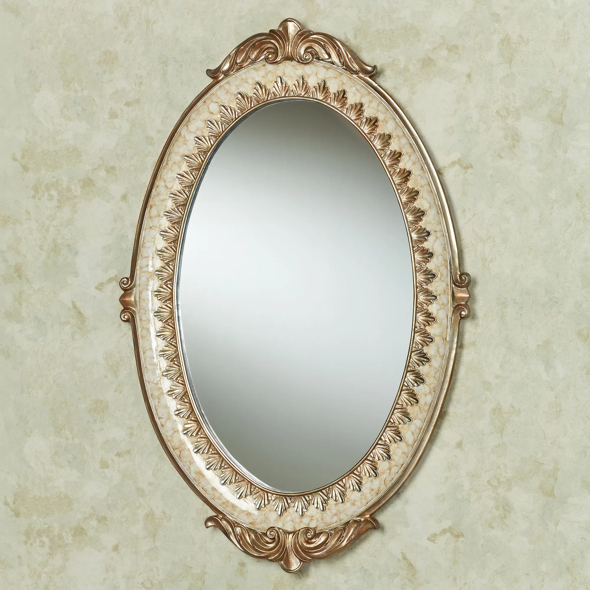 Cambria Ivory and Beige Traditional Oval Wall Mirror