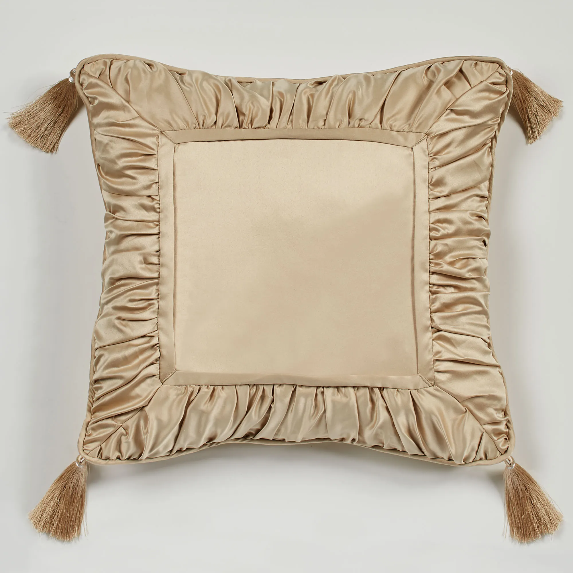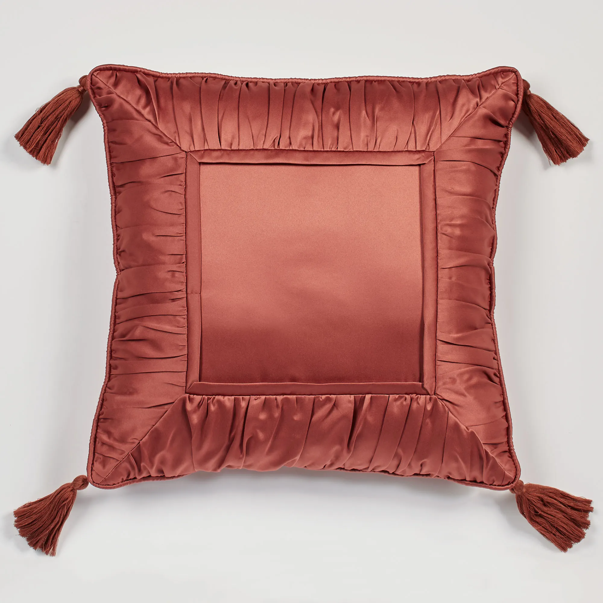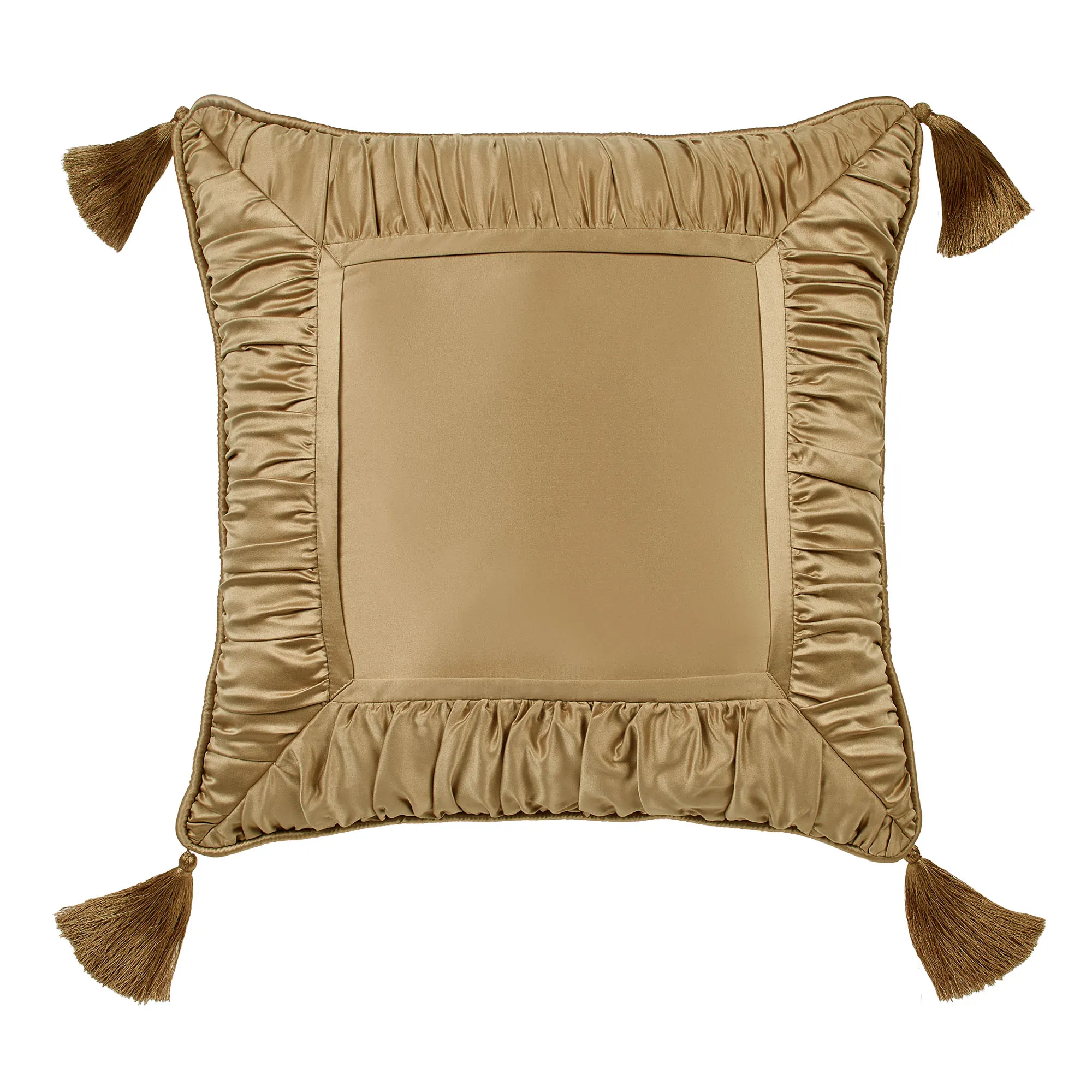 I ordered the pillow in the deep red and had my initial embroidered in gold. There was a problem with one of the tassels on the pillow. The knot became loose and the threads began to fall off. Touch of Class customer service went above and beyond my expectations. They sent me a return slip with all postage paid. I received a replacement and have enjoyed my pillow since then. It looks beautiful on my bed and makes my rest time an absolute treat. The pillow is soft and comfortable.