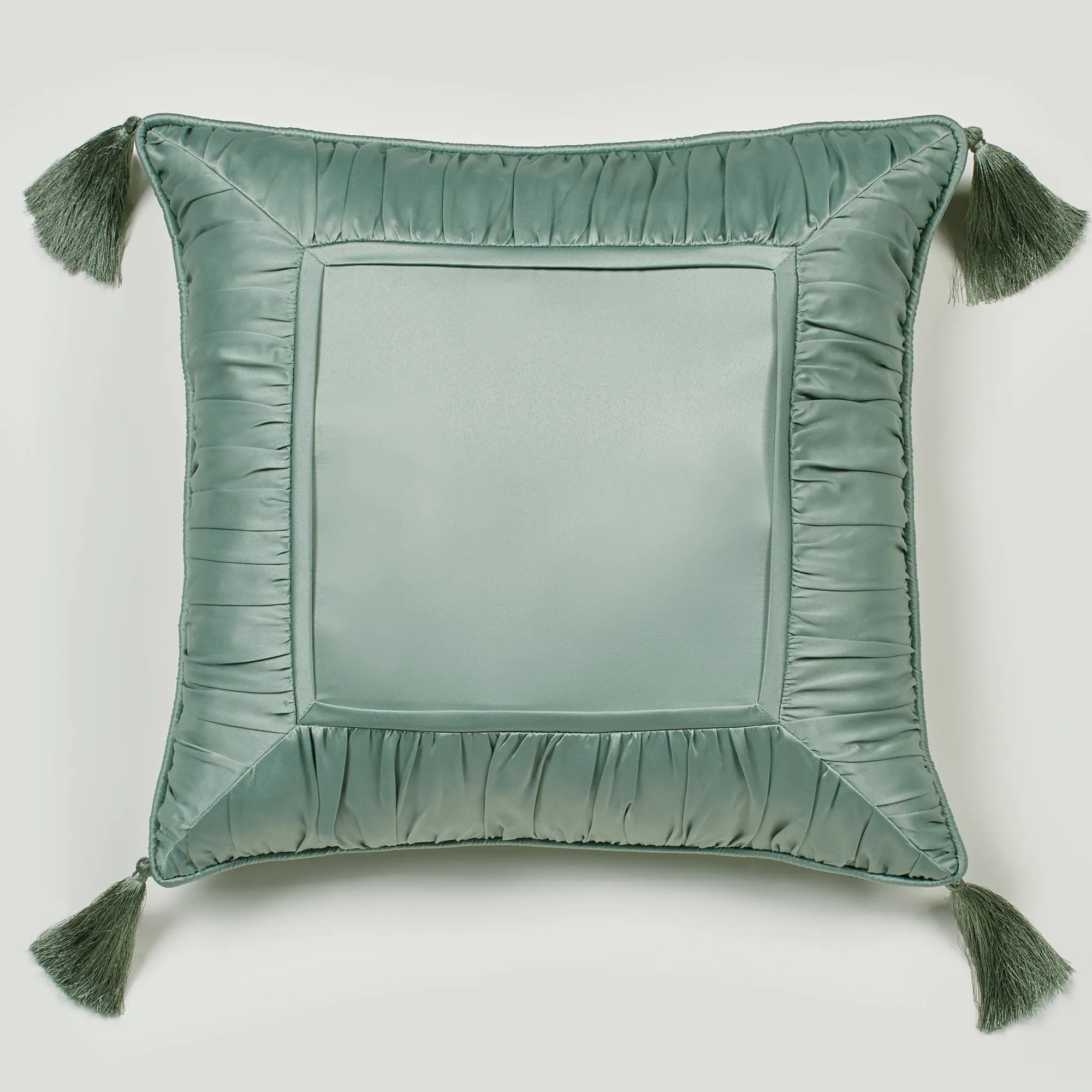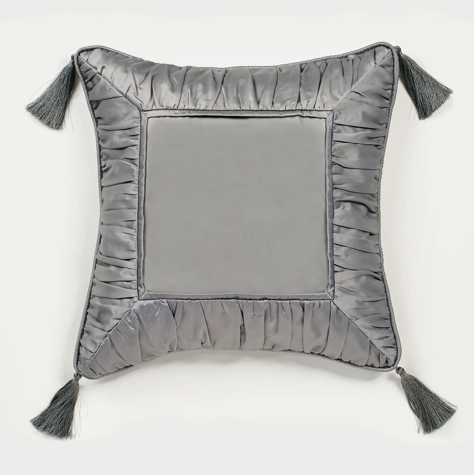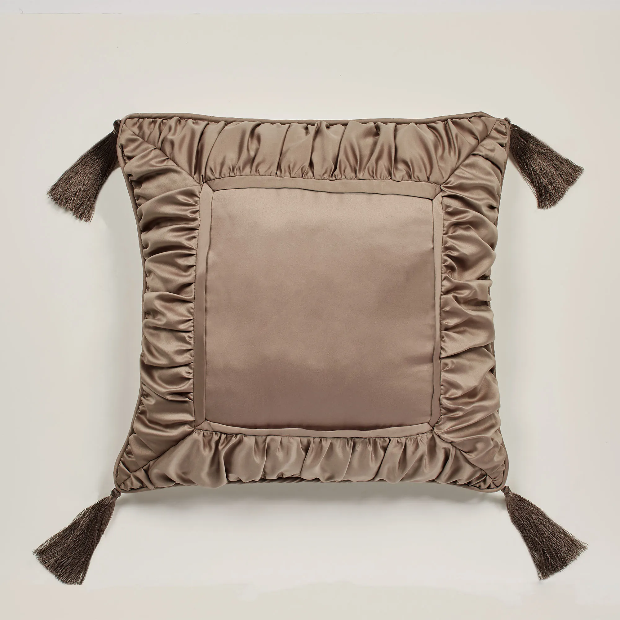 I ordered the pillow in the deep red and had my initial embroidered in gold. There was a problem with one of the tassels on the pillow. The knot became loose and the threads began to fall off. Touch of Class customer service went above and beyond my expectations. They sent me a return slip with all postage paid. I received a replacement and have enjoyed my pillow since then. It looks beautiful on my bed and makes my rest time an absolute treat. The pillow is soft and comfortable.