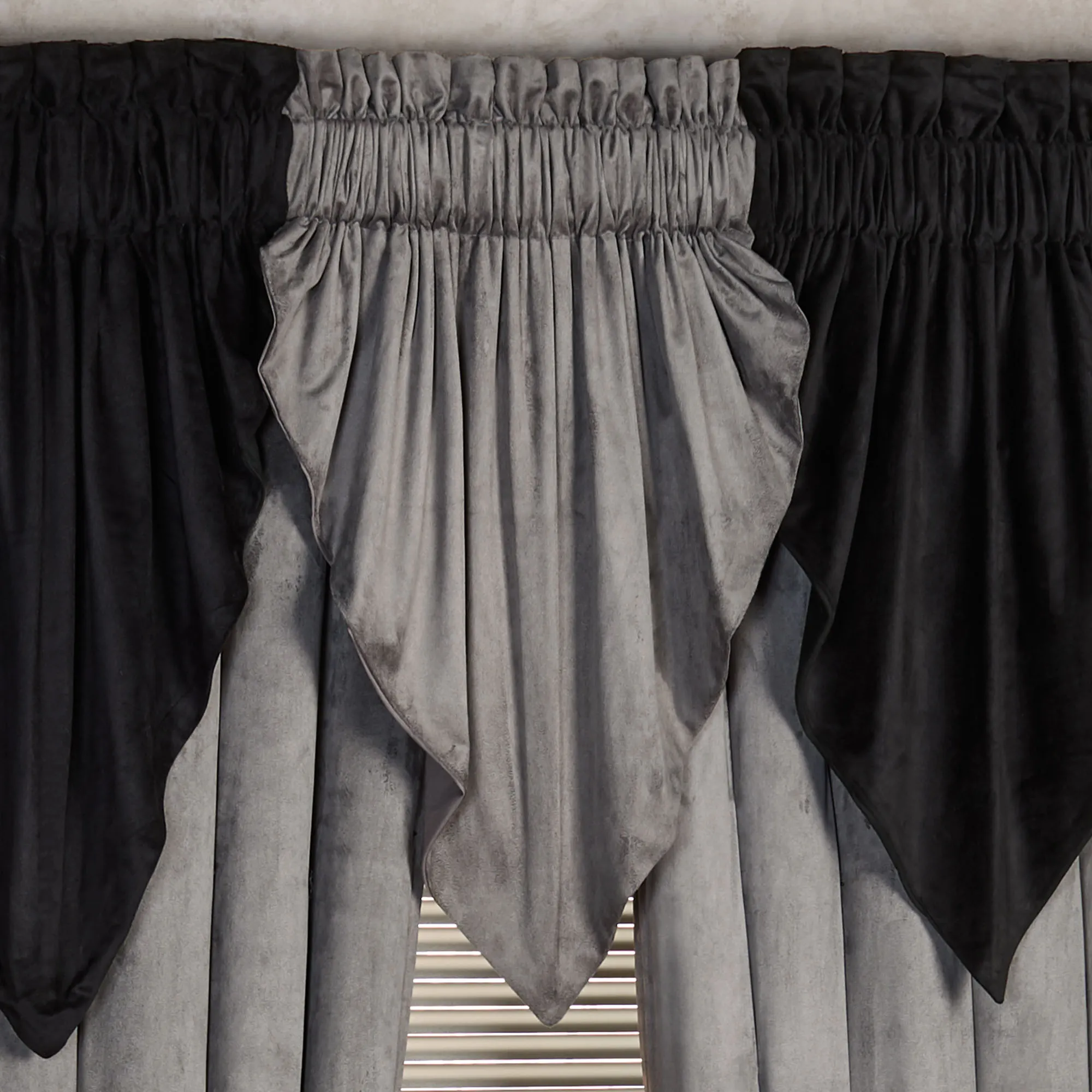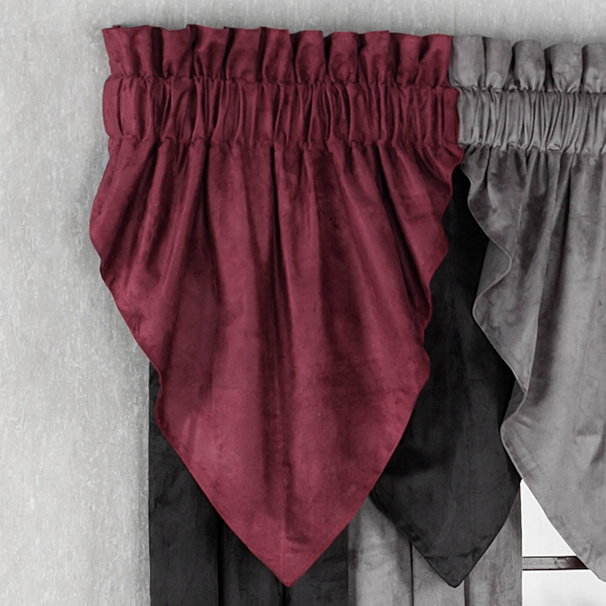 The fabric hides wrinkles and I was able to hang the valances without having to steam them. Two swags look good, but I probably should have ordered three for my 32 inch wide windows.