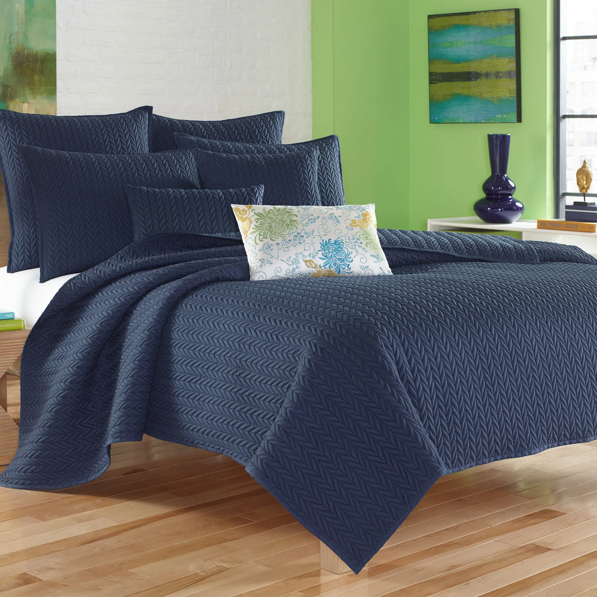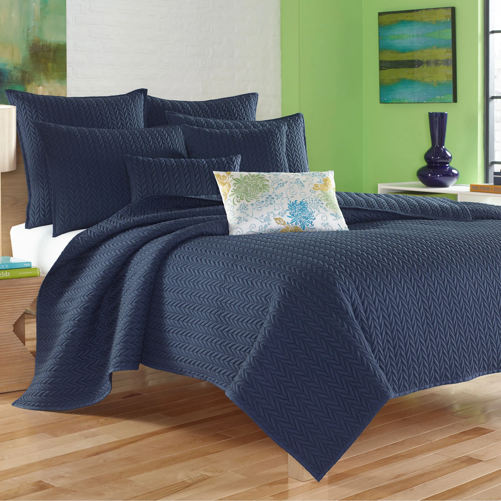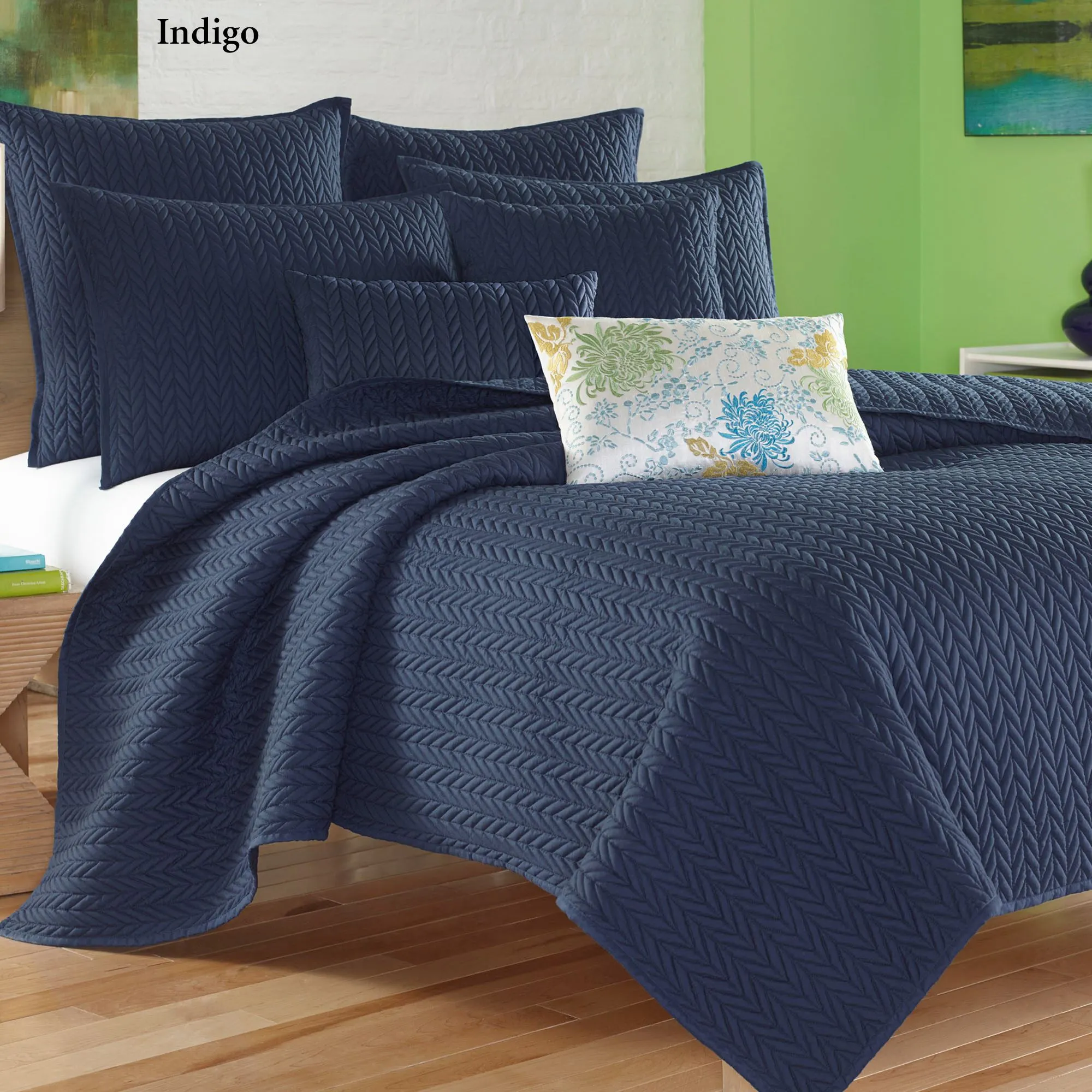 Quilted Coverlet features a solid color herringbone design on a polyester microfiber face with bound ends. Polyester microfiber backing is the same as the front. Specify coverlet size: Twin, Full/Queen, or King.