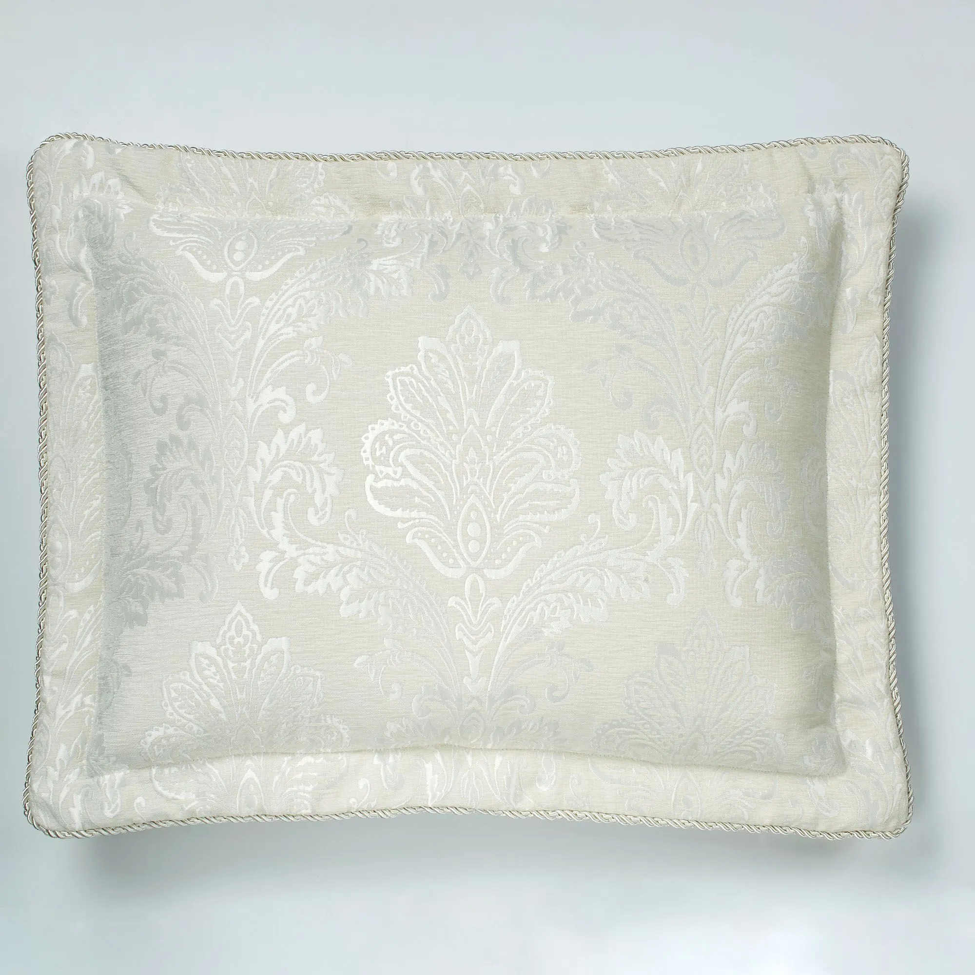The reversible, padded Sham has matte satin designs on jacquard-woven chenille, a corded flange, and a zipper closure; sham has a solid color-matched backing. Choose Standard or King.