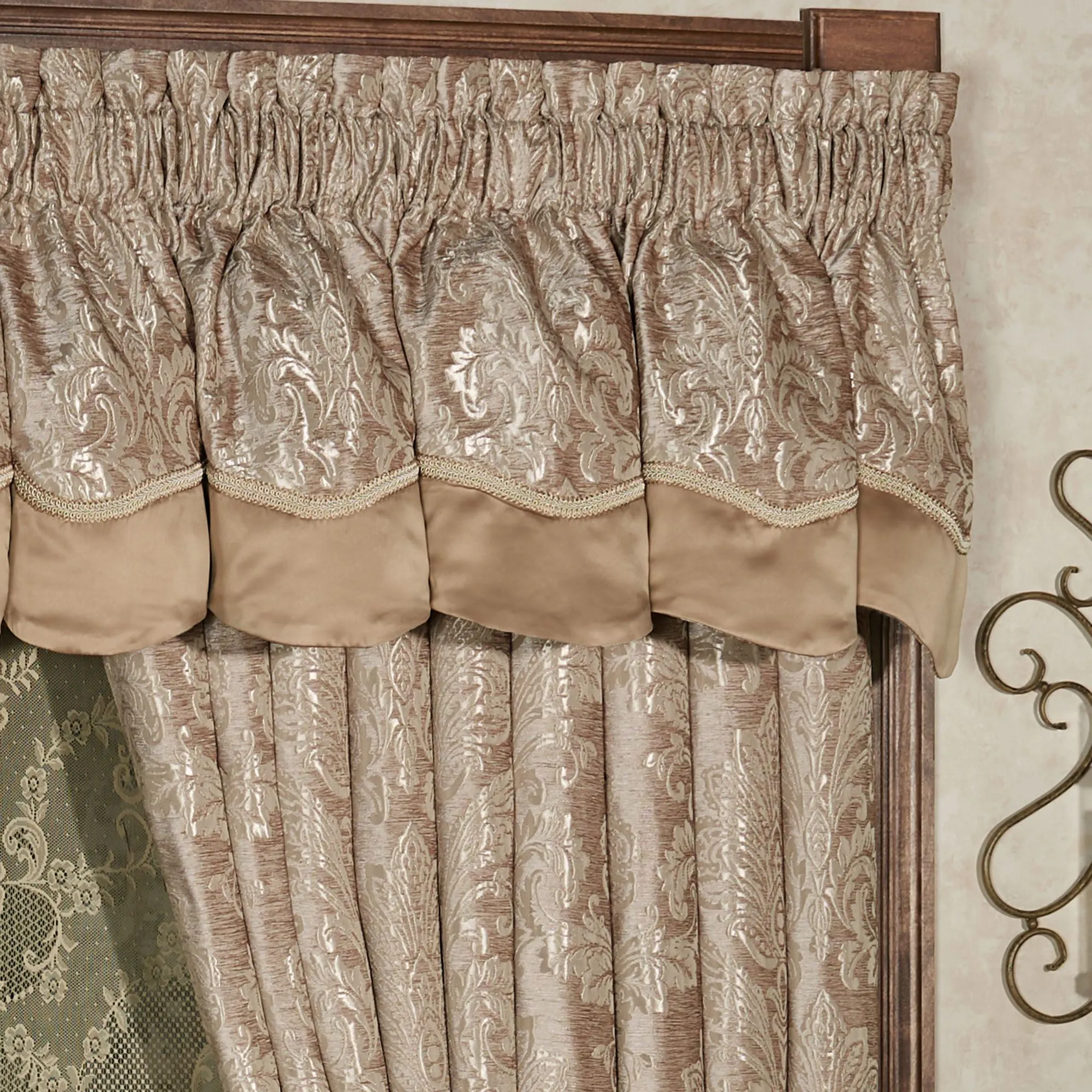 Camelot Almond Damask Scalloped Valance Window Treatment