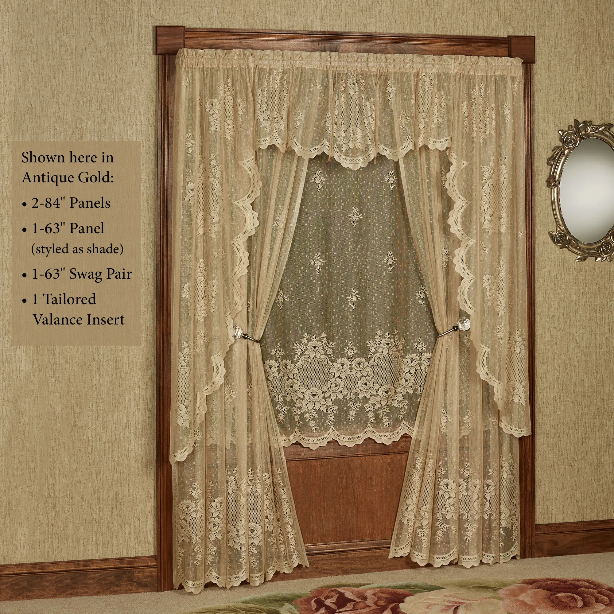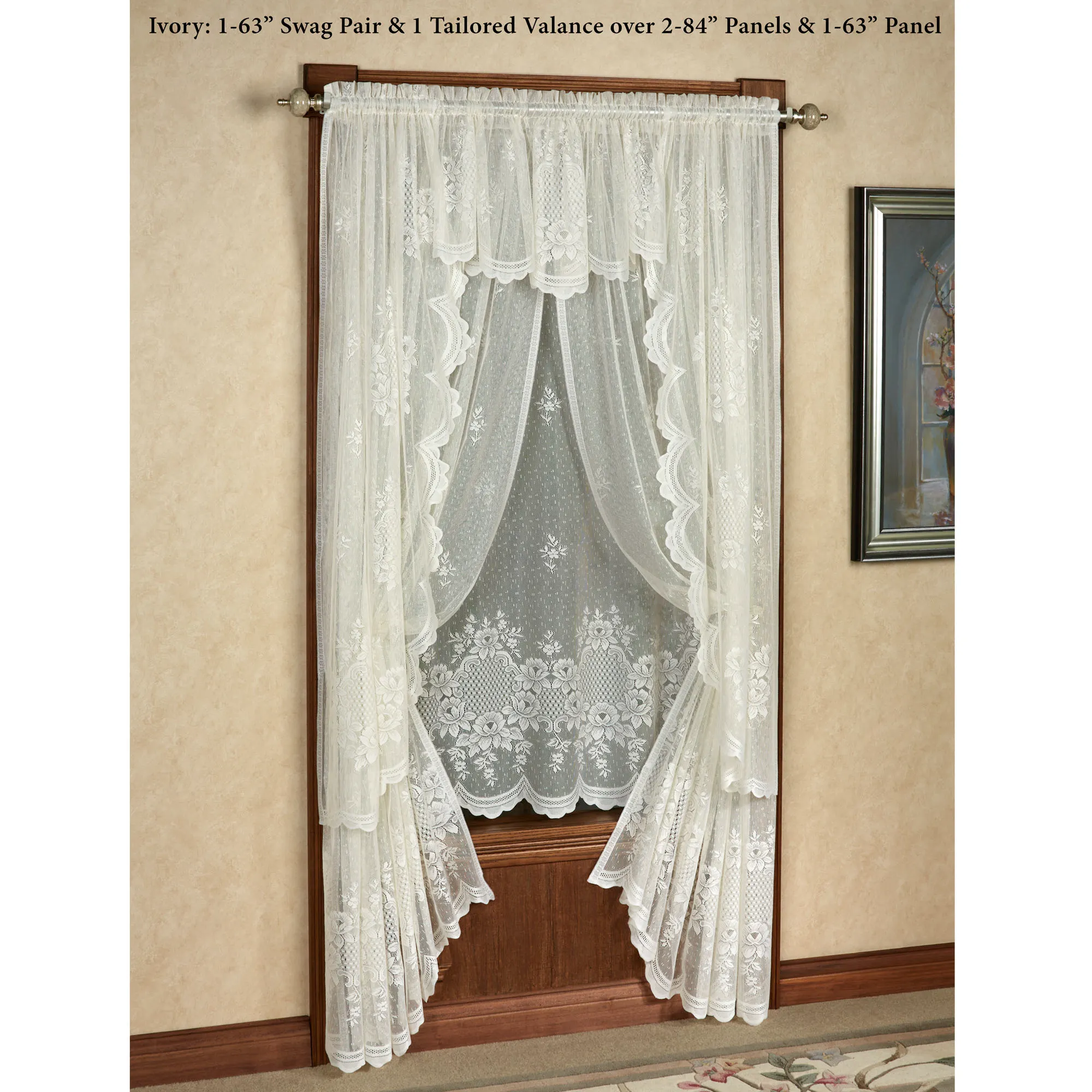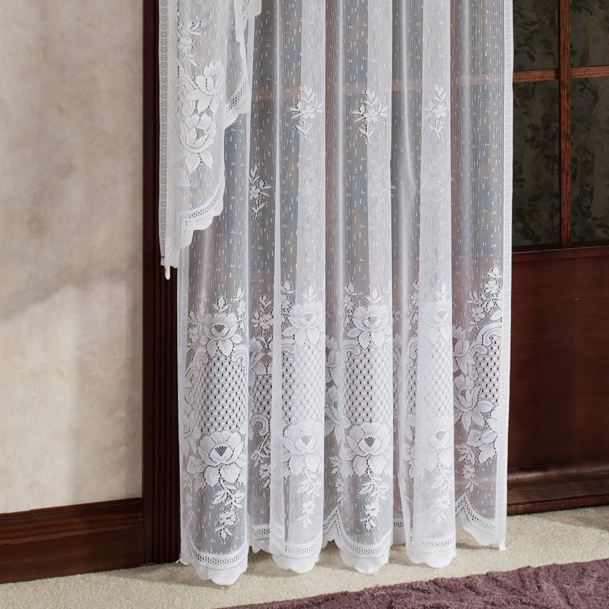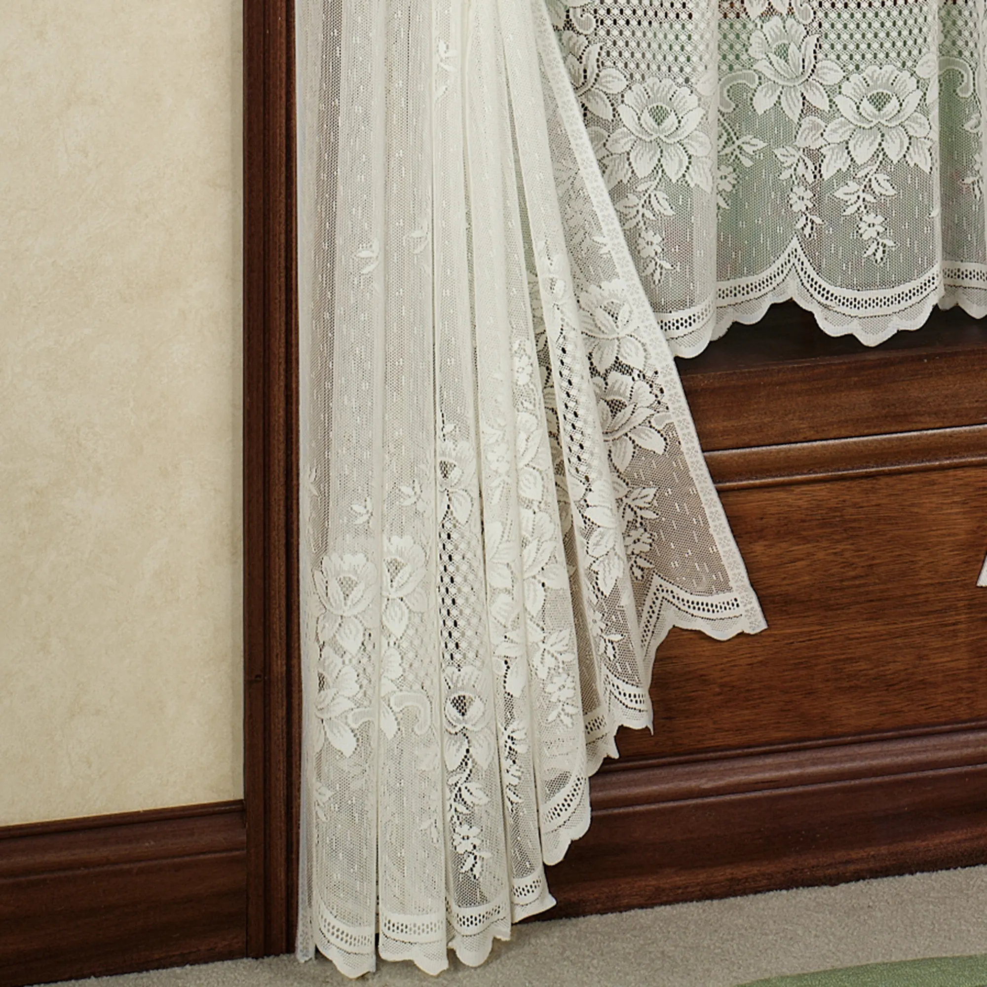 The Cameo Rose Lace Window Treatment is 100% polyester. Imported.
