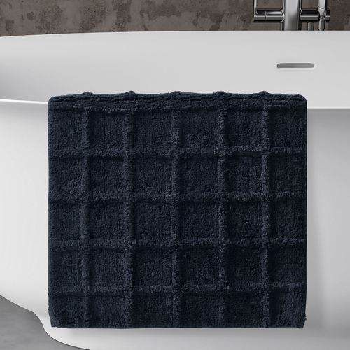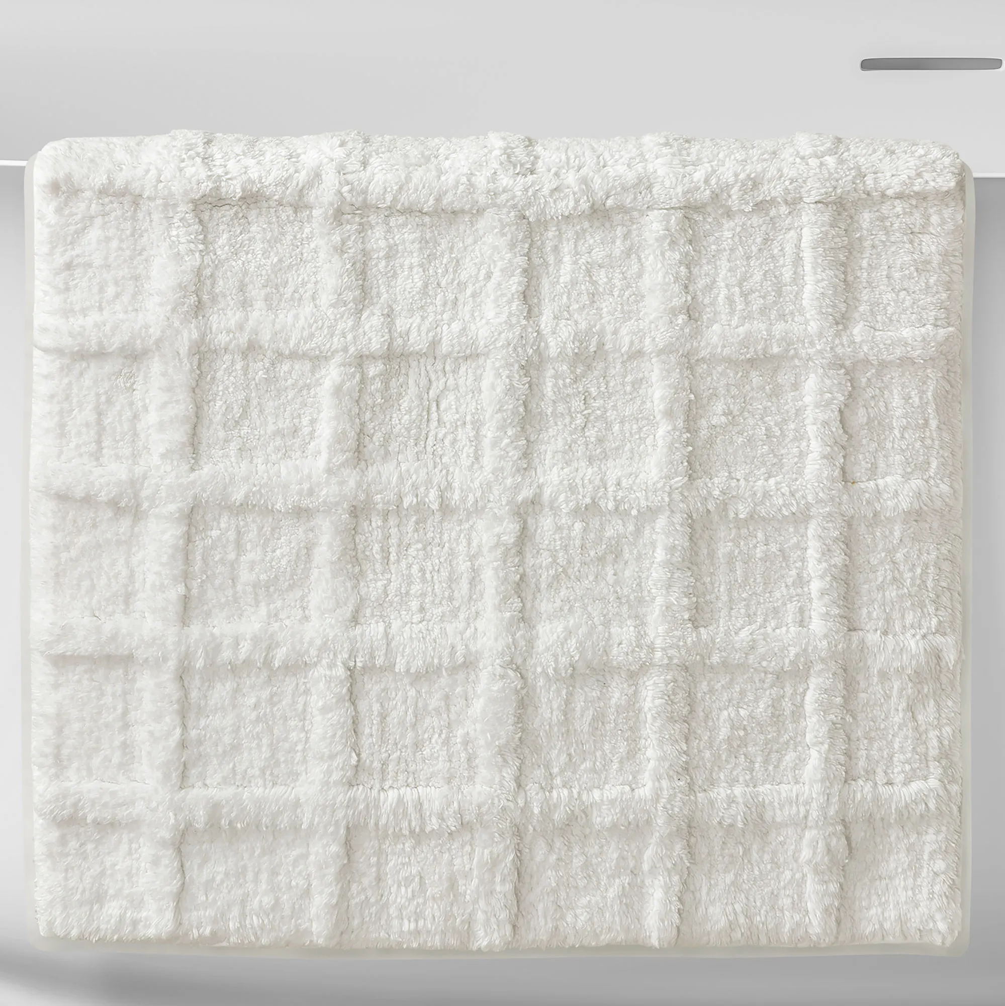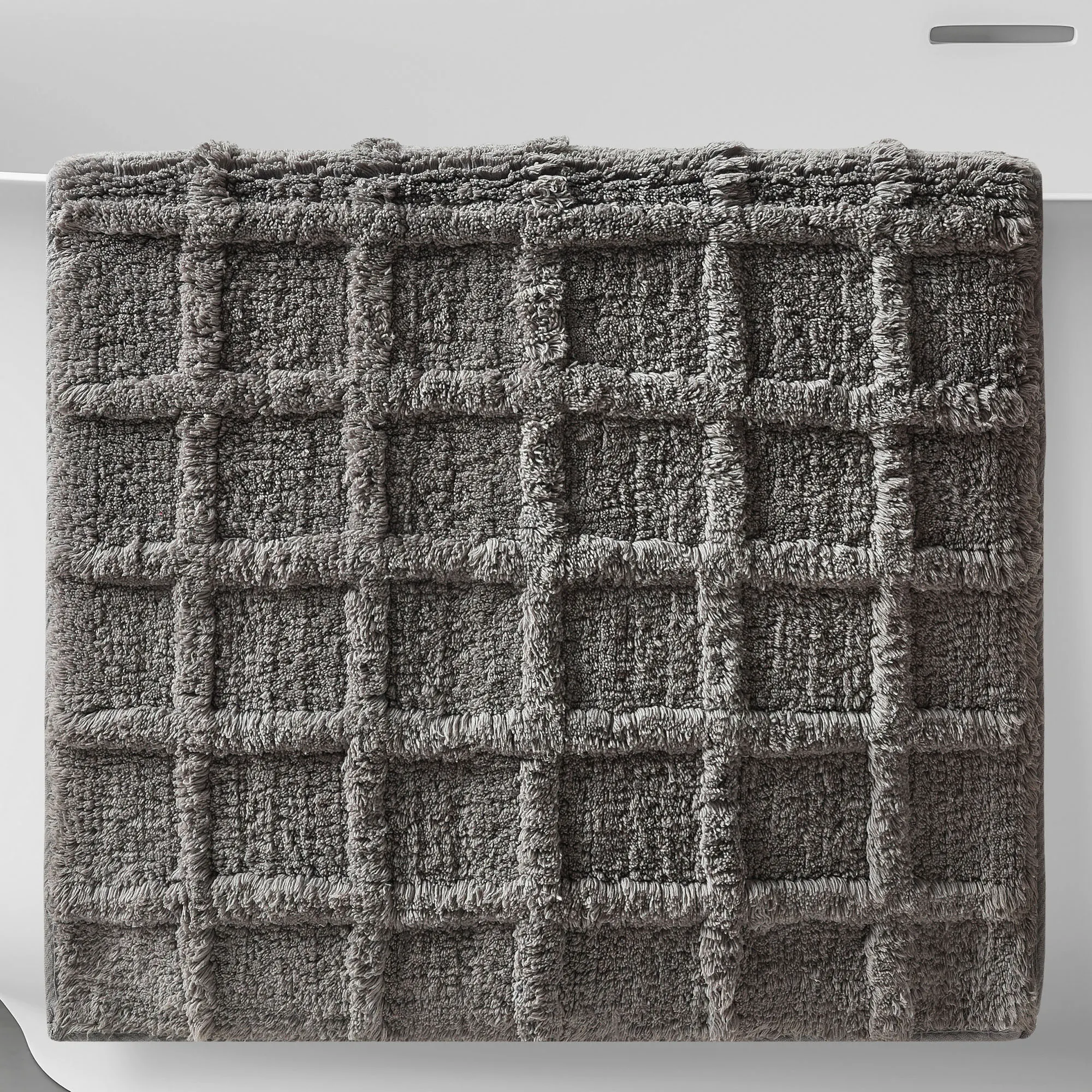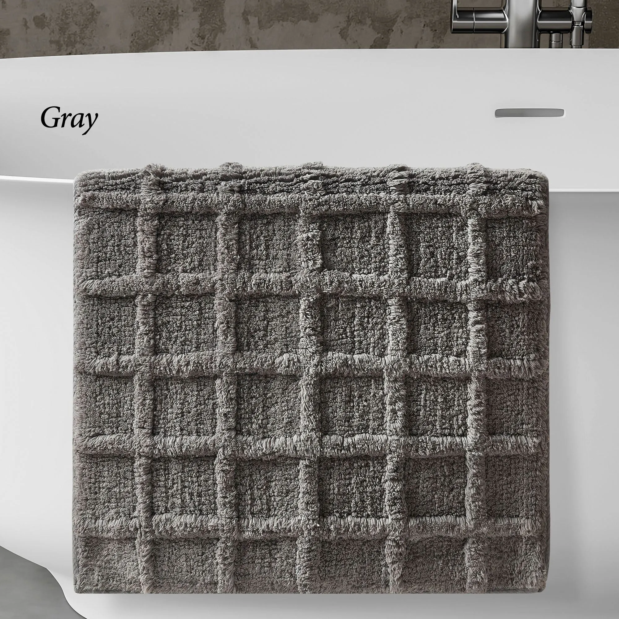 Decorate with the unique grid on the Cameron Bath Rug. This contemporary, solid color cotton rug, by Oscar Oliver New York City, has over-tufted panes and is highly absorbent. The backing is anti-skid spray latex. Bath rug, .5" thick, measures 30"x20". Machine washable. Imported.