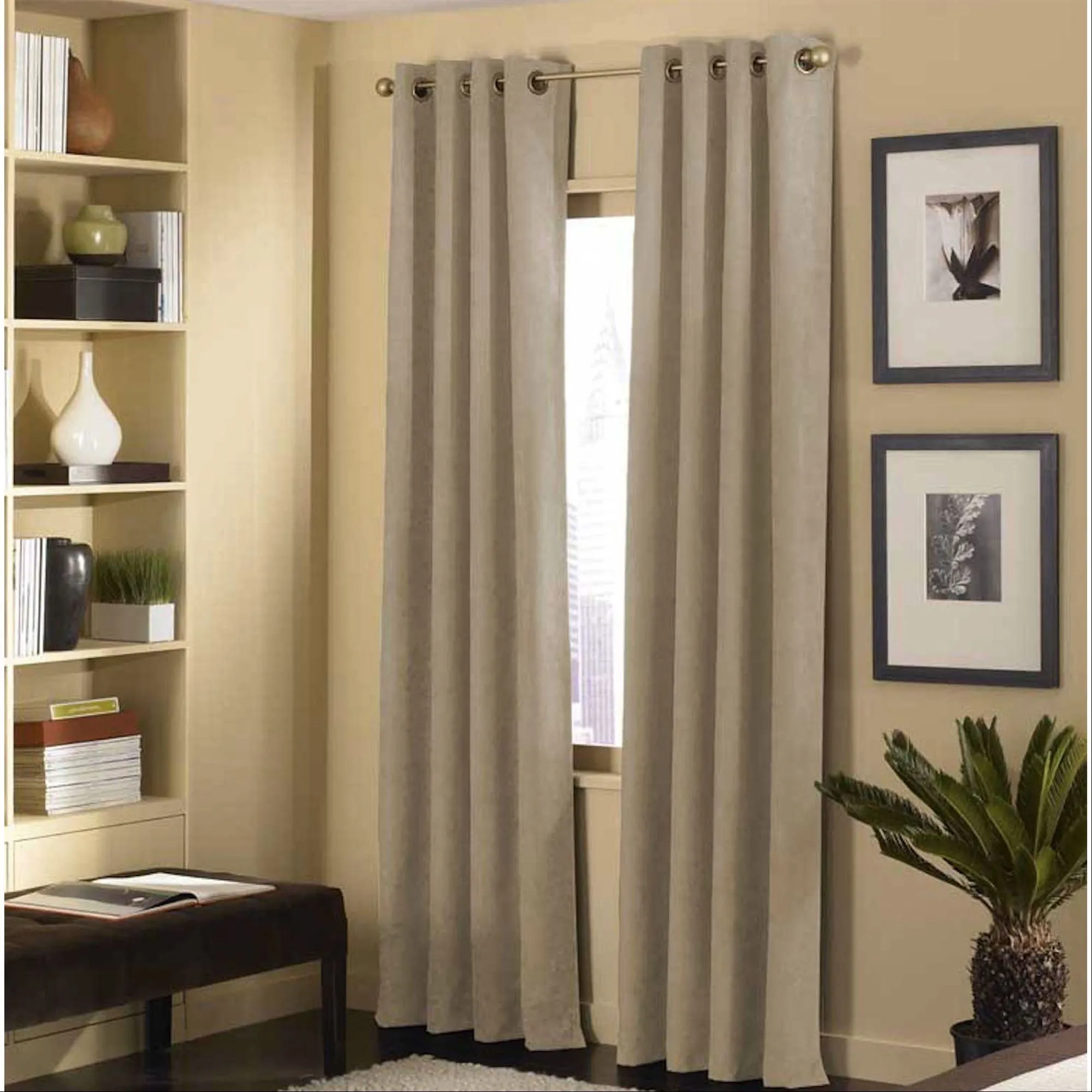 Cameron Grommet Curtain Panels are polyester faux suede with metal grommets. Imported.