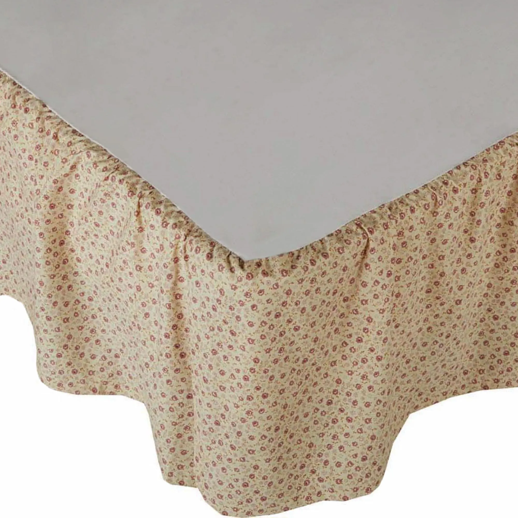 Bedskirt has printed florals on a straw background and gathered, split corners in the 16" drop. Choose Queen or King.