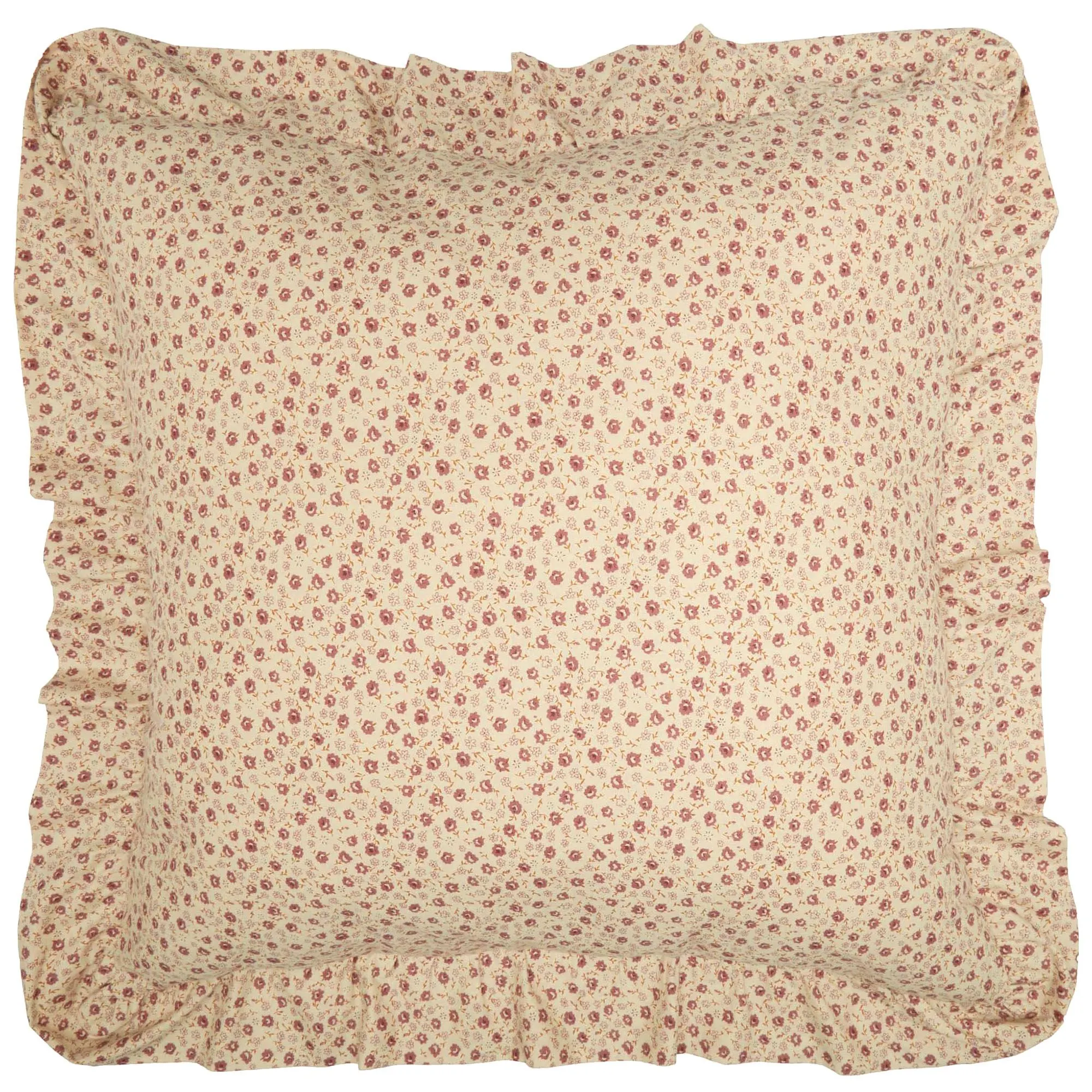 European Sham has a floral print and a ruffled flange; button closure.