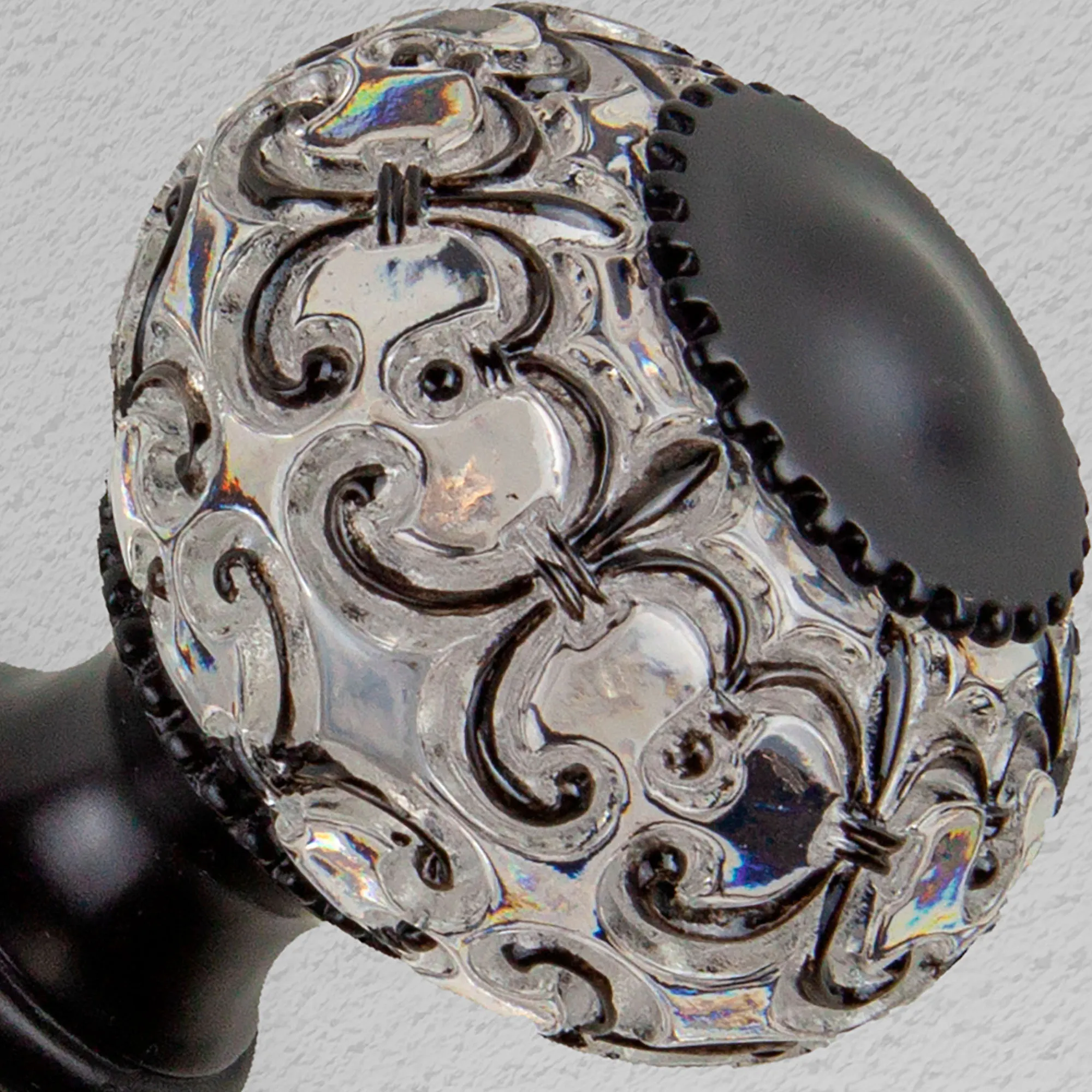 The Camina Rod and Finial Set is made of metal with resin finials.