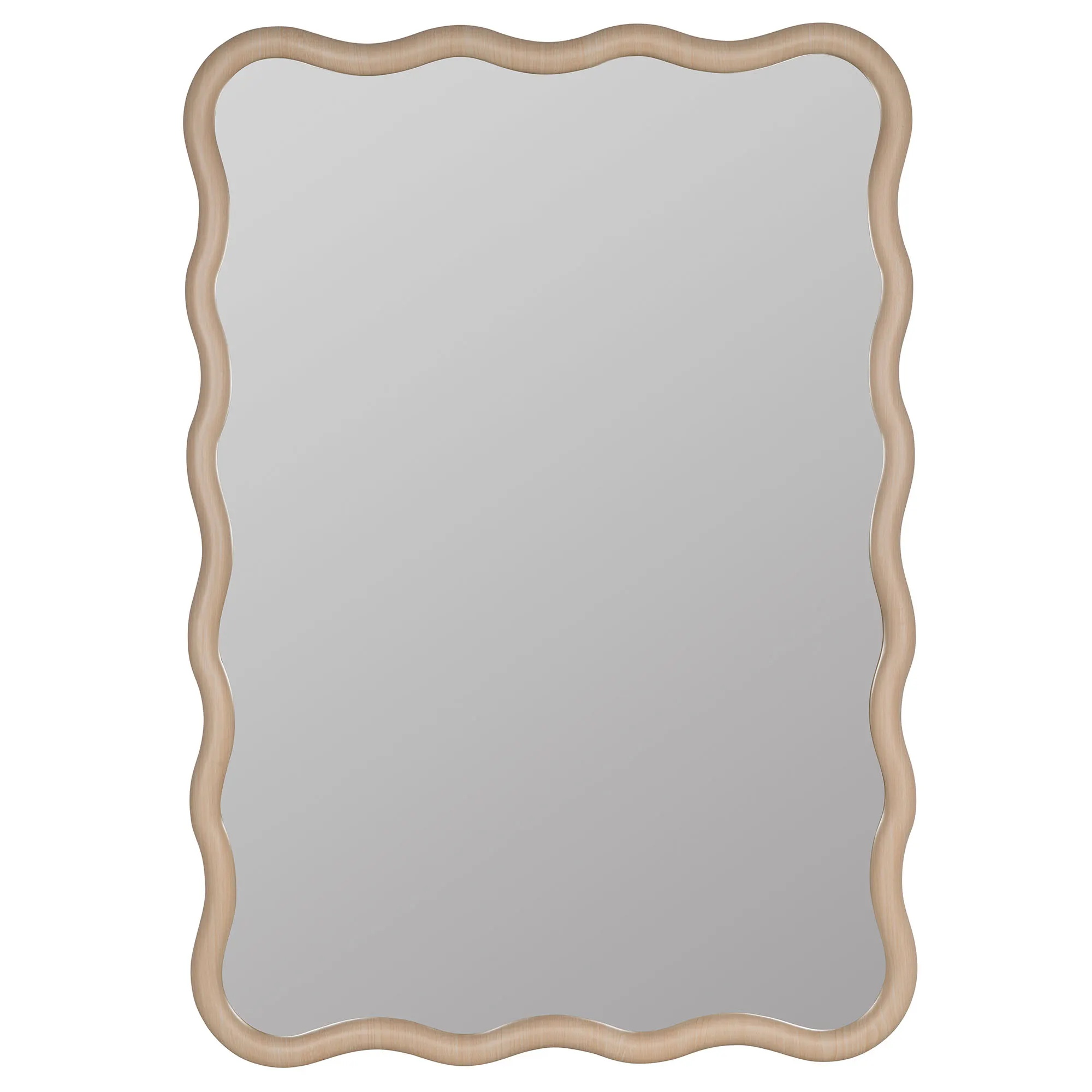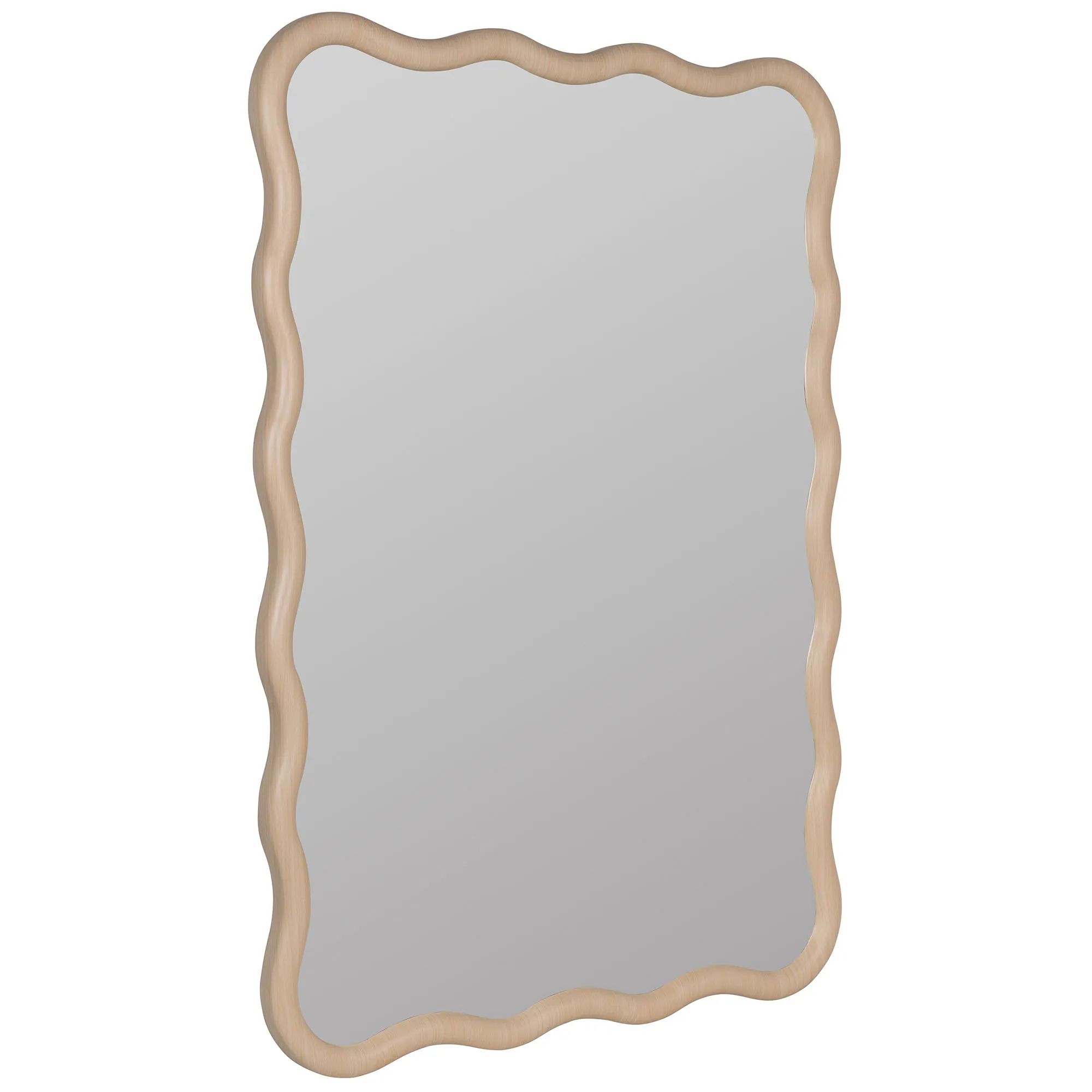 Reflect a love of whimsical charm with the Candance Wall Mirror. Finished in a natural hue, the wooden frame surrounds the glass mirror with scalloped waves. Center mirror is 26"x38". May hang vertically or horizontally. Overall, the wall mirror measures 28"Wx1.5"Dx40"H and weighs 25 lbs.