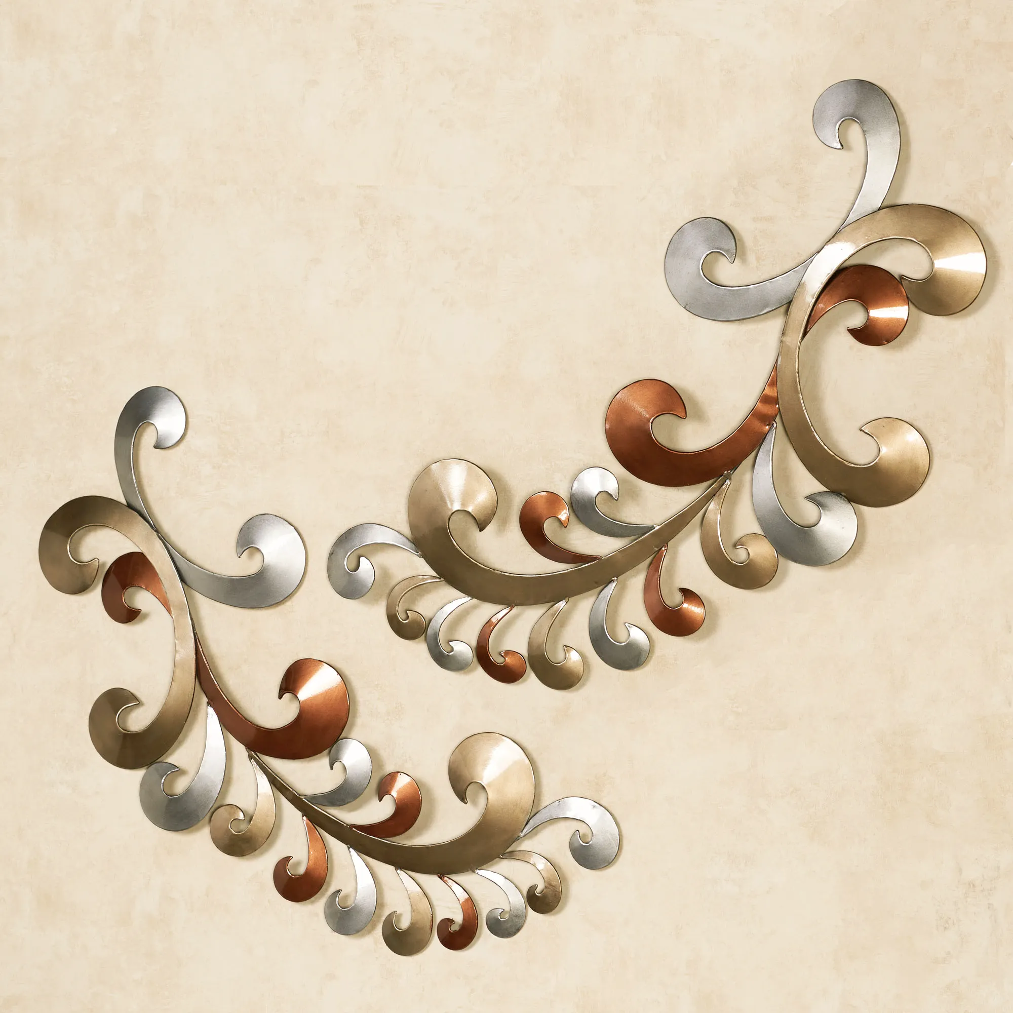 Metallic swirls join together to form feathered shapes within the Cantata Wall Art Set. Each metal swirl features a brilliant gold, silver, or bronze finish for a shining decorative accent. Each measures 27"Wx1"Dx16"H.