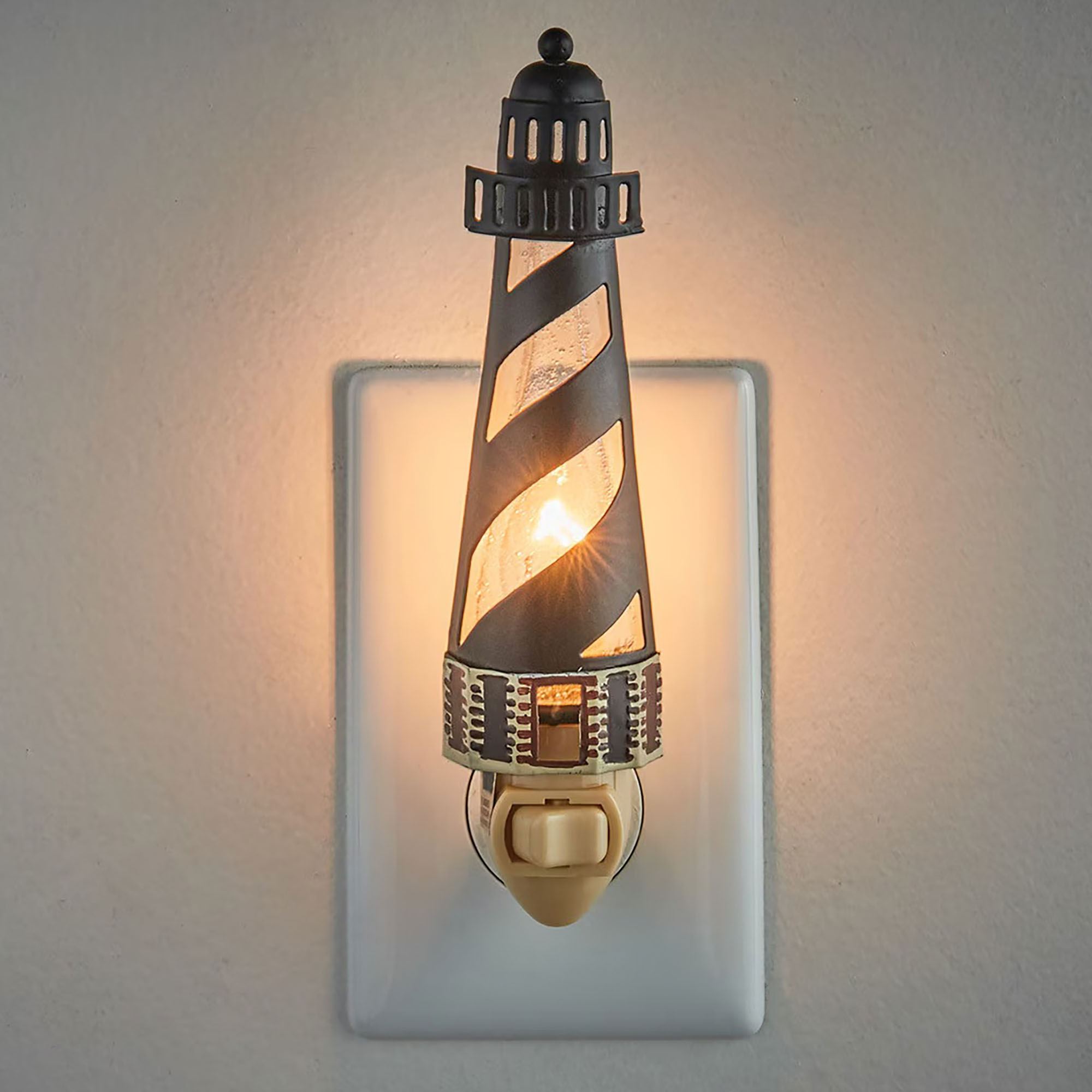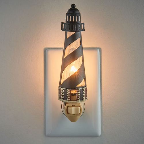 Allow the Cape Hatteras Nightlight to guide you through your home, just as the real lighthouse does along North Carolina's Outer Banks. Finished in matte black, the metal nightlight features curving black lines and bubbled, seeded clear glass that allows the light to shine through. UL listed. Includes a 5W nightlight bulb that operates from an on/off switch on the base. Overall, the lighthouse nightlight measures 1.75"Wx2.75"Dx5.25"H.