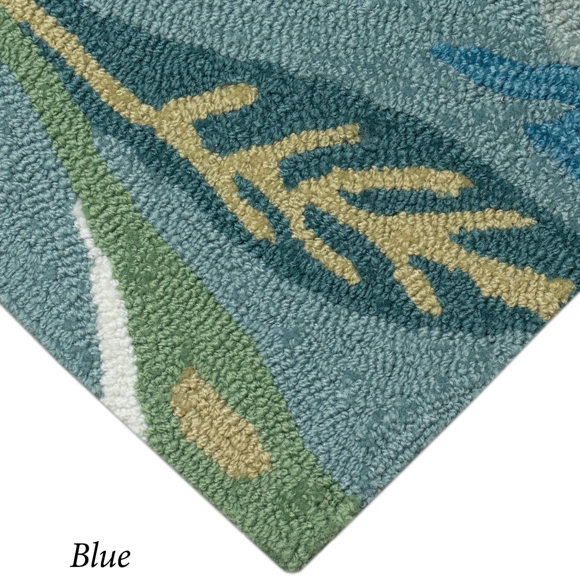 The Capri On Holiday Tropical Rug is polyester/acrylic backed in cloth-covered latex. Imported.