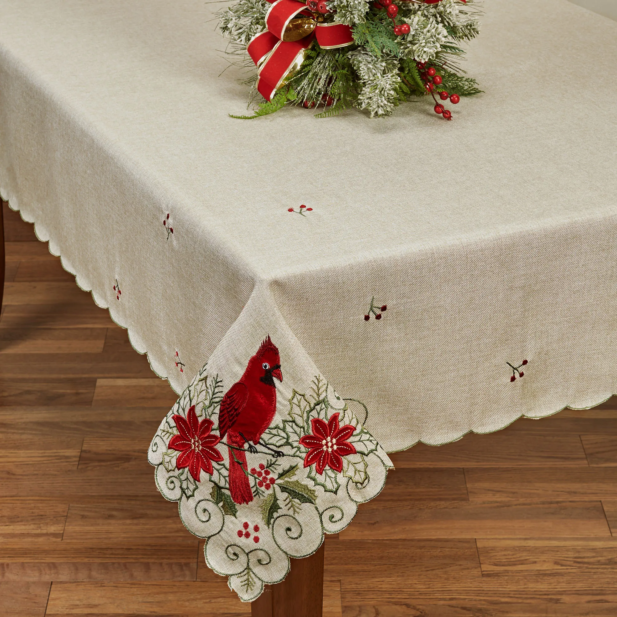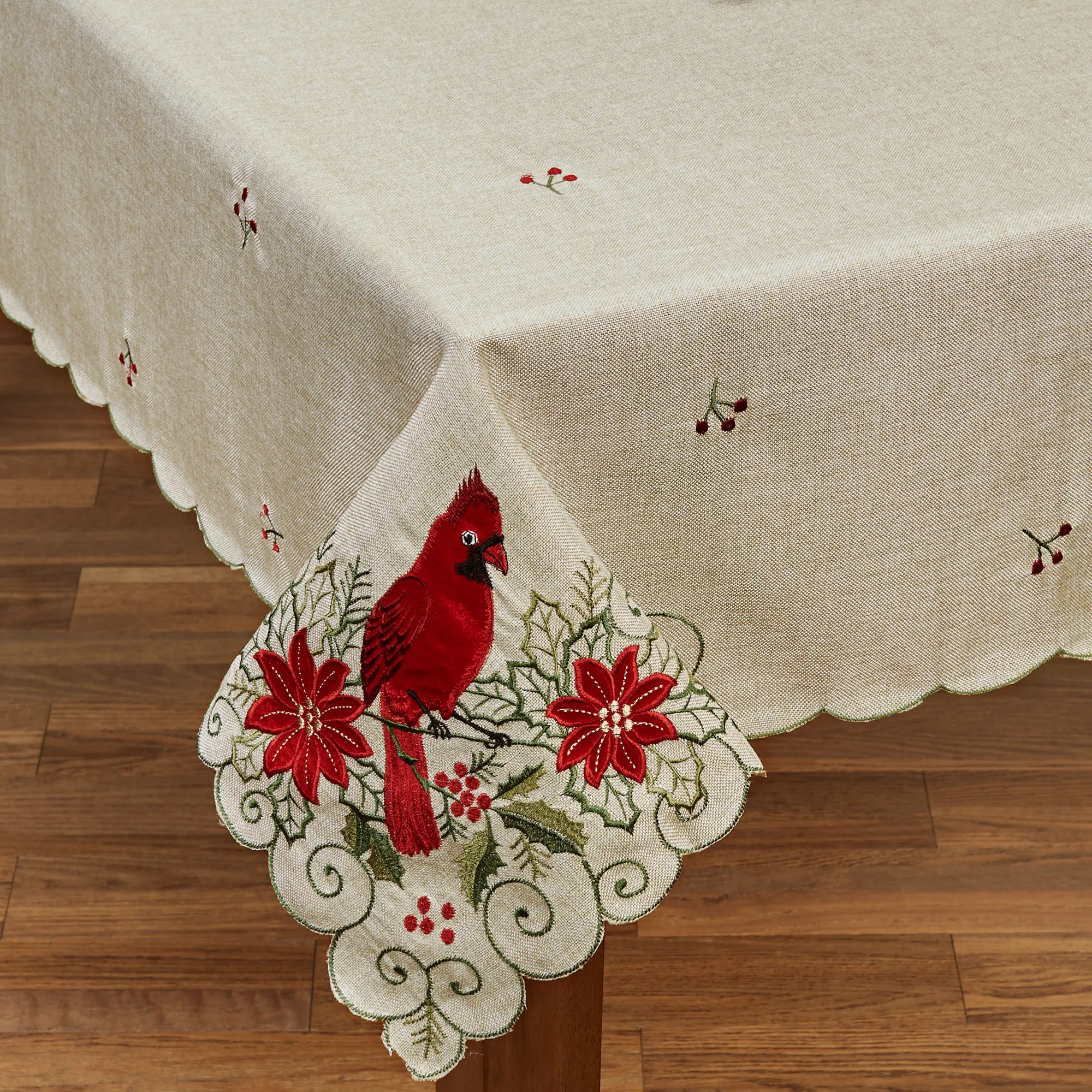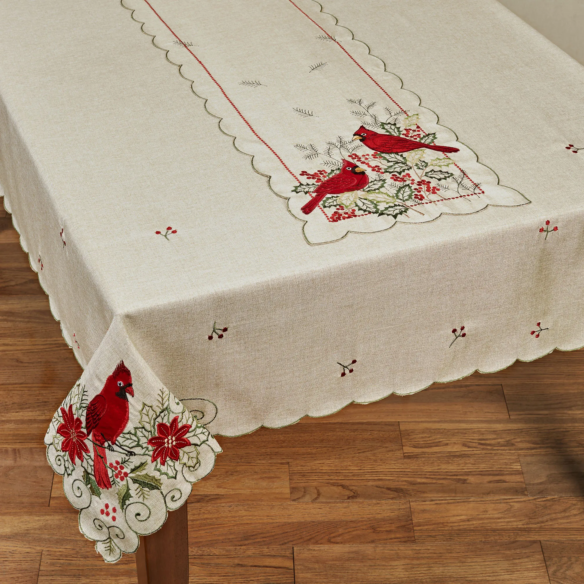 Cardinal Christmas Holiday Tablecloth and Table Linens