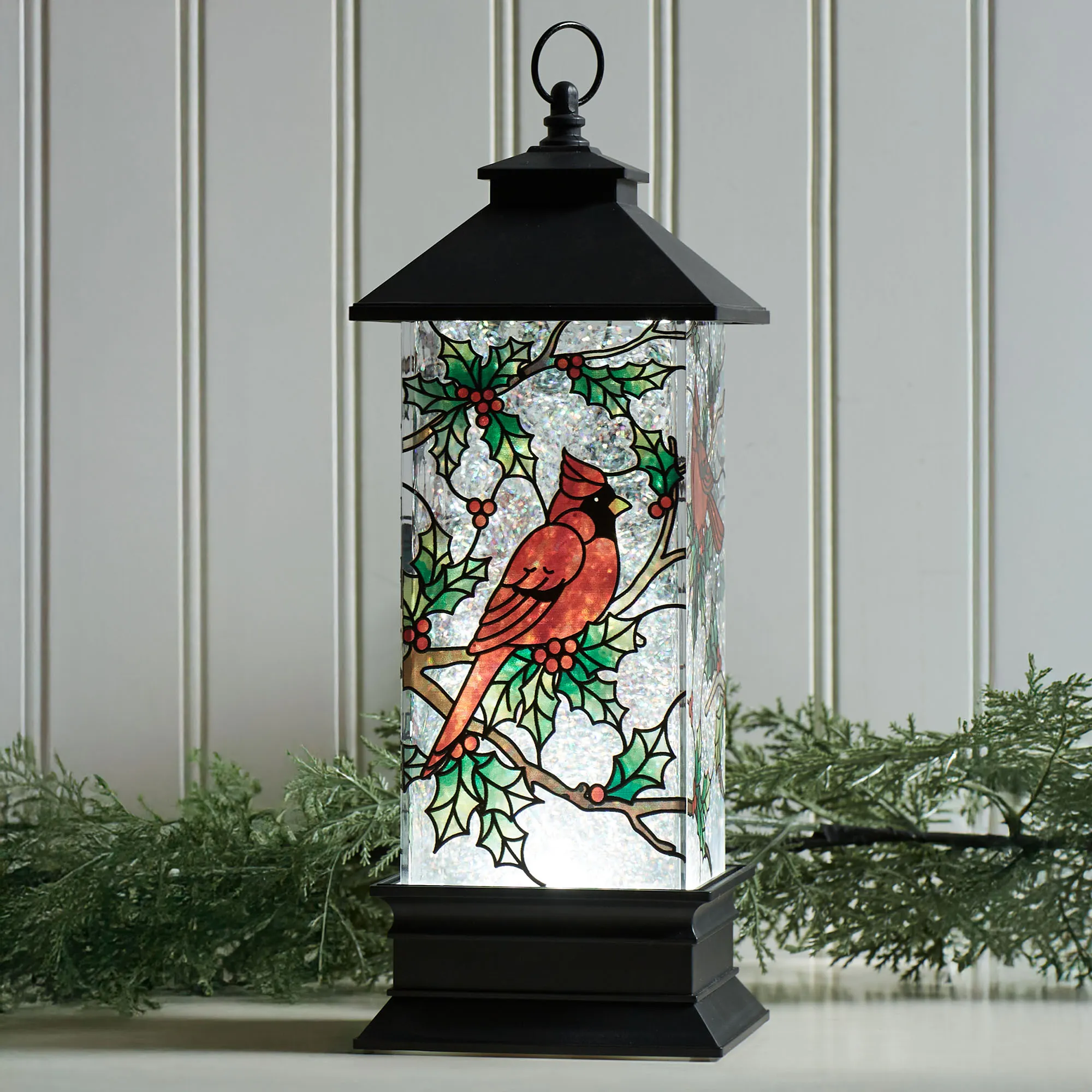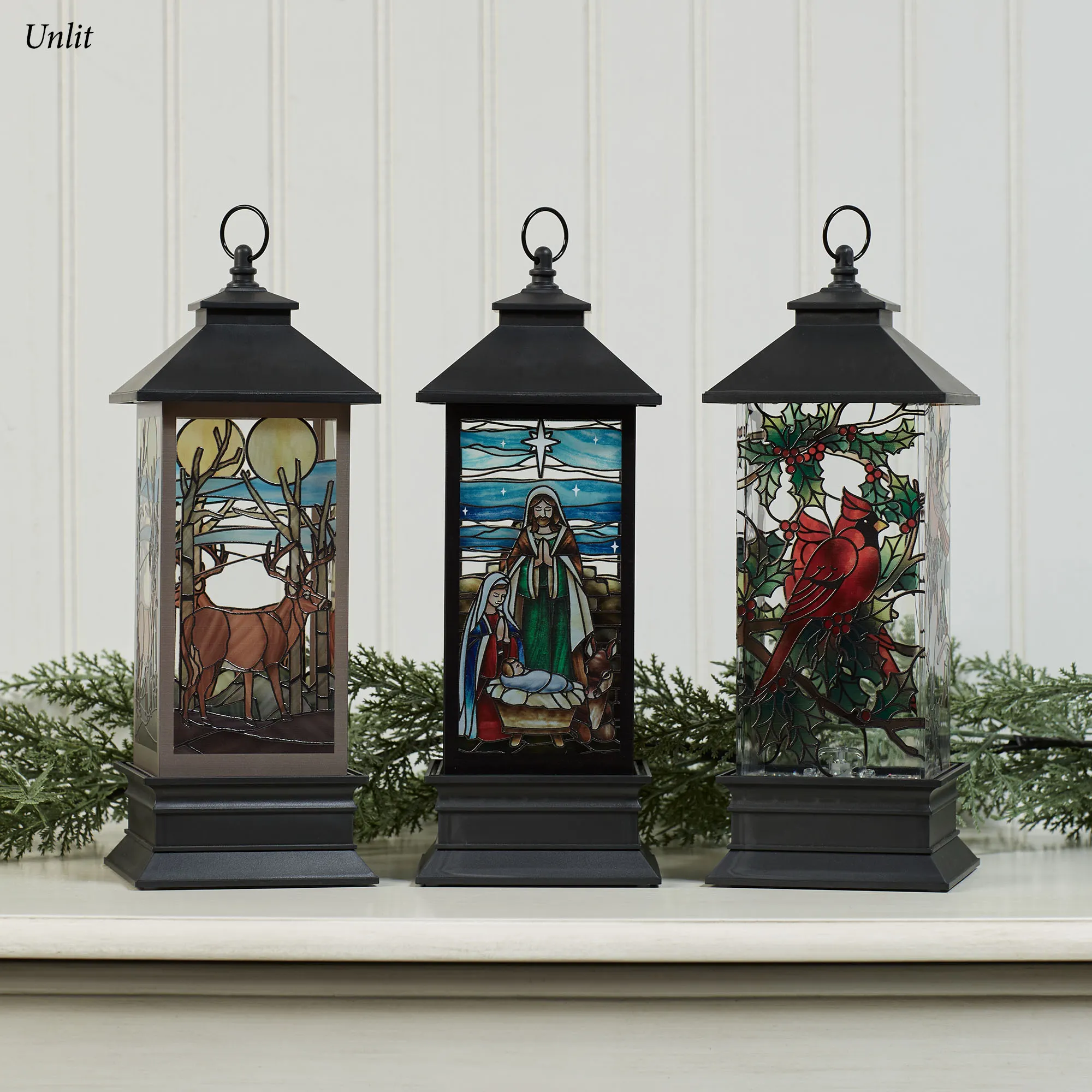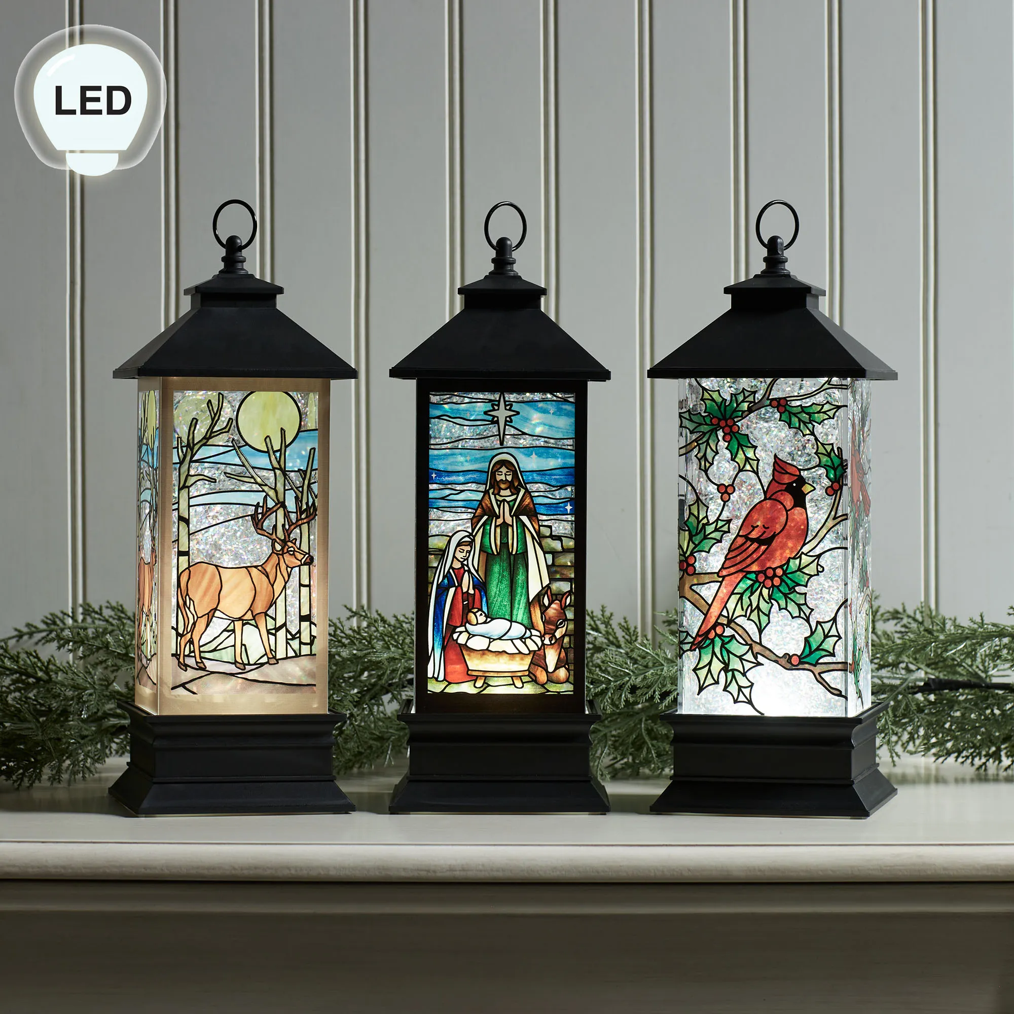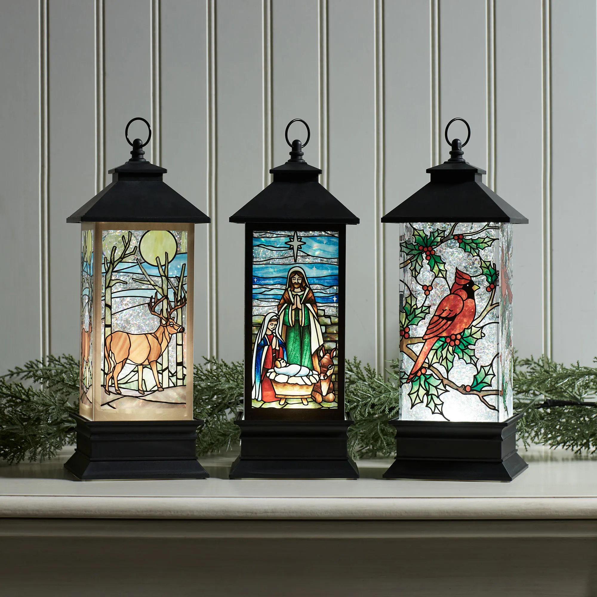 Shimmer Faux Stained Glass LED Lighted Christmas Holiday Lantern Glitter Globe