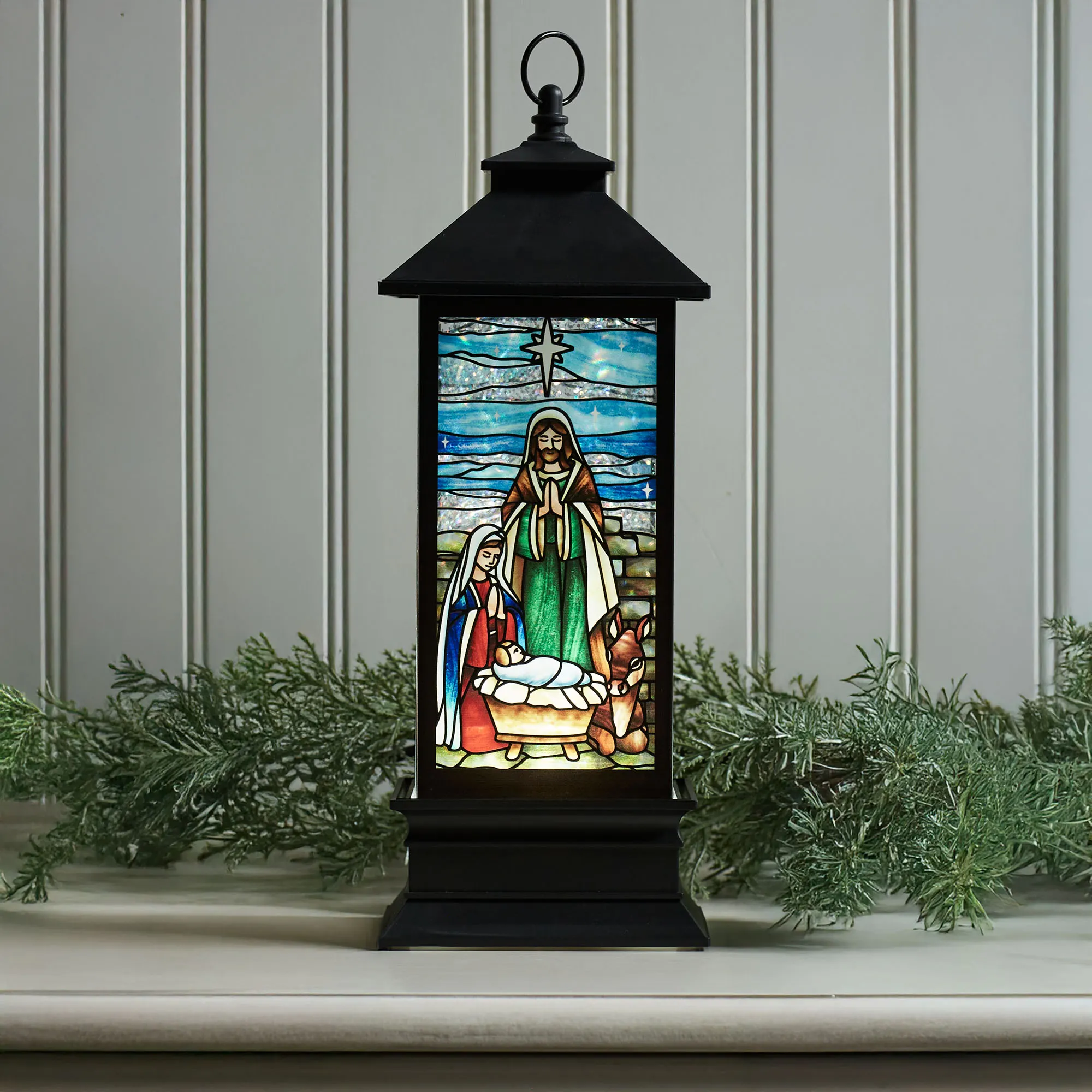 Shimmer Faux Stained Glass LED Lighted Christmas Holiday Lantern Glitter Globe