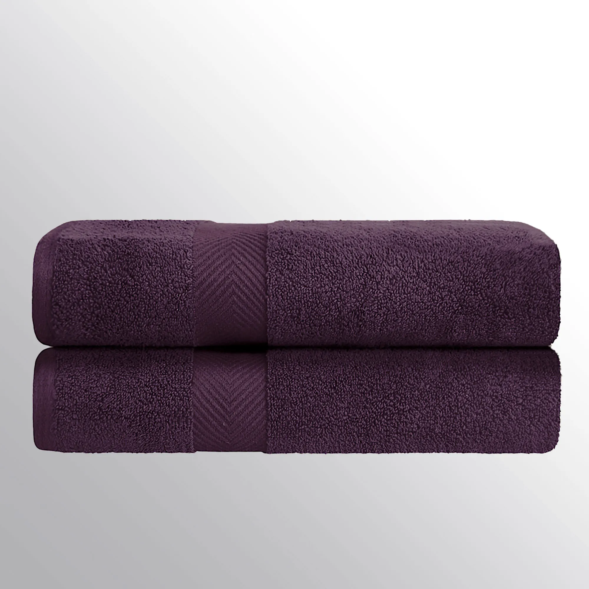 Enjoy the softness of the Caress 2-Piece Bath Towel Set. Made of zero-twist cotton, these solid color towels have longer fibers and use a special weaving technique that makes them durable enough for the rigors of daily use. Ultra-absorbent, terry-looped towels have 575 GSM, a dobby hem, a chevron accent band, and a care label loop that can hang on a hook. The Bath Towel Set includes 2 bath towels, 30"x54" each. The Bath Sheet Set includes 2 bath sheets, 34"x68" each. Specify Rust, Black, Coral, Dark Gray, Espresso, Grape, Ivory, Midnight Blue, Teal, or White. Machine washable. Imported.